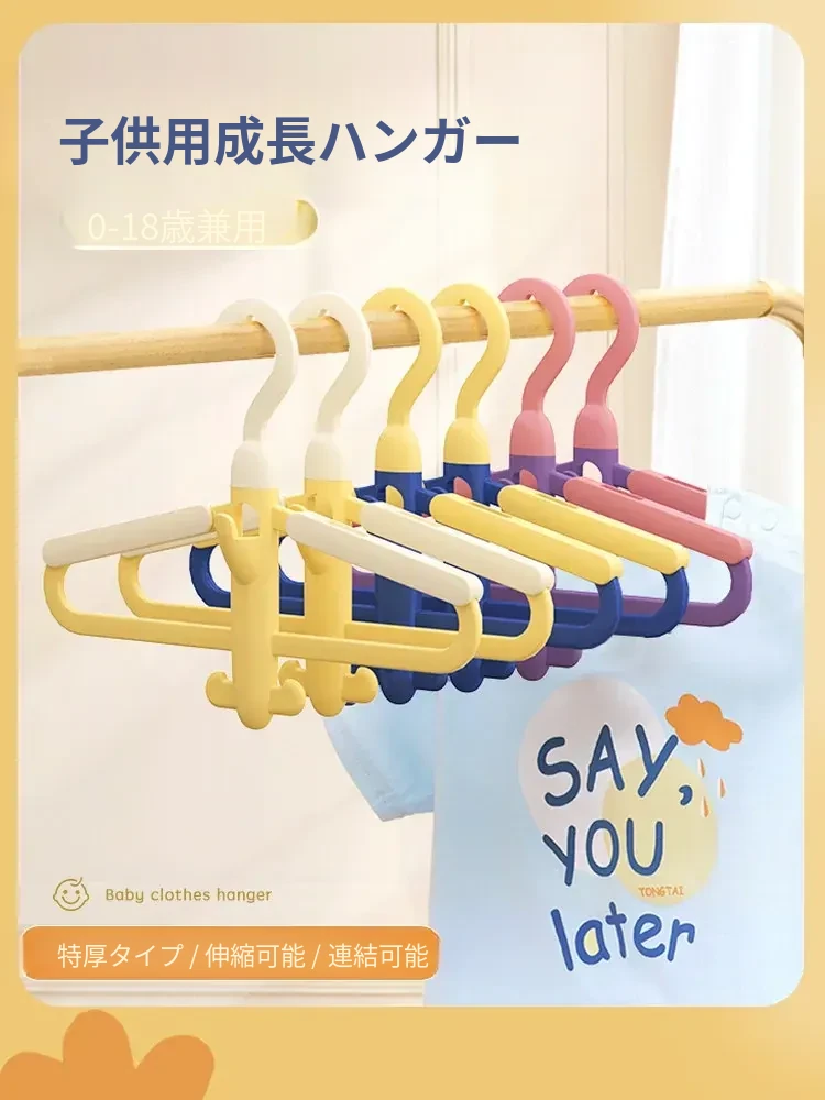 多機能キッズハンガー - 新生児から使える滑り止め付き衣類ラック!お子様の衣服をしっかりサポートし、整理整頓も簡単。家庭での使用に最適、可愛いデザインでお部屋を華やかに!