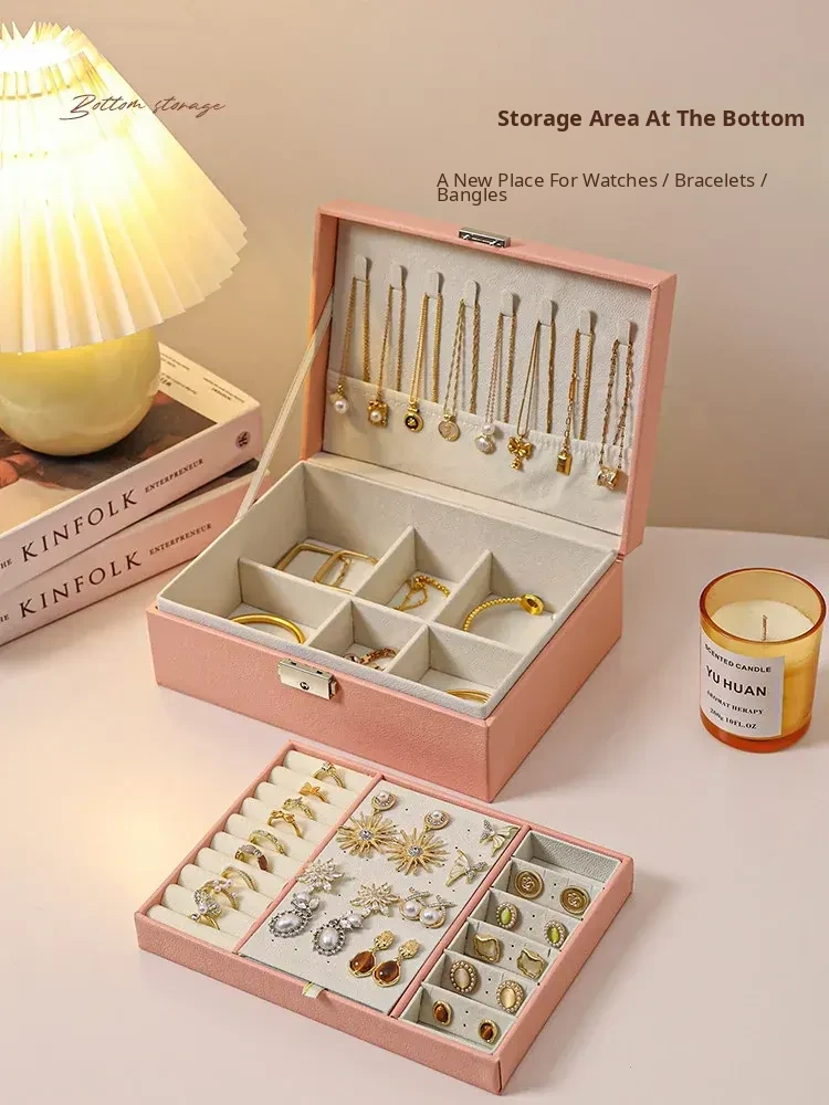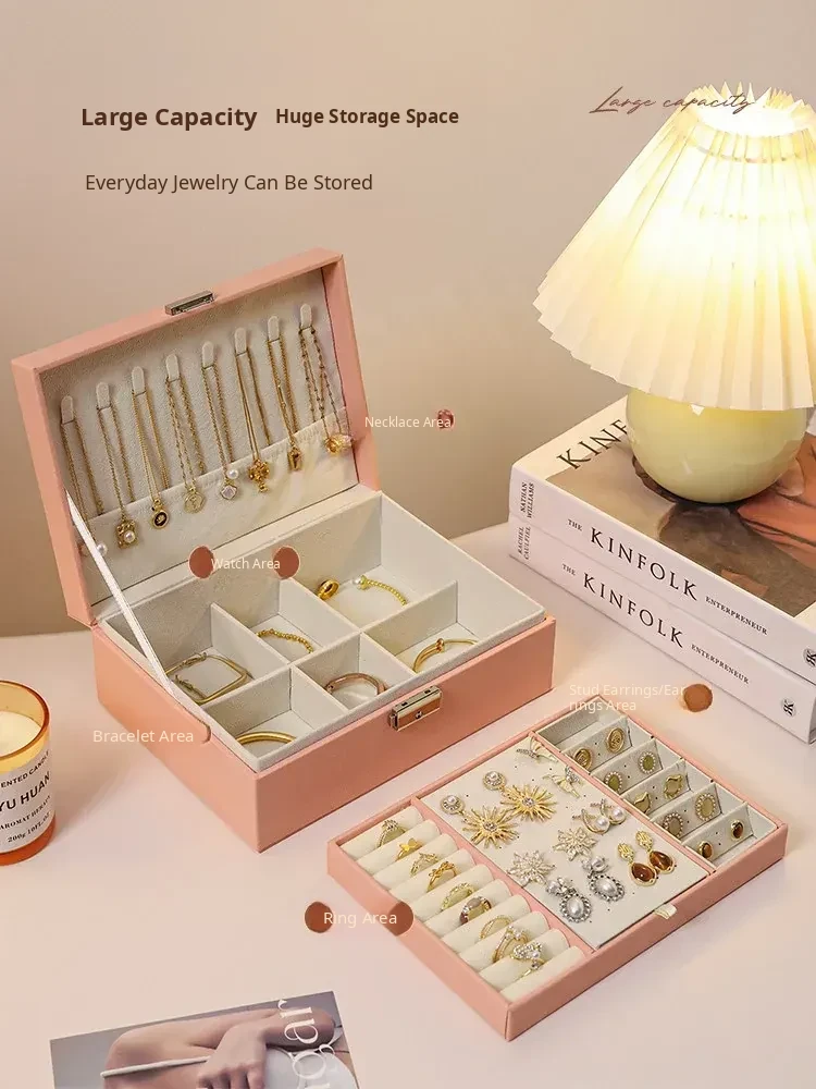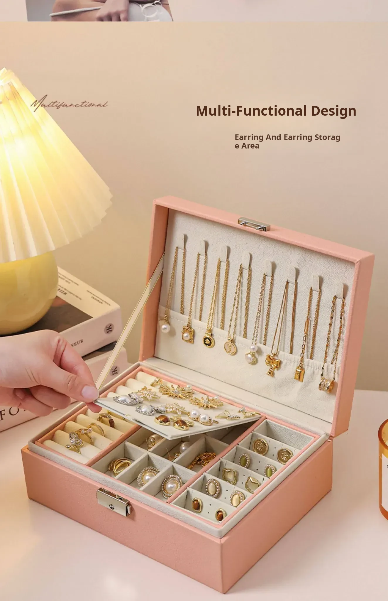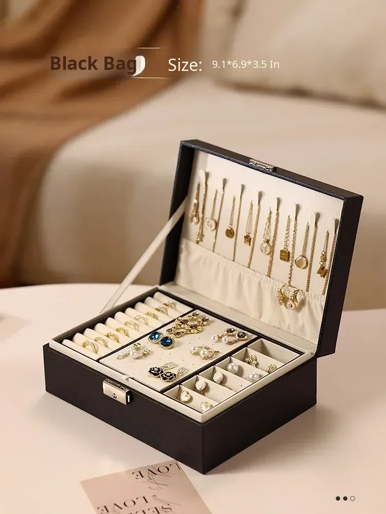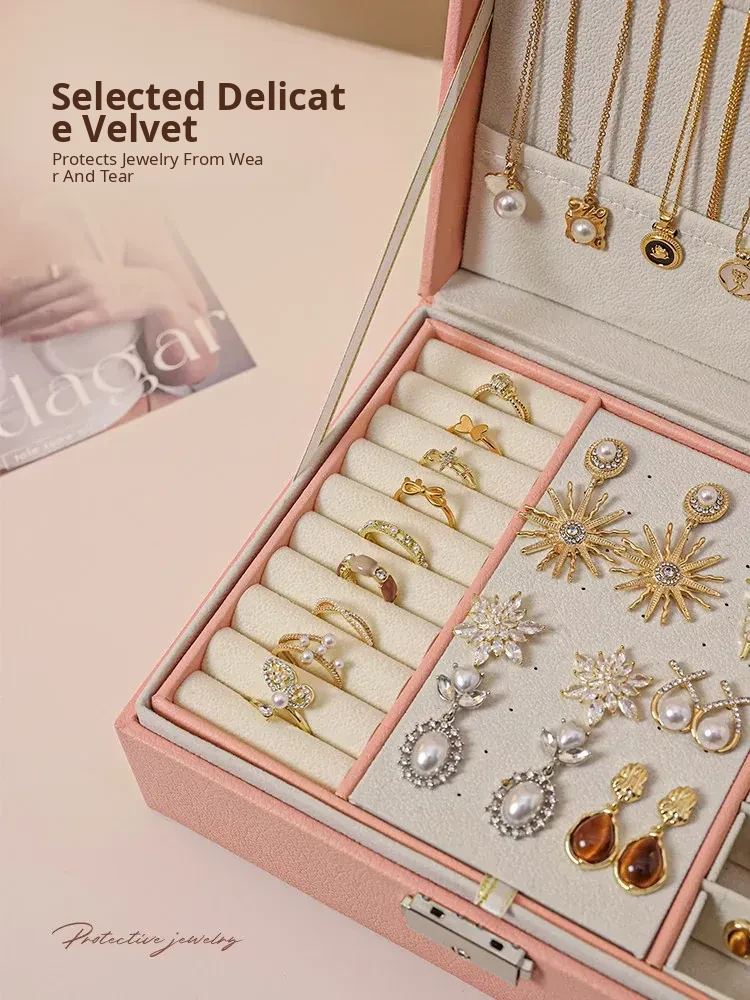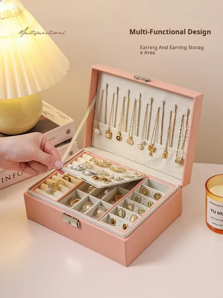 2026 New Luxury Jewelry Organizer Box - Large Capacity for Earrings, Studs, Necklaces, and Other Accessories, Elegant Golden Design
