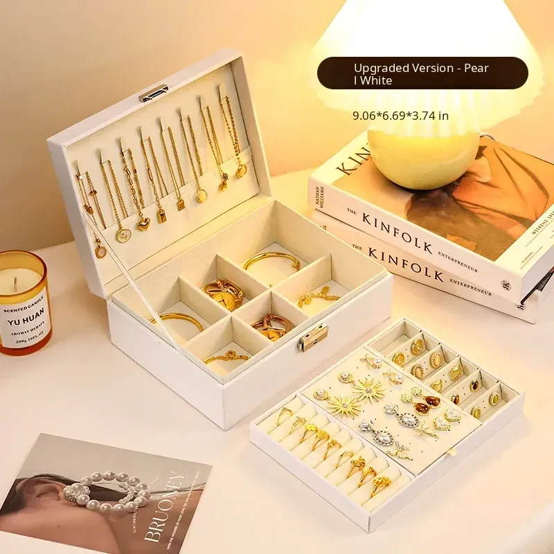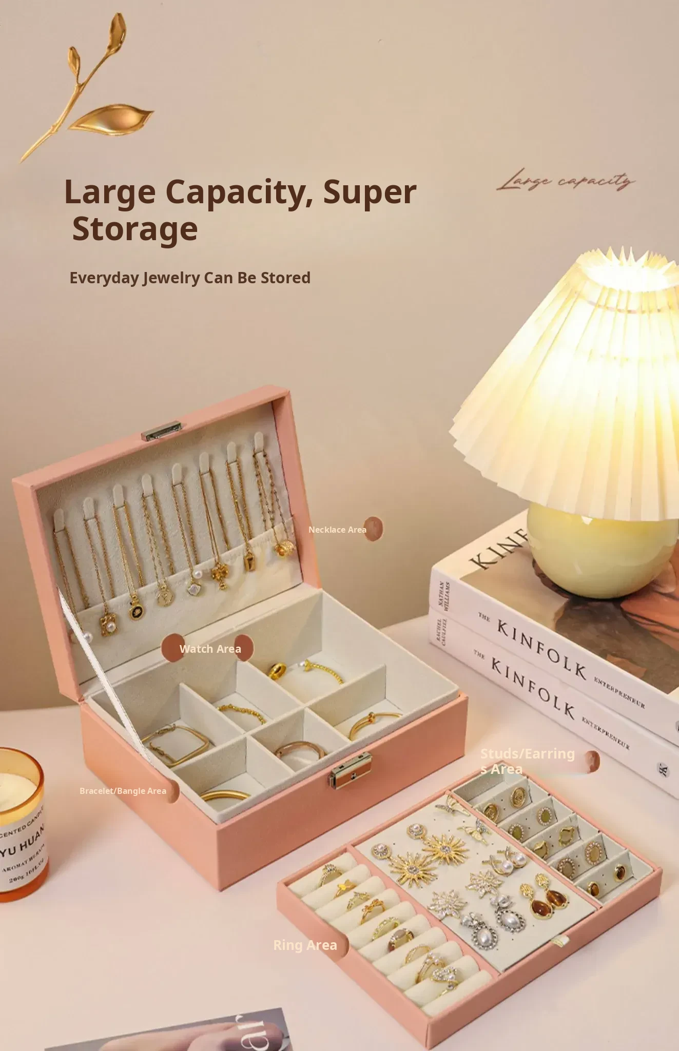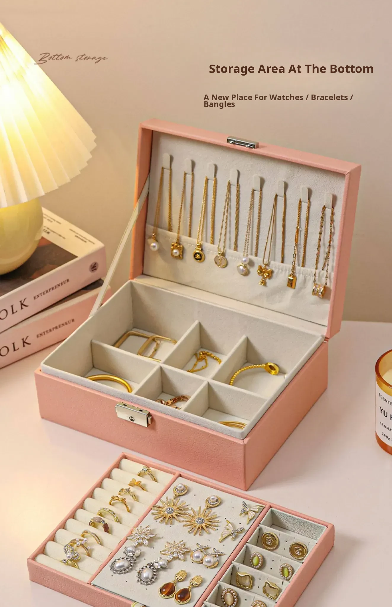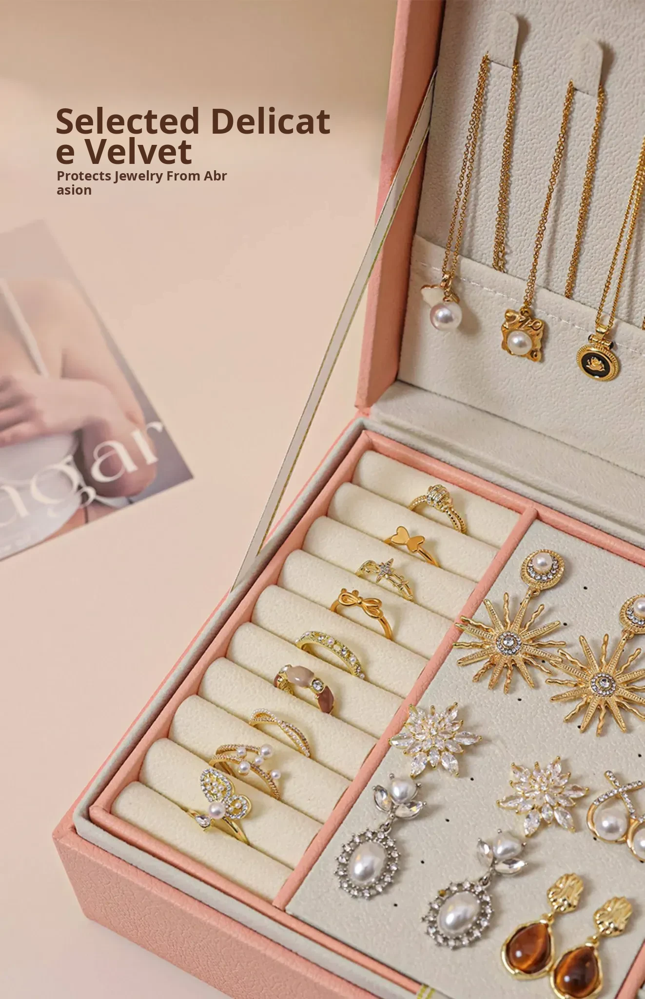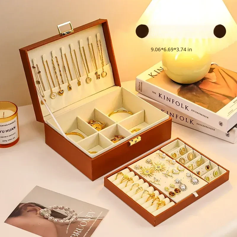 2026 New Luxury Jewelry Organizer Box - Large Capacity for Earrings, Studs, Necklaces, and Other Accessories, Elegant Golden Design