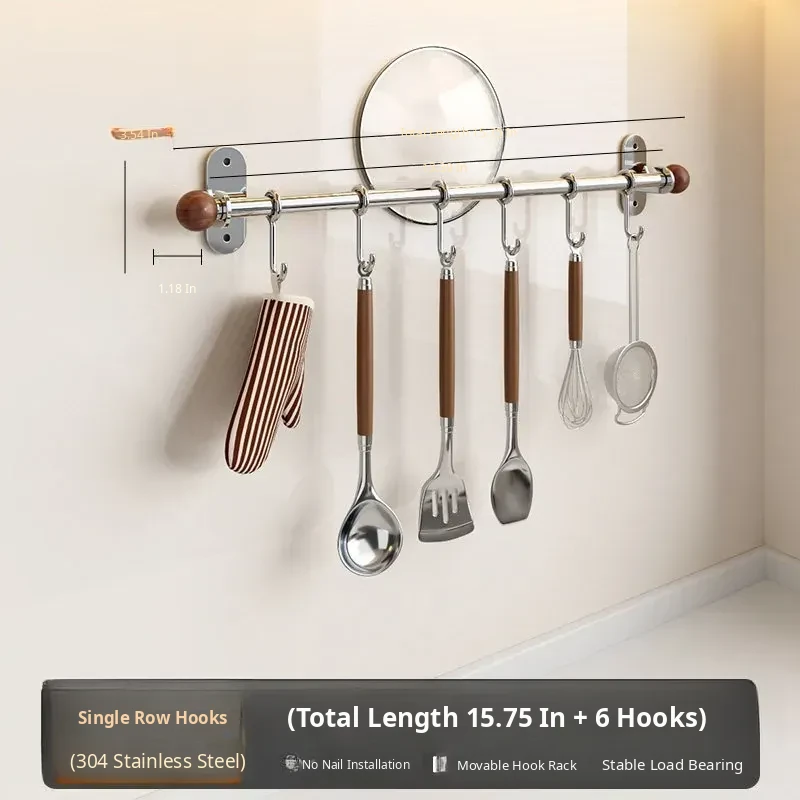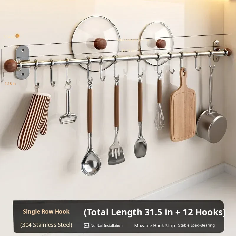304 Stainless Steel Kitchen Hanging Hooks - No Drill Wall-Mounted Pot, Spatula, Chopsticks, and Spoon Storage Rack - Heavy-Duty Load Capacity for Ultimate Convenience!