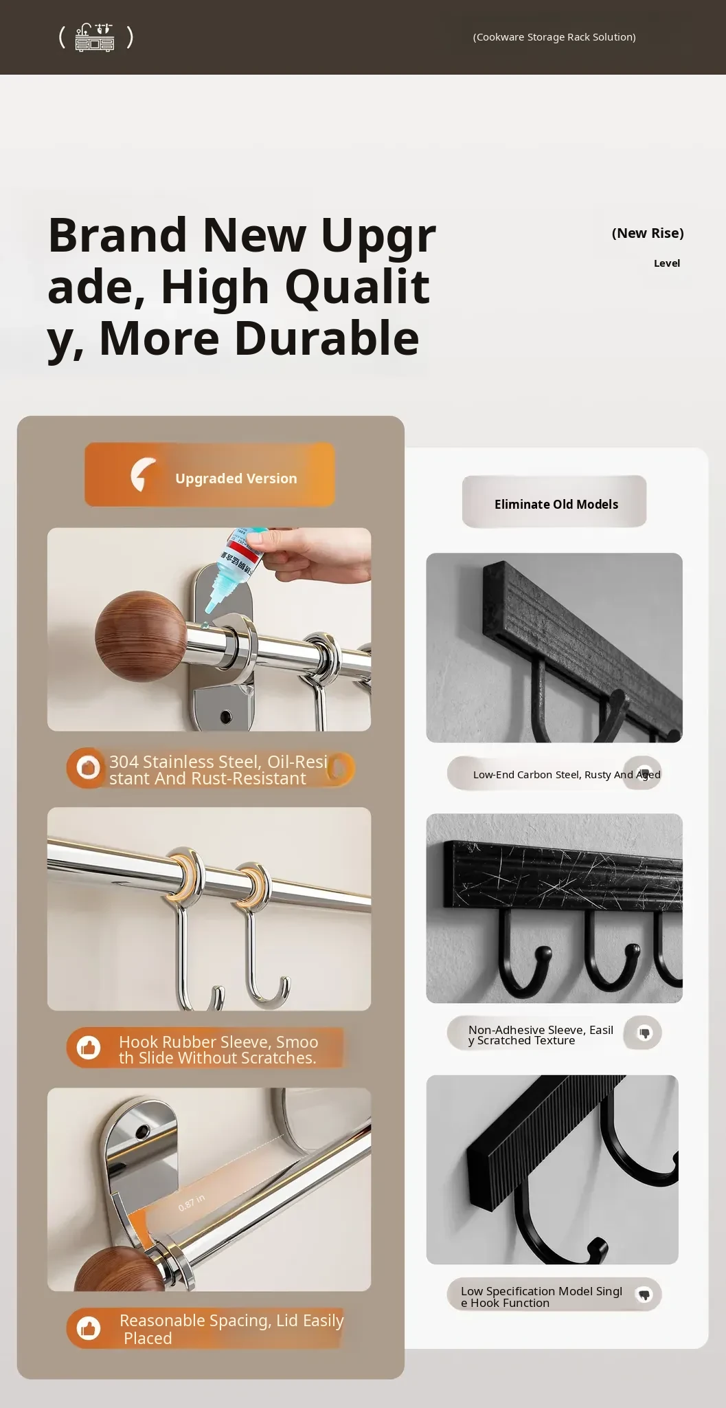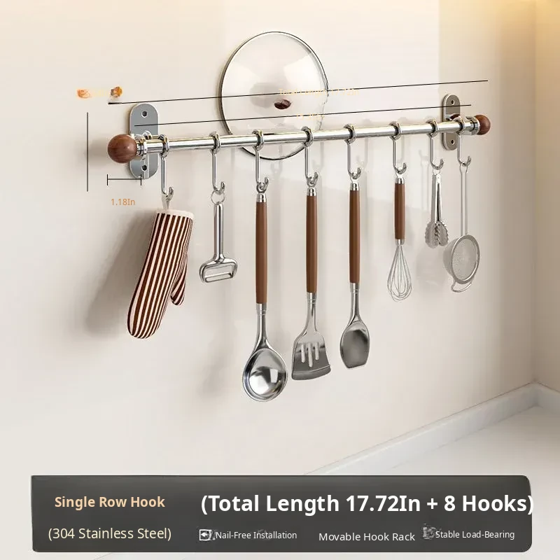 17.72in Hanging Rod + 8 Hooks [304 Stainless Steel]