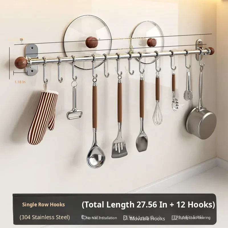 27.56in Hanging Rod + 12 Hooks [304 Stainless Steel]