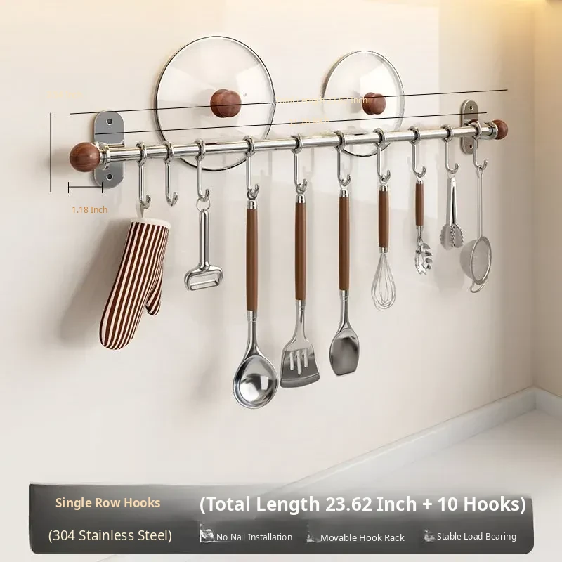 23.62in Hanging Rod + 10 Hooks [304 Stainless Steel]