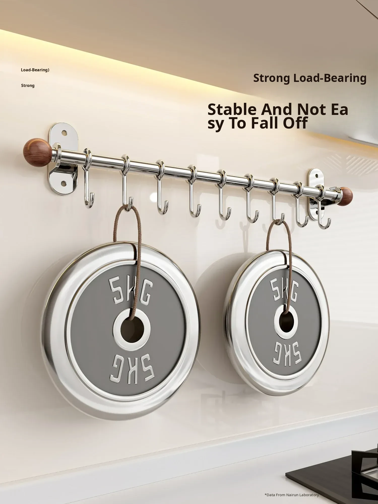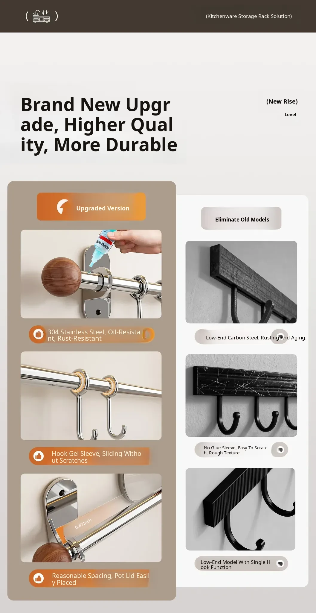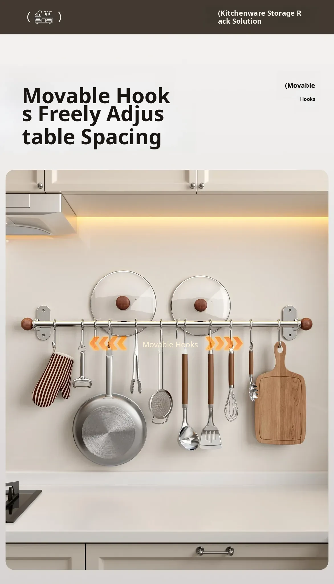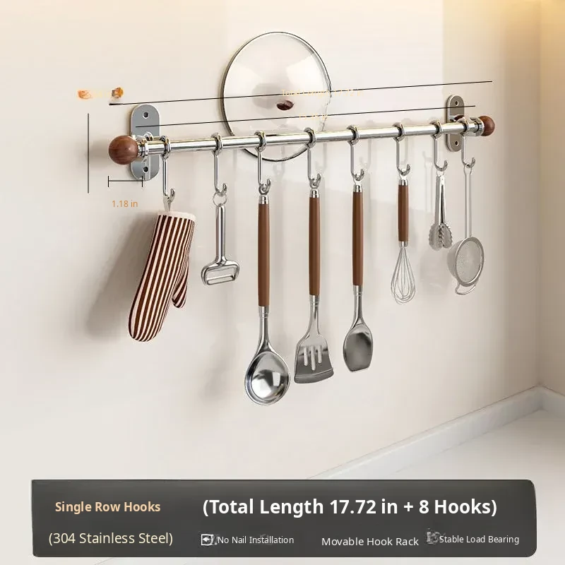 17.72in Hanging Rod + 8 Hooks [304 Stainless Steel]