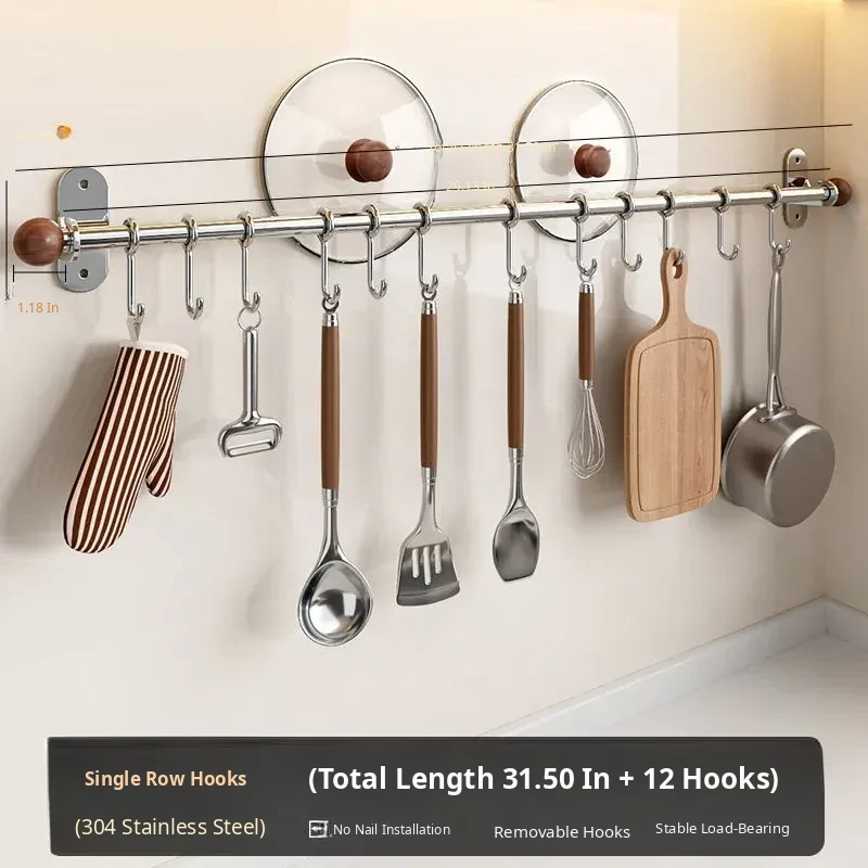 31.50in Hanging Rod + 12 Hooks [304 Stainless Steel]