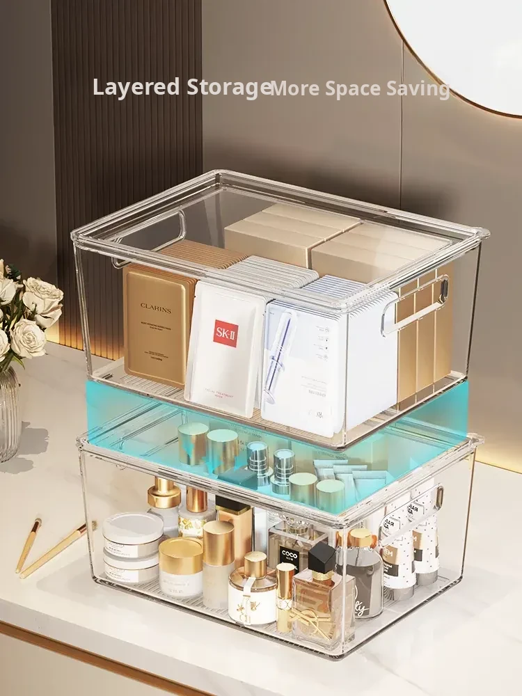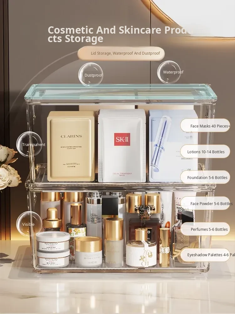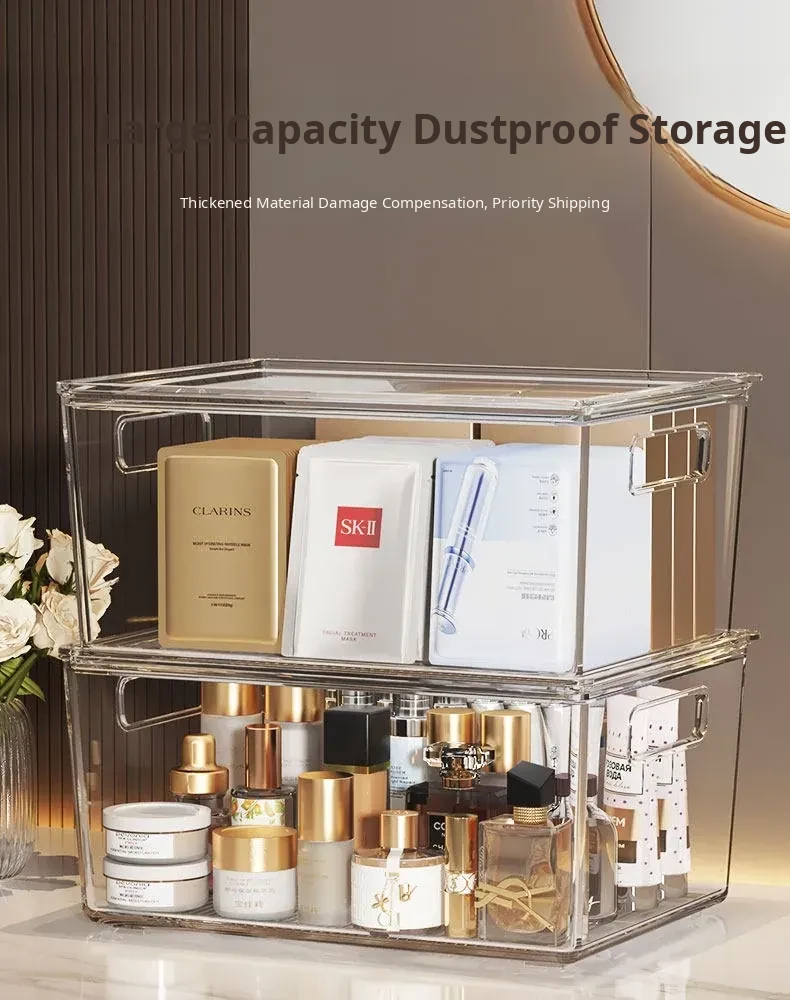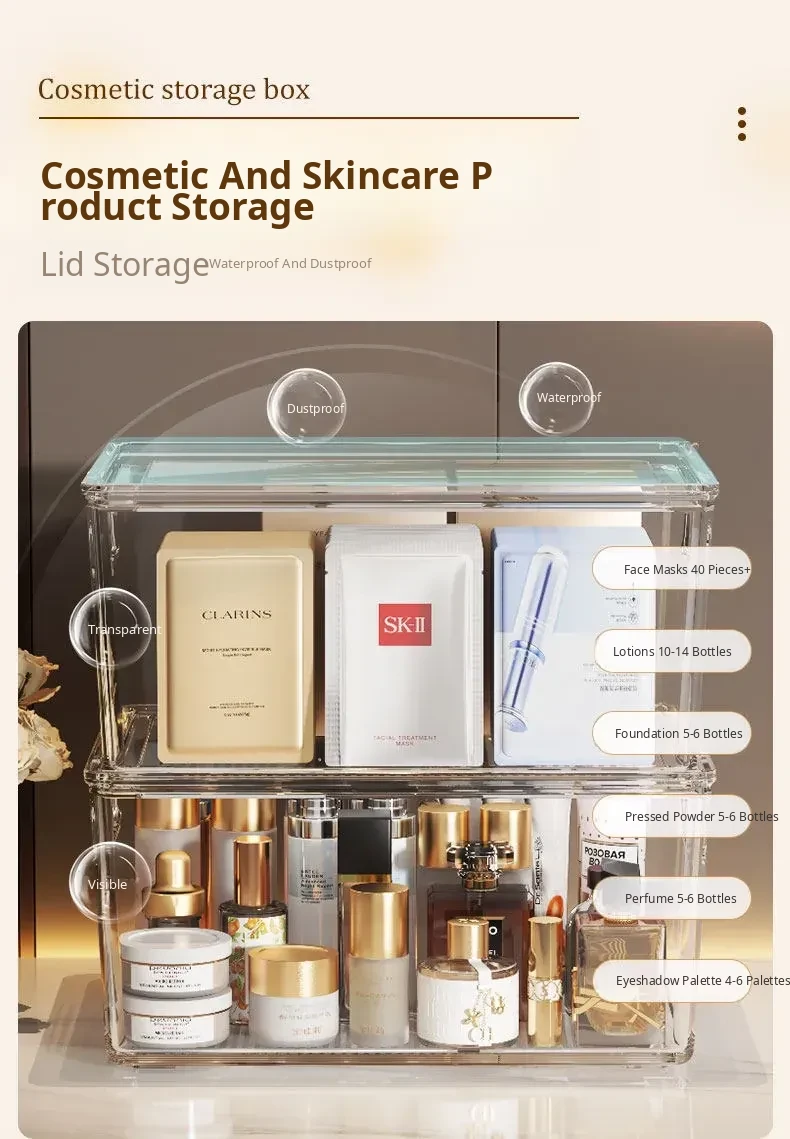 Acrylic Makeup Organizer Box - Transparent Dustproof Storage for Cosmetics, Face Masks, Lipsticks & Skincare Products - Stylish Desktop Vanity Display