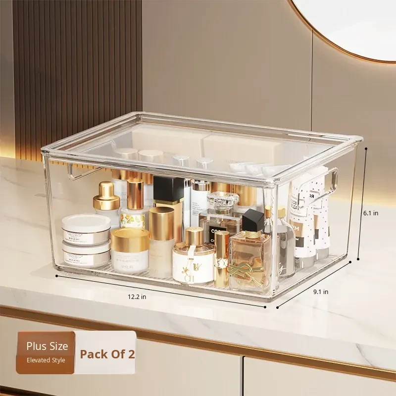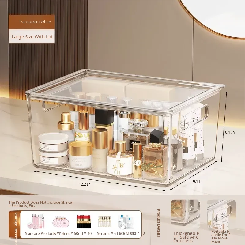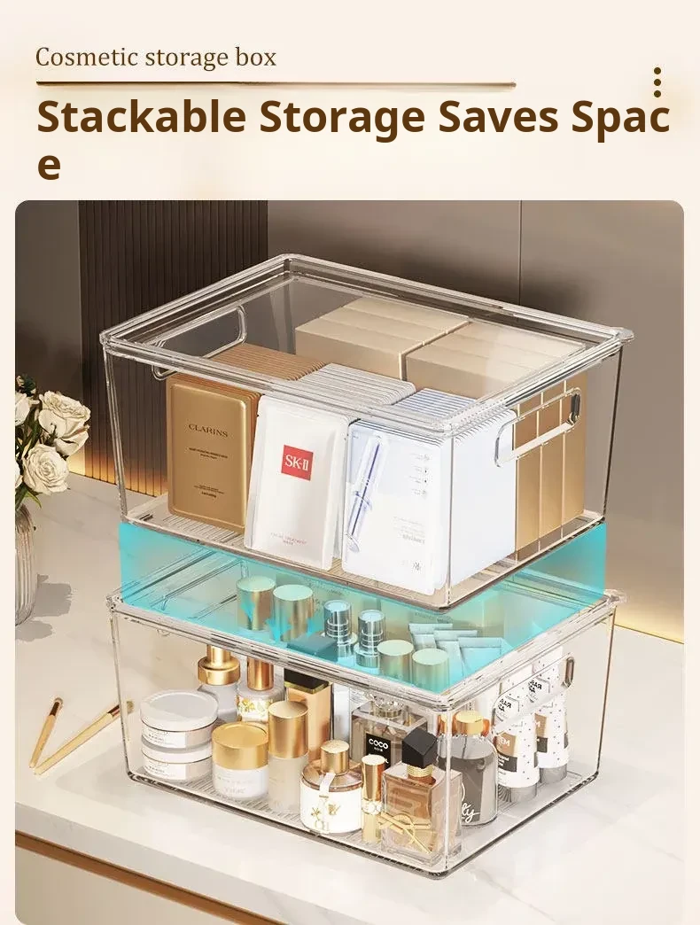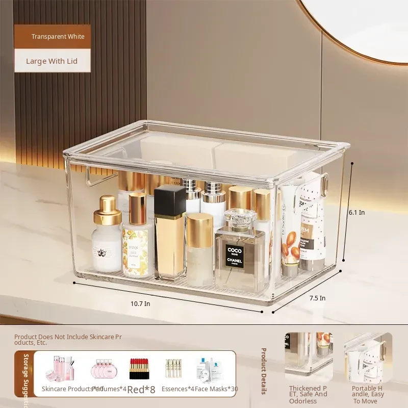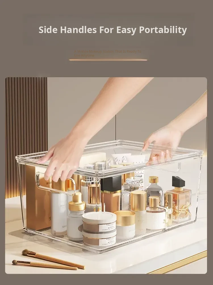 Acrylic Makeup Organizer Box - Transparent Dustproof Storage for Cosmetics, Face Masks, Lipsticks & Skincare Products - Stylish Desktop Vanity Display