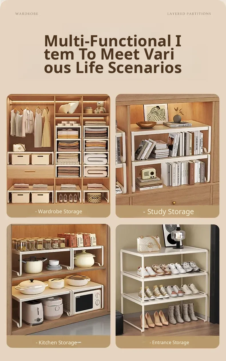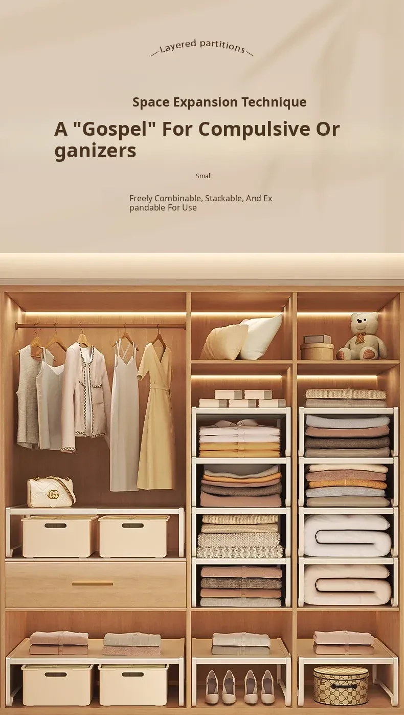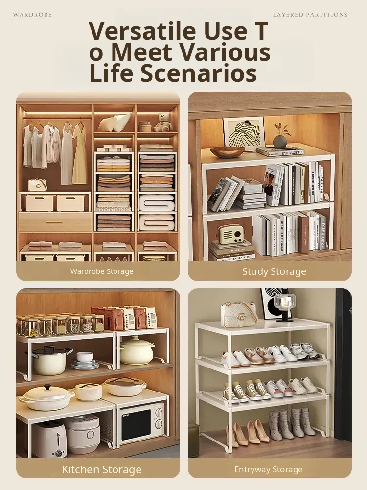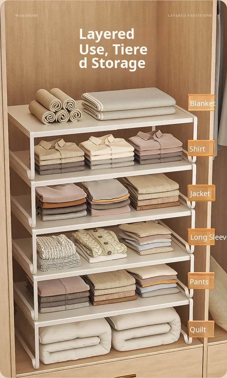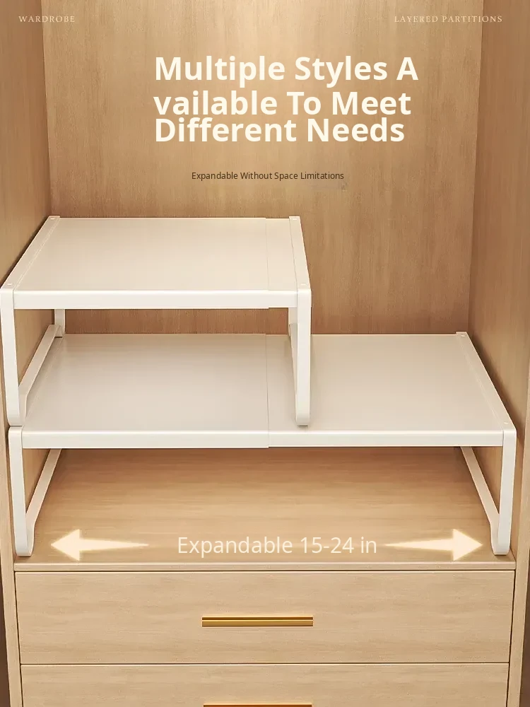 Adjustable Closet Divider Storage Rack - Versatile and Space-Saving Organizer for Cabinets and Shelves, Perfect for Customized Layered Storage Solutions