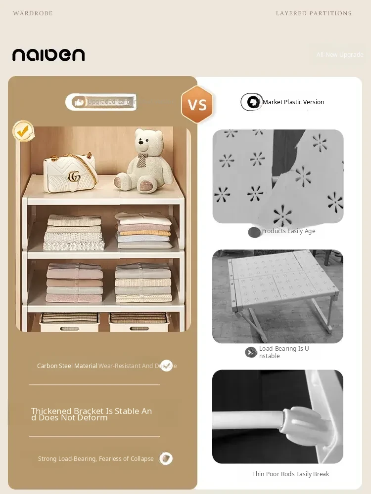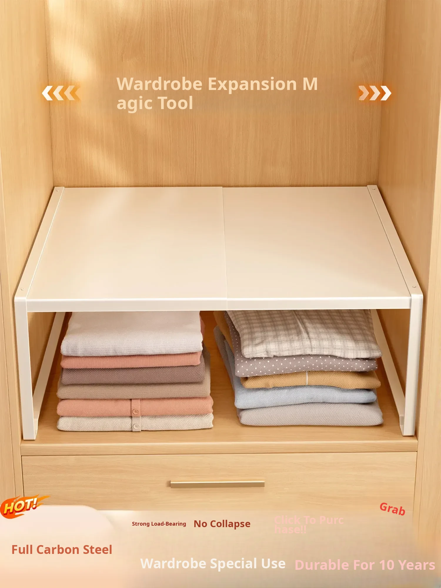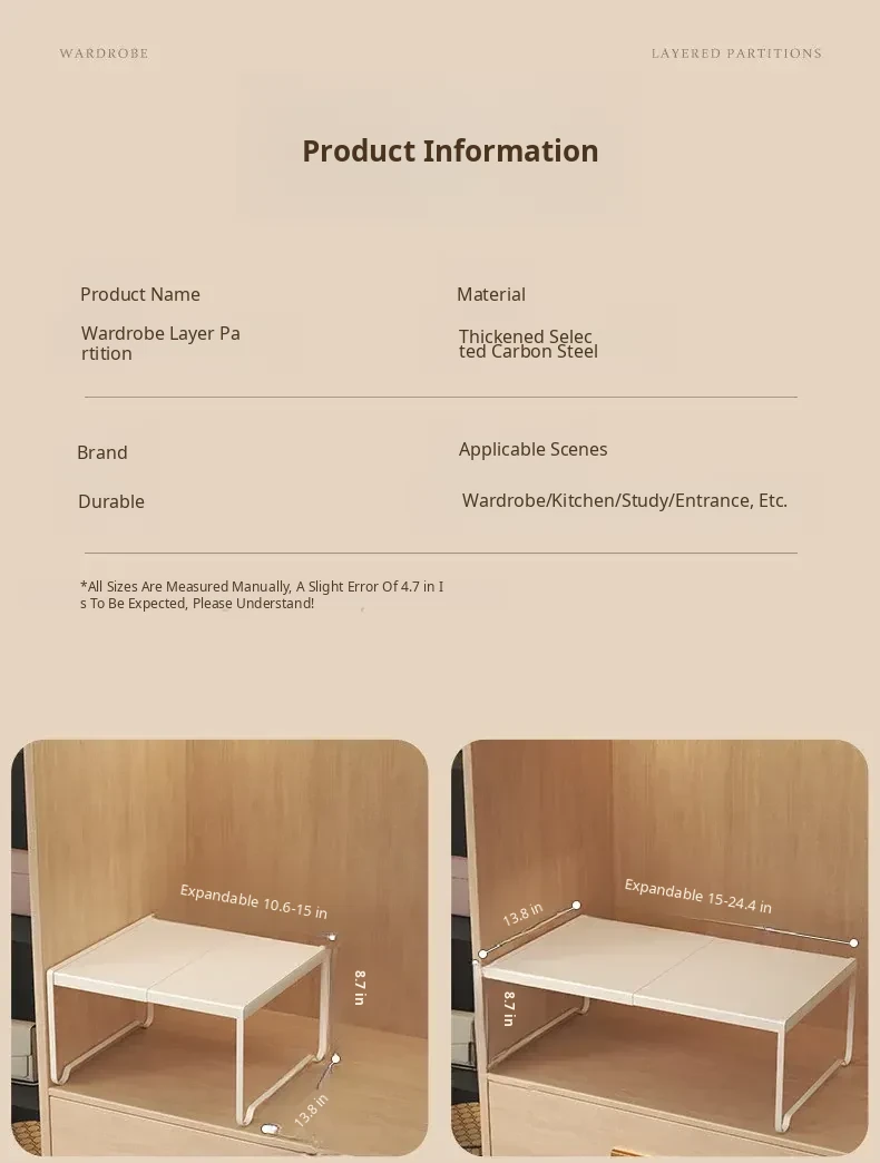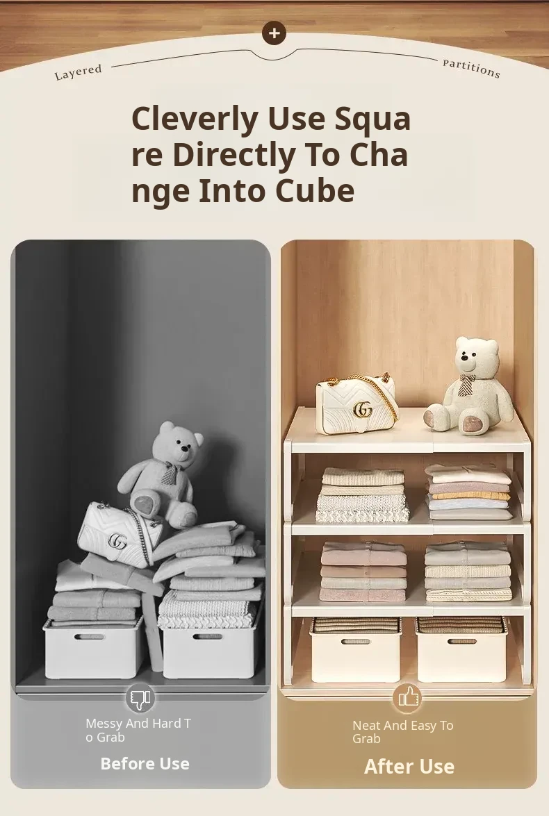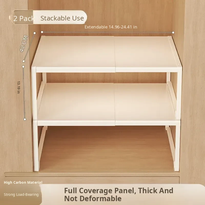 Adjustable Closet Divider Storage Rack - Versatile and Space-Saving Organizer for Cabinets and Shelves, Perfect for Customized Layered Storage Solutions