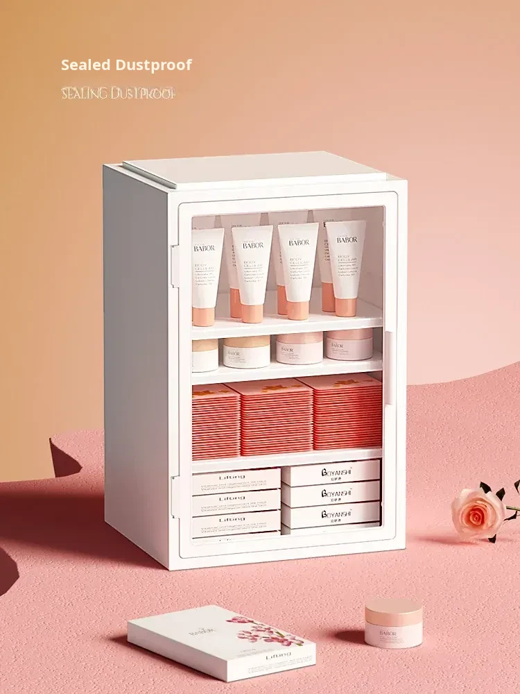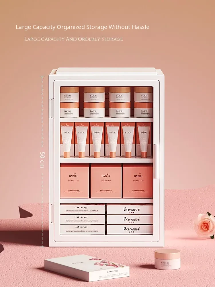 Desktop Organizer Box for Masks and Cosmetics - Skincare Storage Cabinet, Makeup Organizer, and Essential Space-Saving Solution for Your Vanity