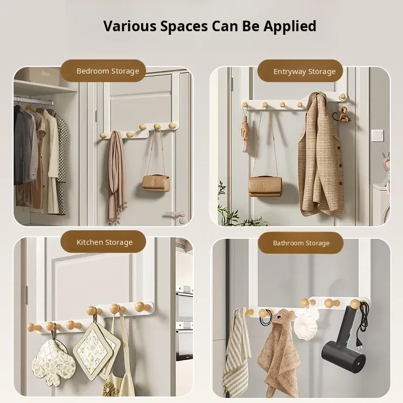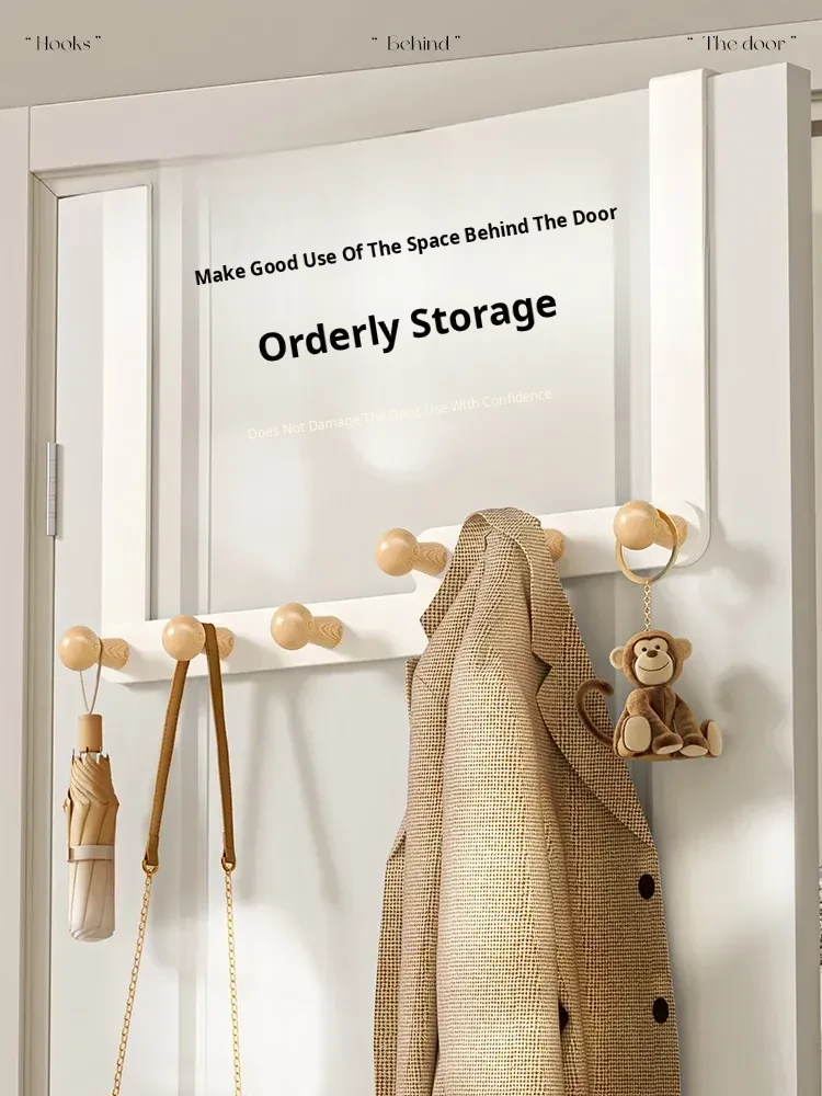 Door-Mounted Clothes Rack and Hooks - No Drilling Required! Space-Saving Wall-Mounted Storage Solution for Entryways. Stylish and Functional Bag Hanger for Efficient Organization.
