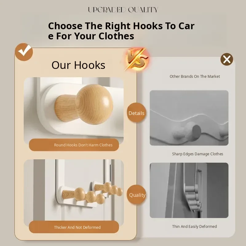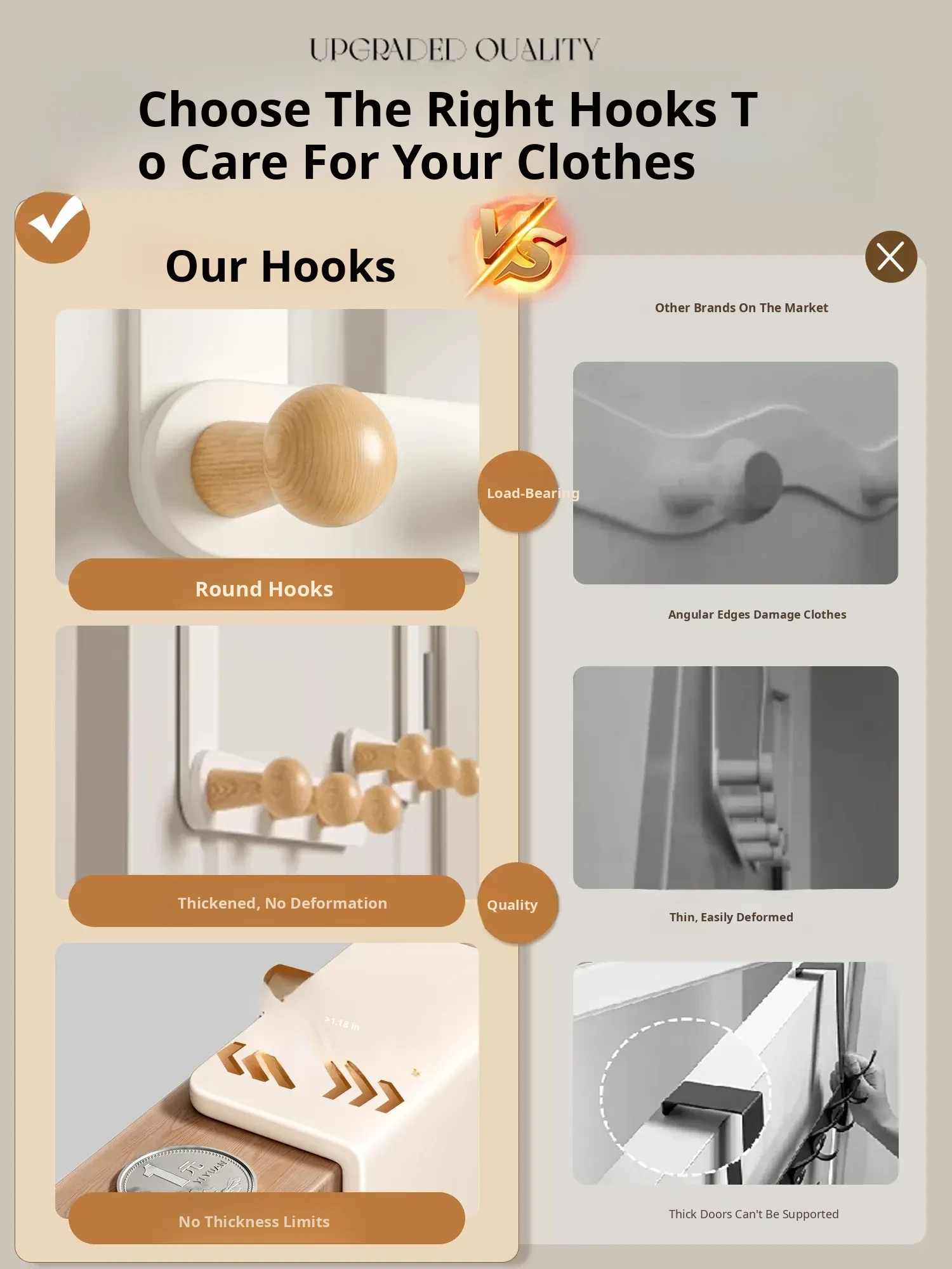 Ivory White-6 Hooks-Standard Style [1.38in-1.81in Door Thickness]