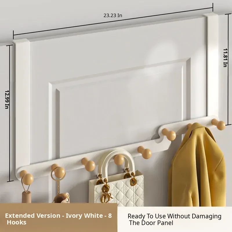 Ivory White - 8 Hooks - Extended Length [Door Thickness Not Limited]