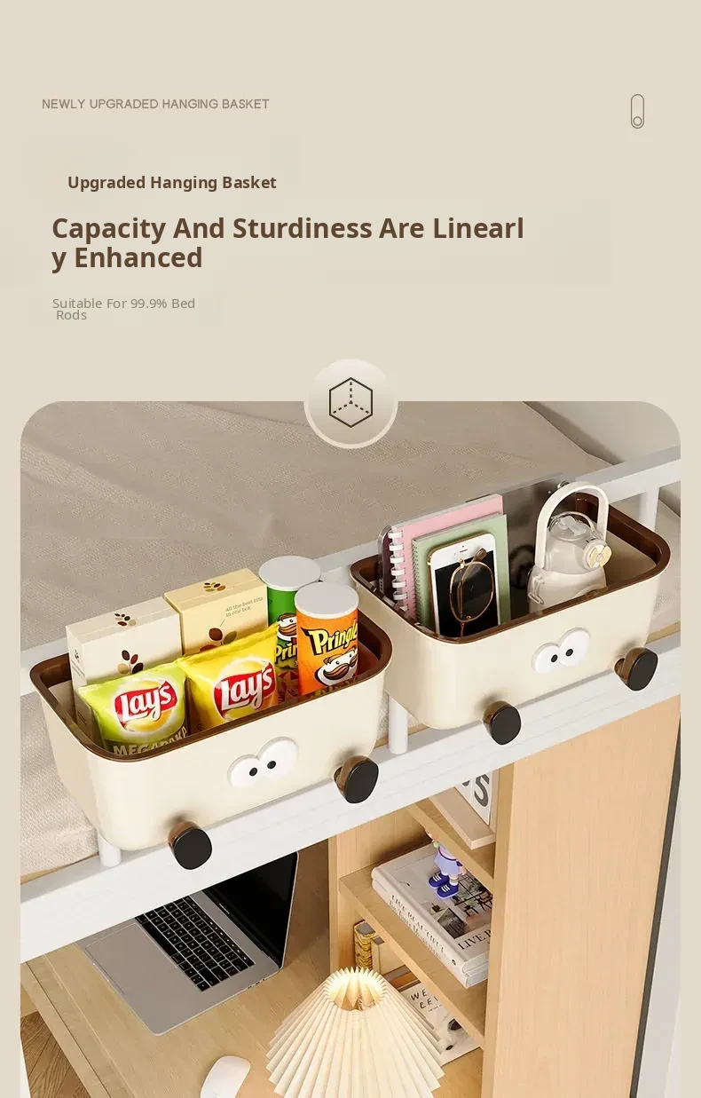 Dorm Bedside Hanging Basket - No Drill Bedside Storage Rack for College Students, Perfect Snack Organizer and Storage Solution for Upper Bunk Beds!