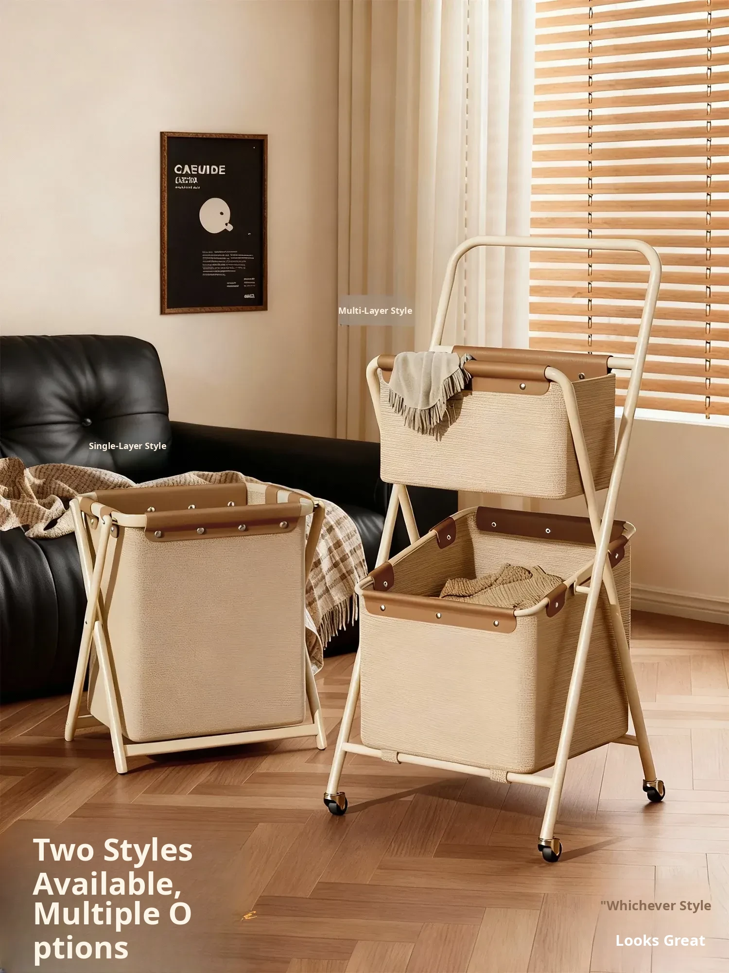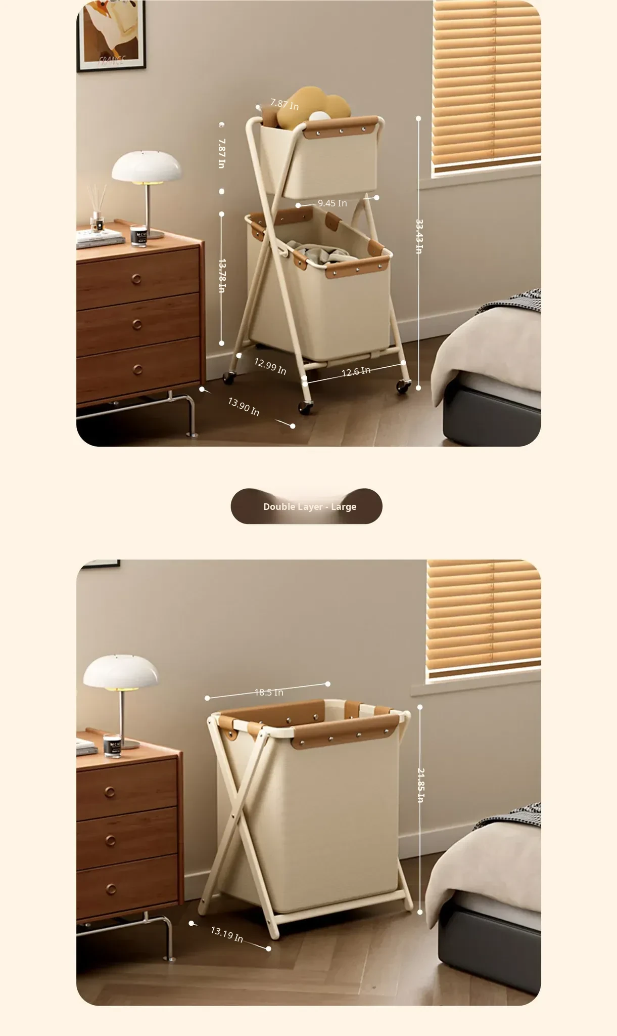 Durable and Stylish Double-Layer Laundry Basket - Foldable Storage Solution for Home, Perfect for Organizing Dirty Clothes and Enhancing Your Space.