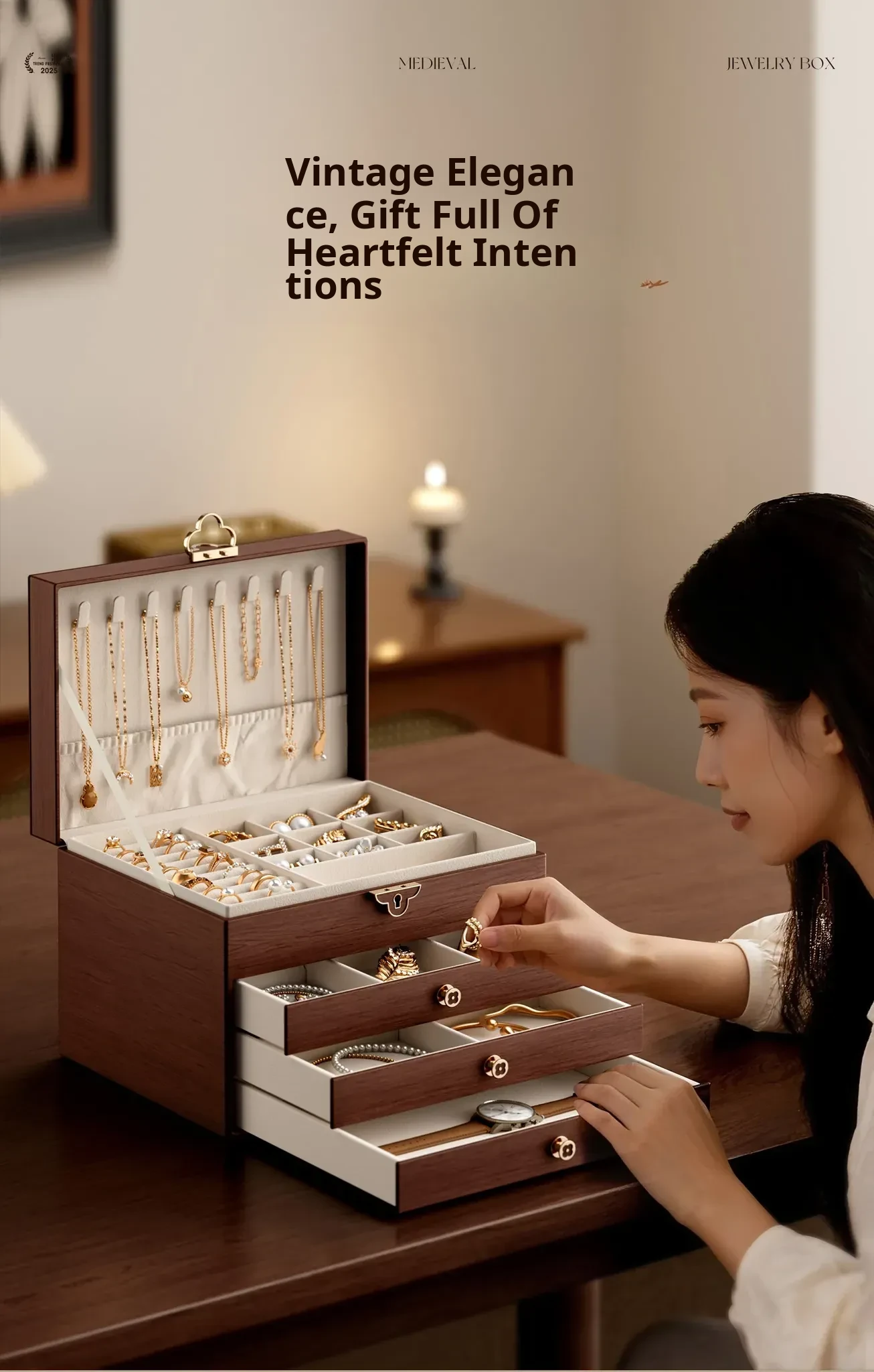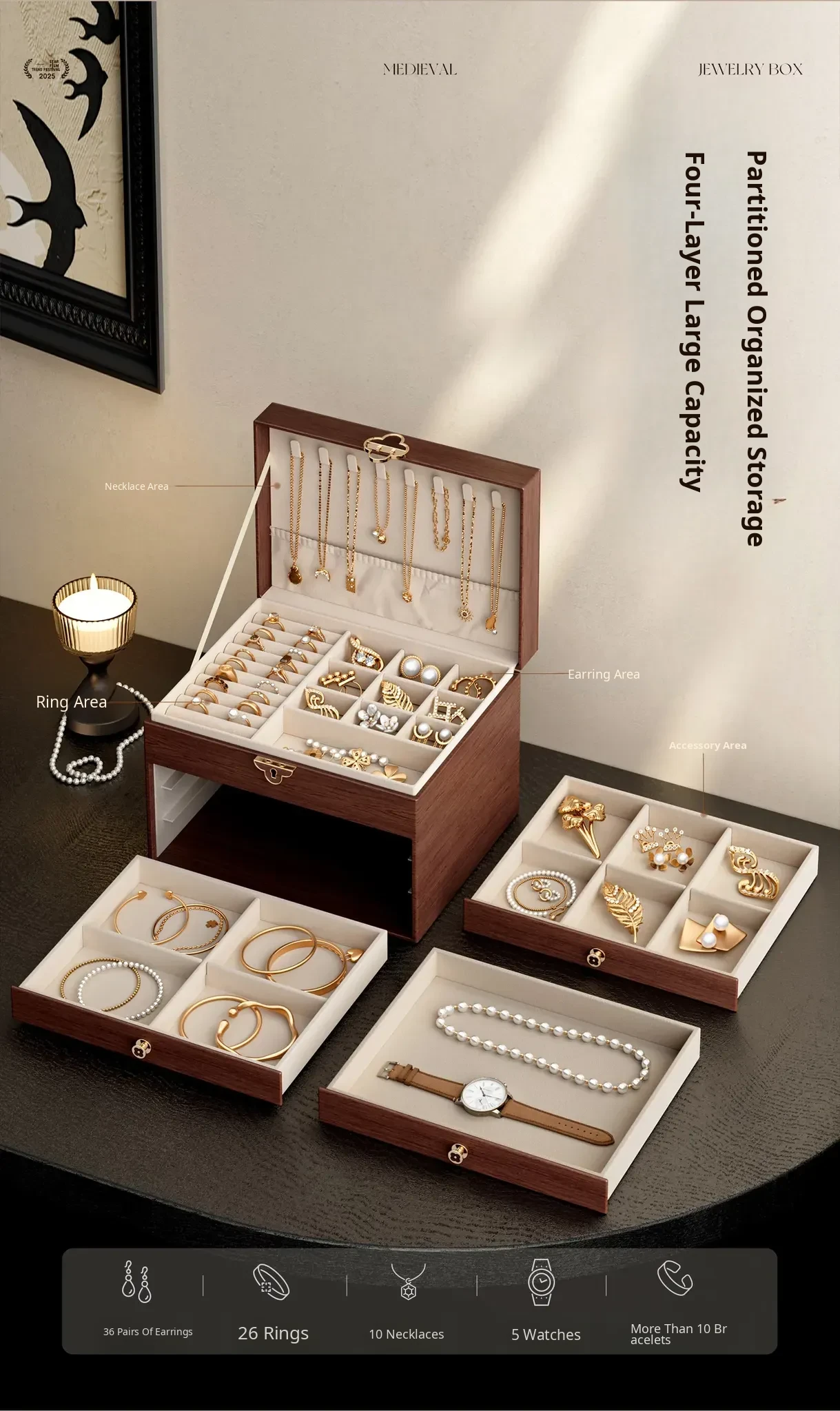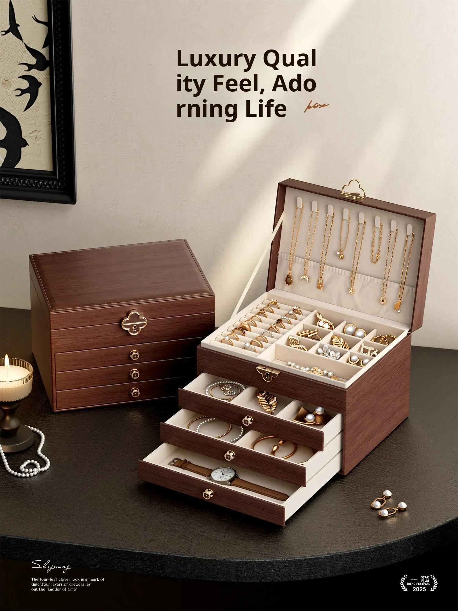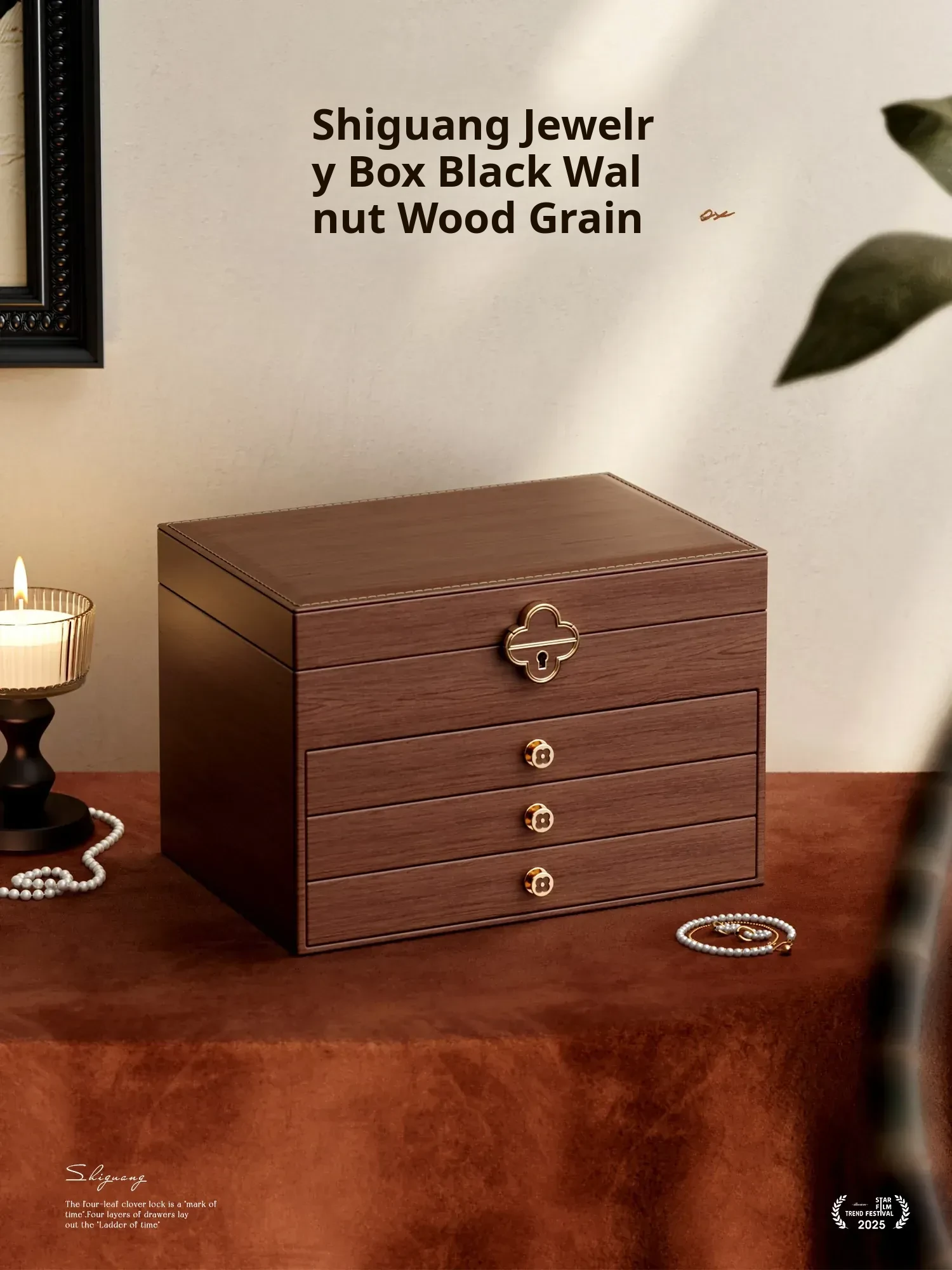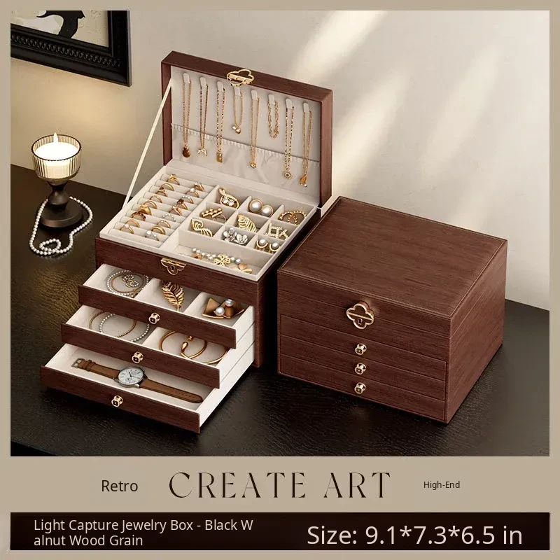 Elegant Black Walnut Wood Jewelry Box - High-Quality Storage for Necklaces, Earrings, and Accessories - Anti-Oxidation and Exquisite Design for Your Precious Pieces