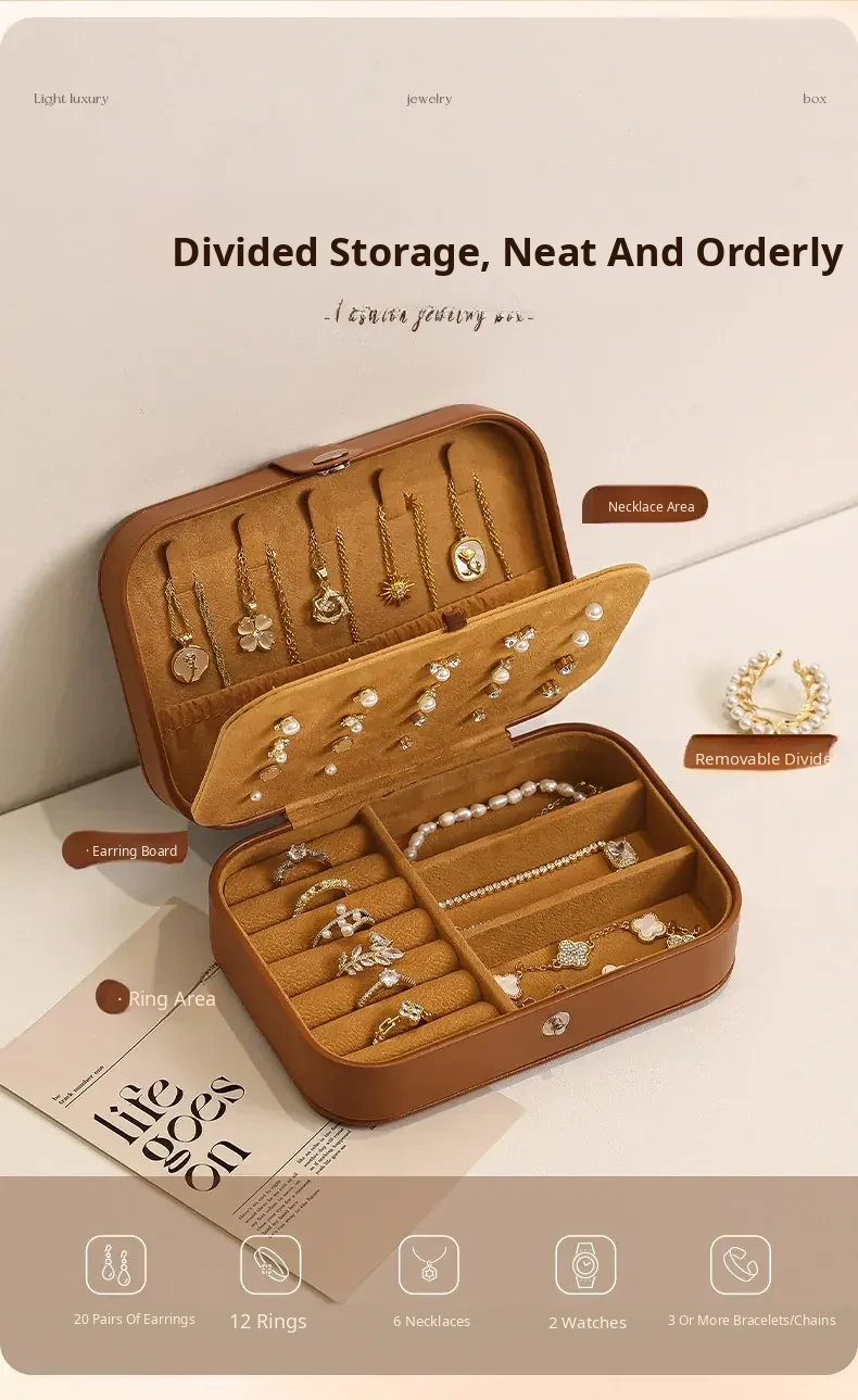 Elegant Portable Jewelry Organizer Box for Earrings, Necklaces, and Accessories - Compact & Stylish Storage for Gold and Precious Gems