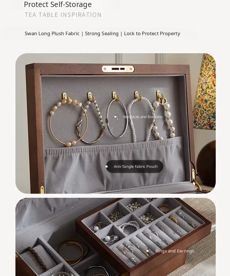 Elegant Wooden Jewelry Box - Multi-Layer Lockable Storage Organizer for Gold, Rings, Earrings & Accessories - Perfect Birthday & Wedding Gift
