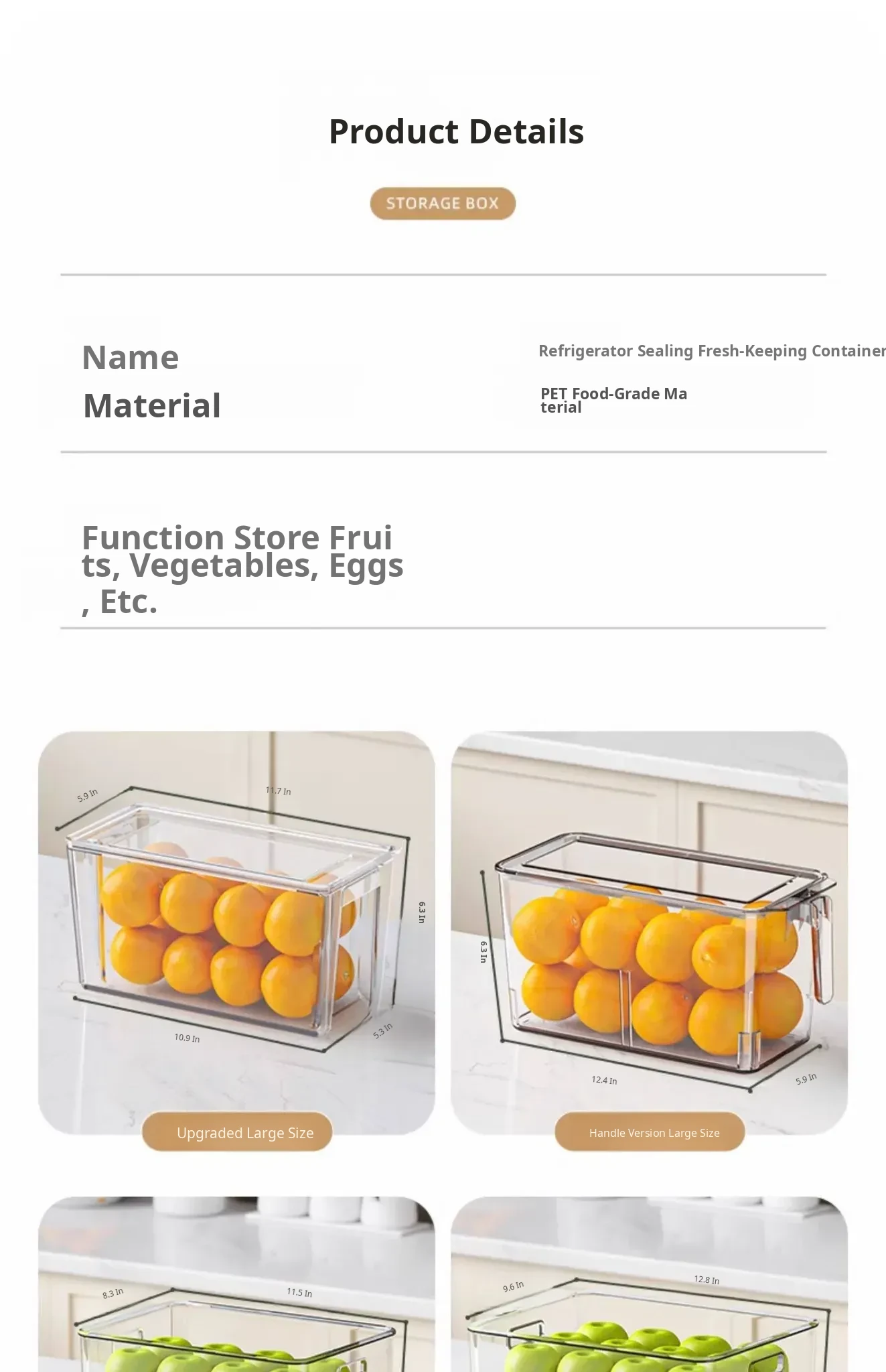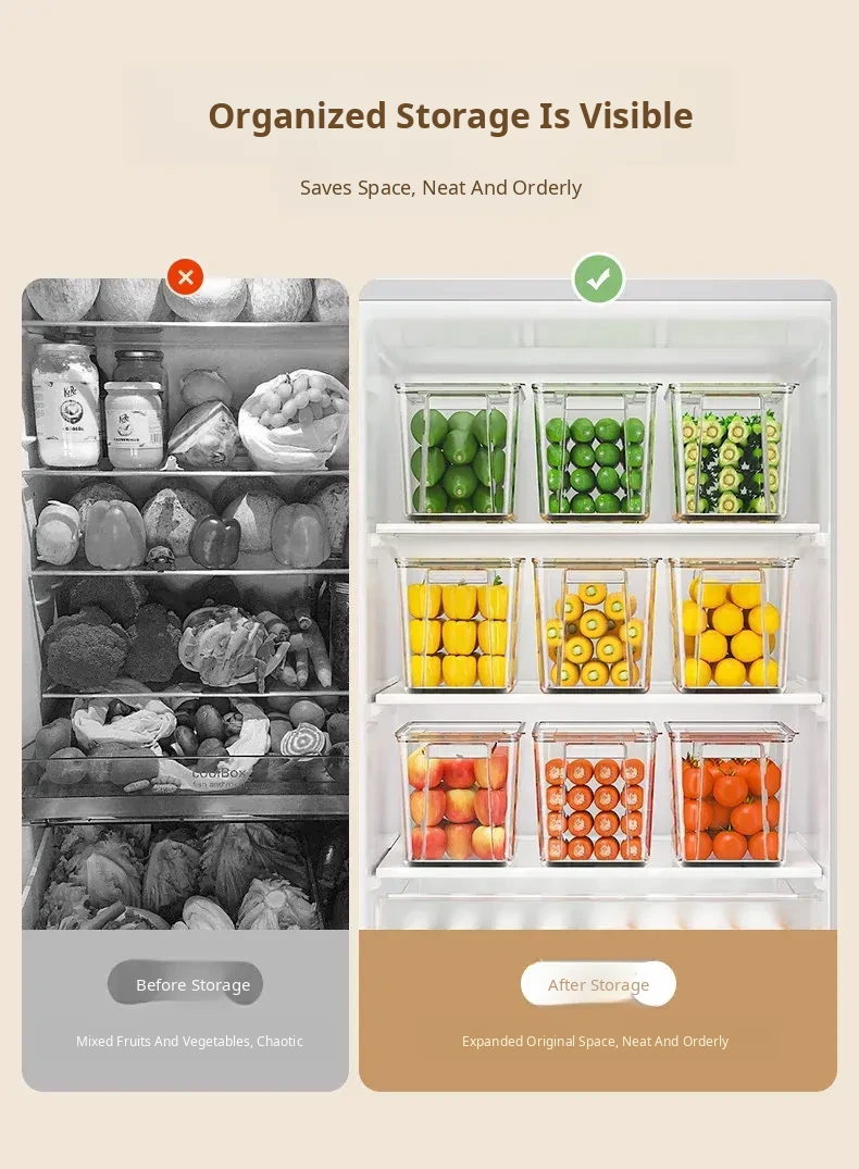 Food-Grade Refrigerator Storage Bins - Kitchen Organization Containers for Fresh Vegetables and Eggs, Ideal for Food Preservation and Refrigeration