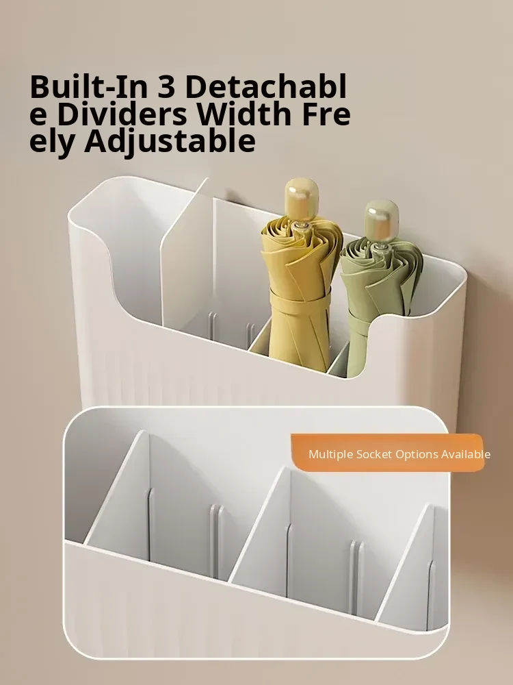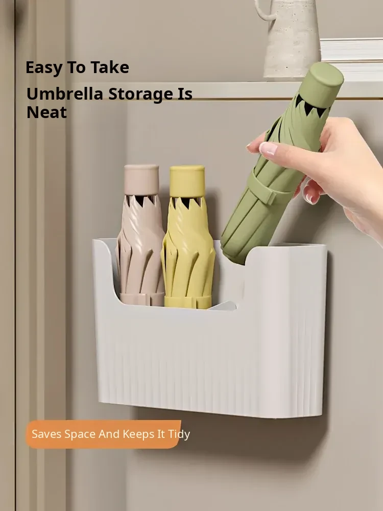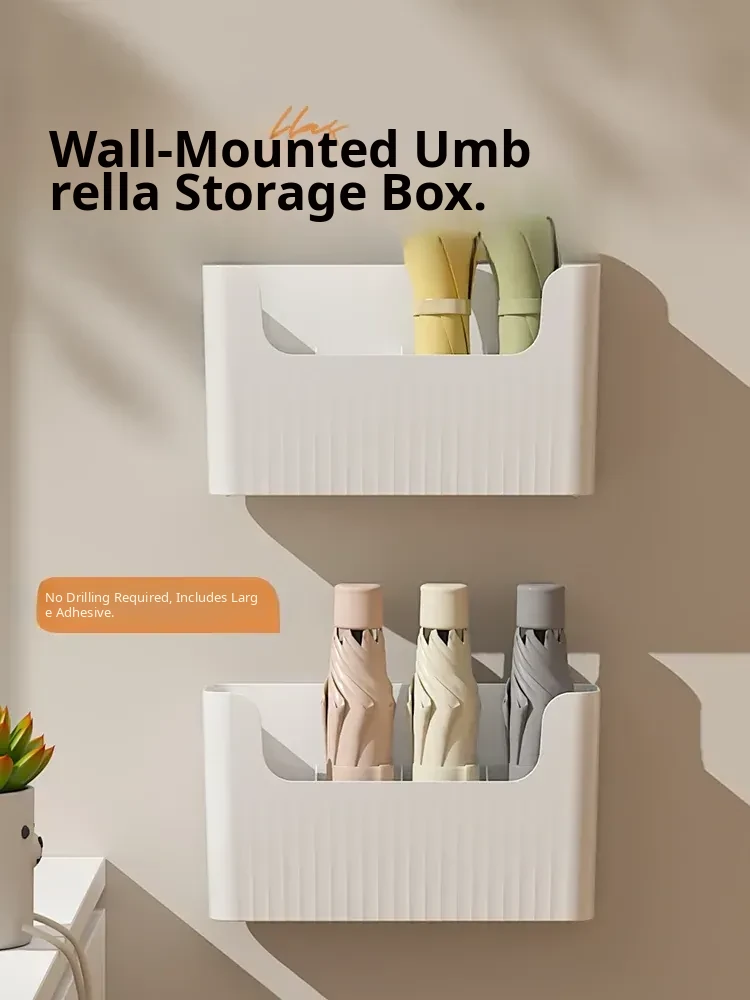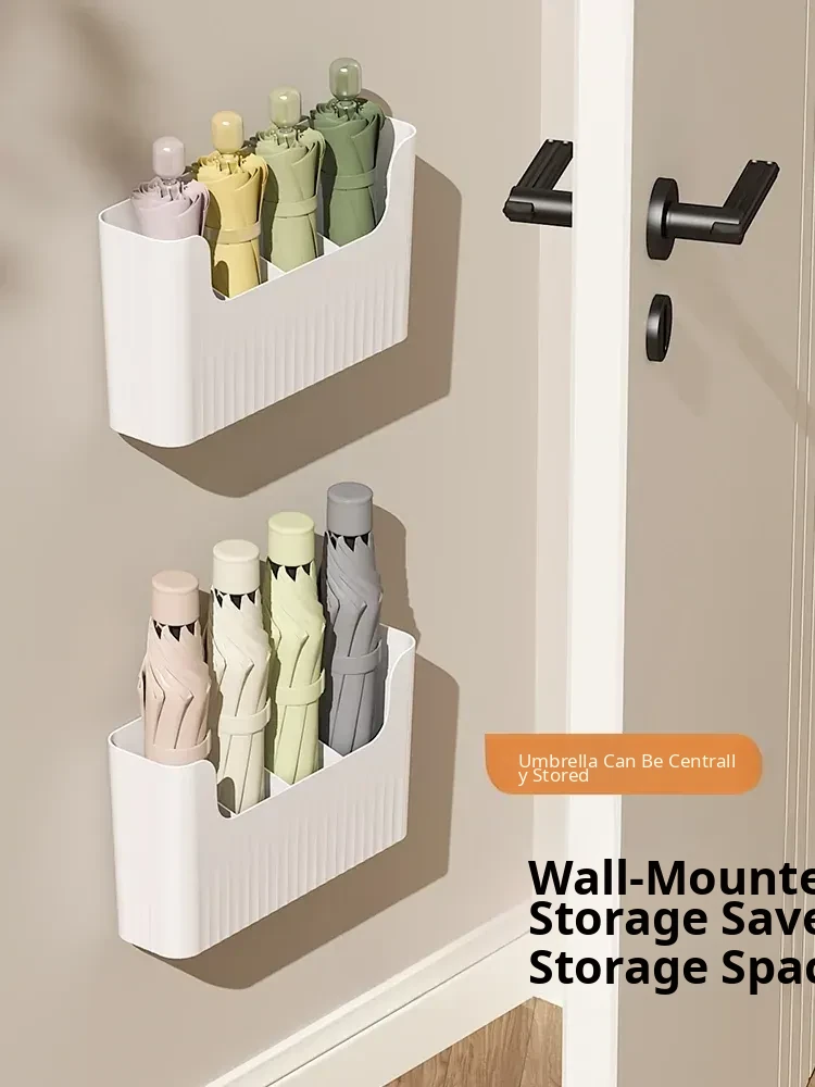Japanese Style Wall-Mounted Umbrella Rack – Home Entryway Storage Solution with Draining Bucket, No Drilling Required, Perfect for Keeping Your Entrance Tidy