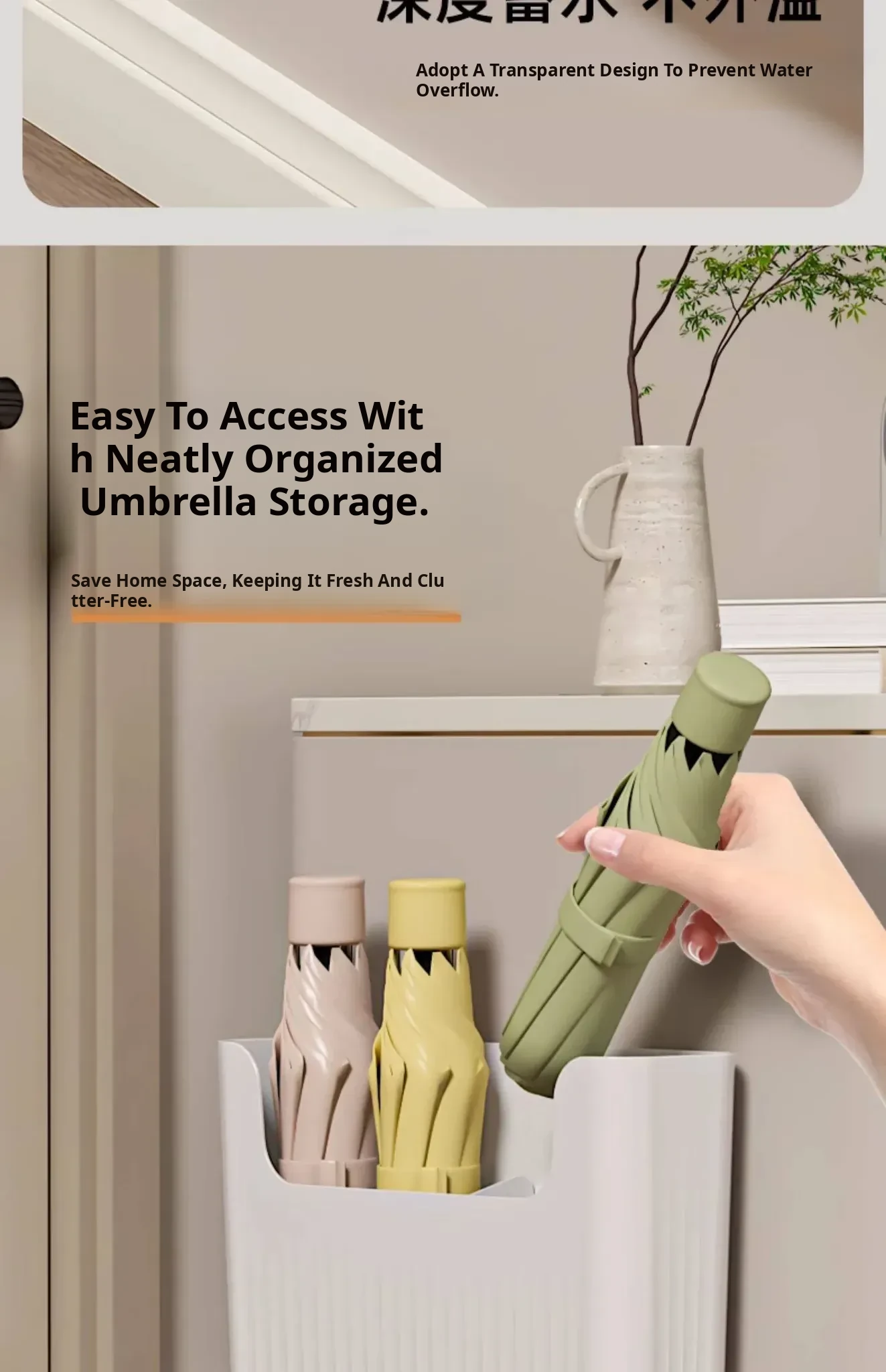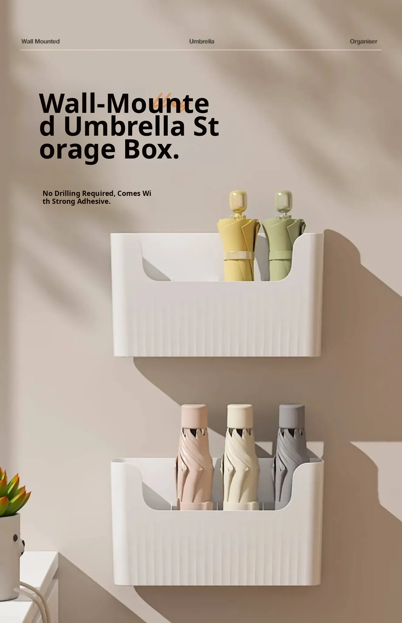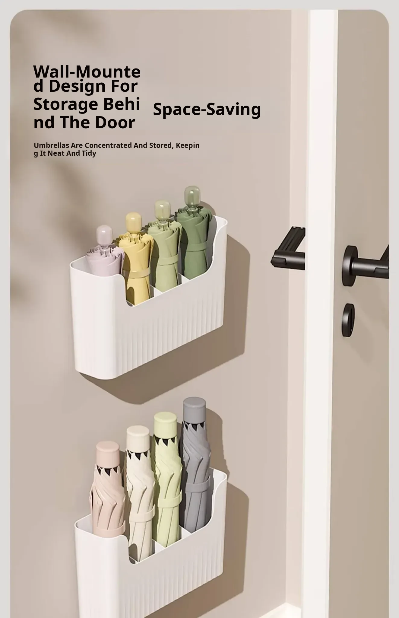 Japanese Style Wall-Mounted Umbrella Rack – Home Entryway Storage Solution with Draining Bucket, No Drilling Required, Perfect for Keeping Your Entrance Tidy