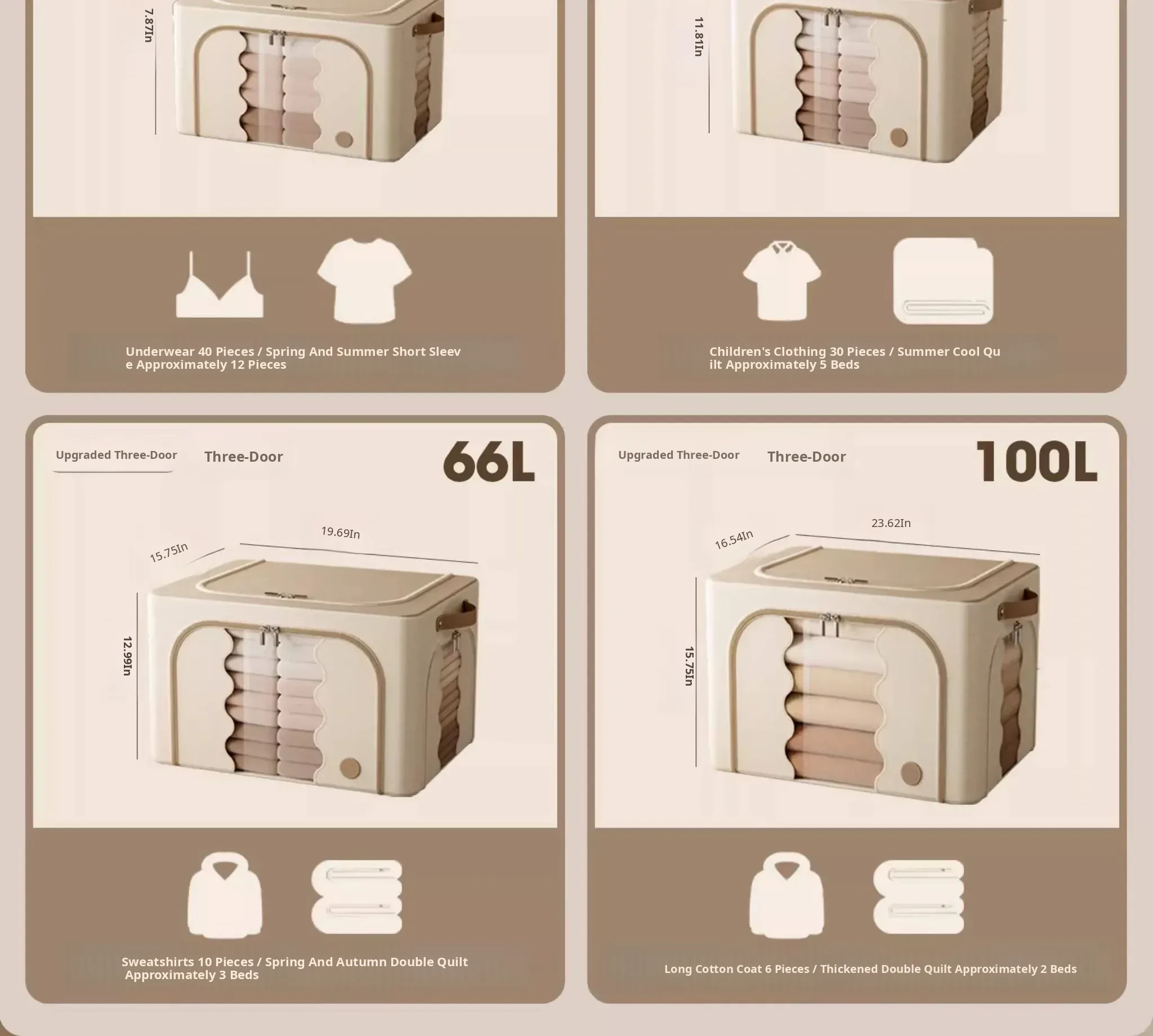 66L - Upgraded Three-Door - Original Thick Woven Fabric [Newly Upgraded/Breathable & Odorless]