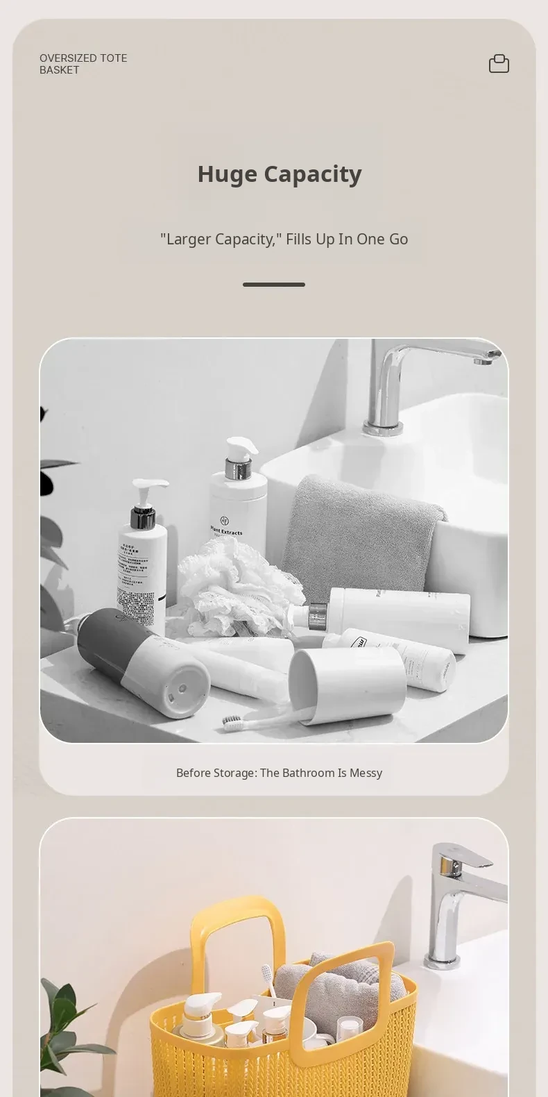 Large Capacity Plastic Bath Basket - Stylish and Portable Shower Caddy for Women's Toiletries and Bath Essentials - Perfect for Organizing Your Bathroom!