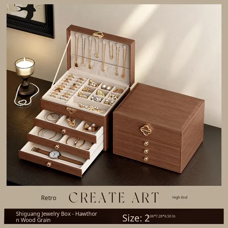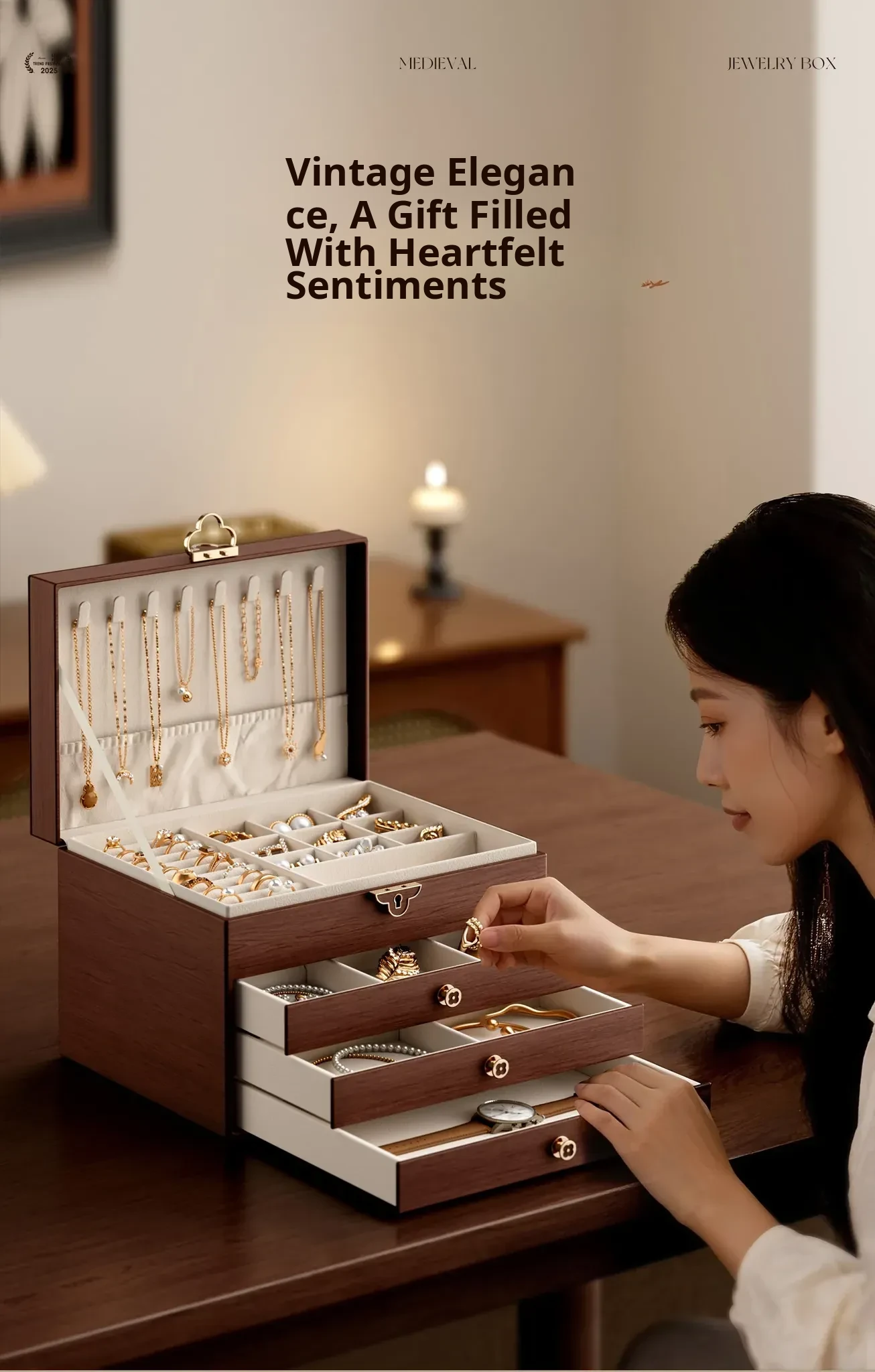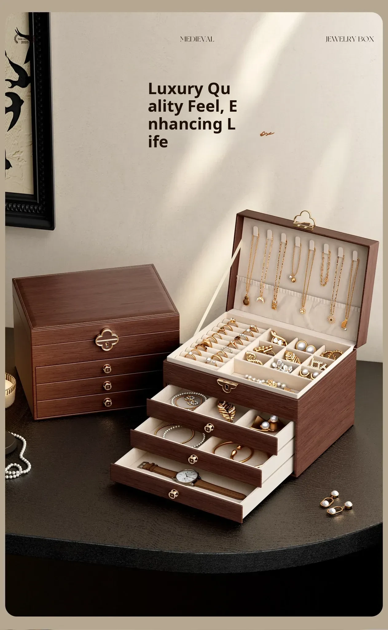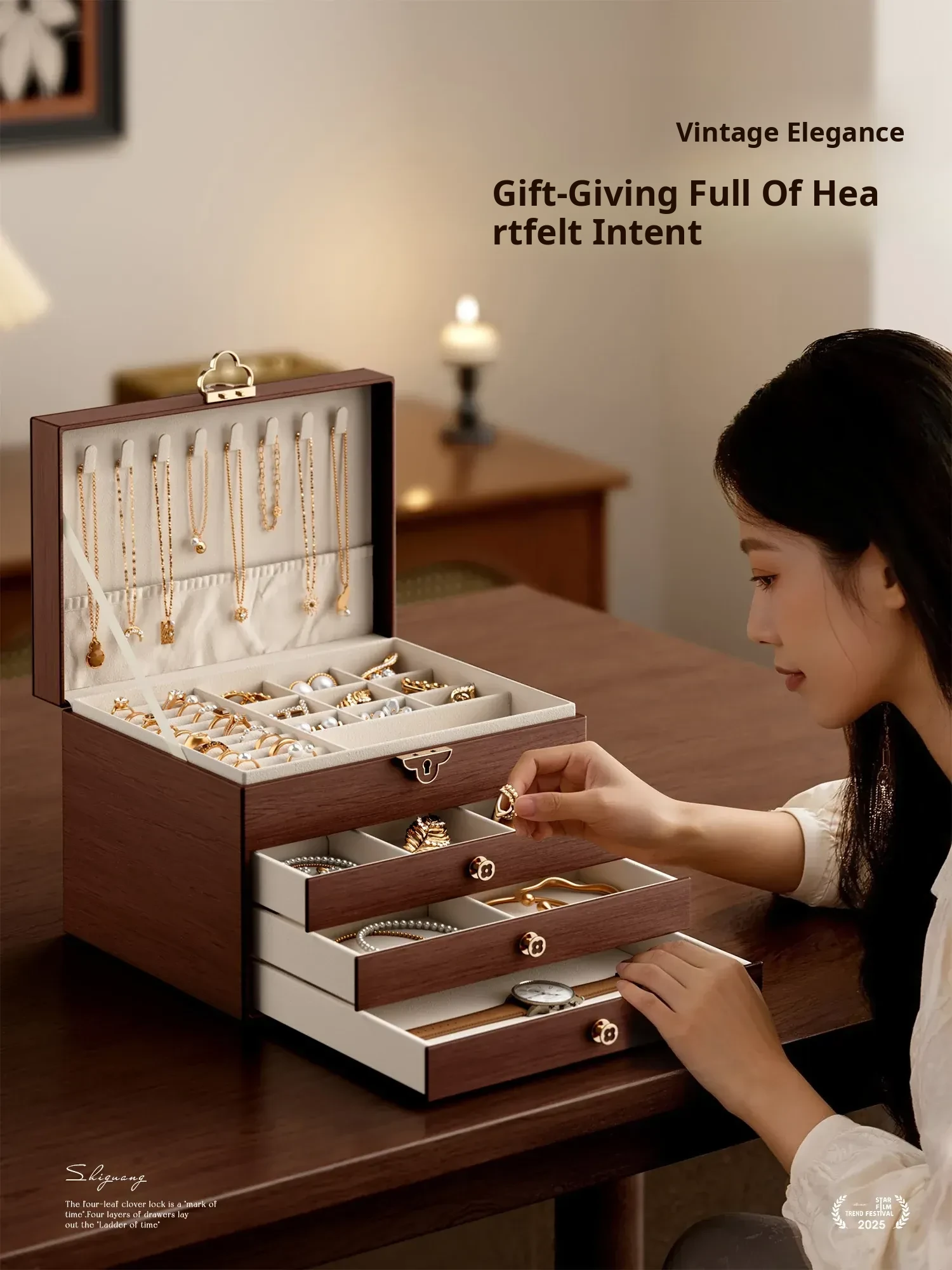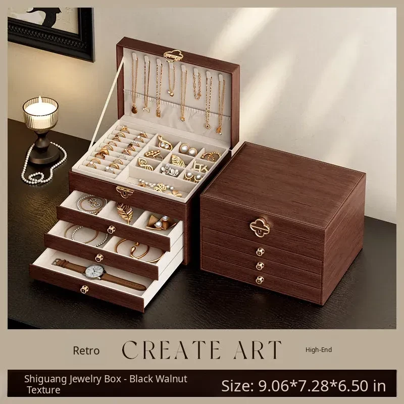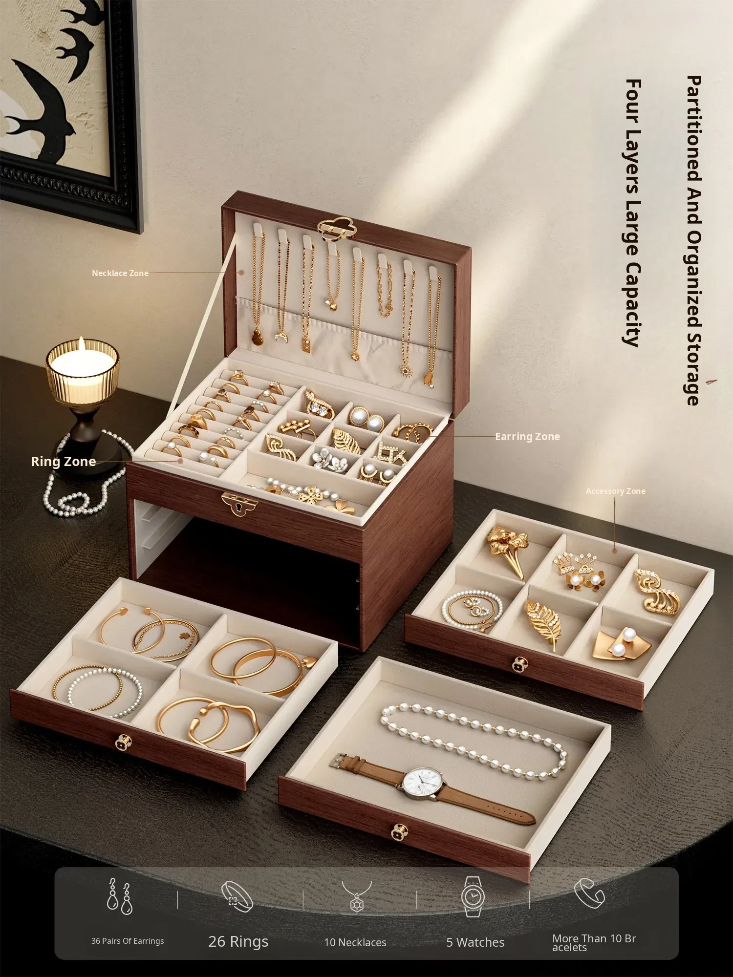 Luxury Black Walnut Wood Jewelry Box - Elegant Storage for Gold Earrings and Necklaces, Spacious Design, Anti-Oxidation, Perfect for Organizing Your Precious Accessories
