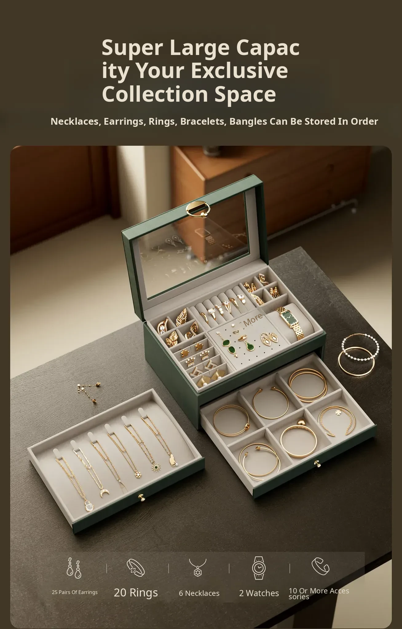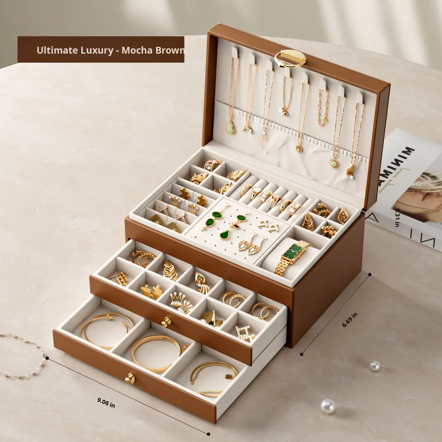 Luxury Jewelry Organizer Box 2026 - Elegant and Spacious Storage for Earrings, Studs, Necklaces, and Gold Accessories - Perfect for Your Precious Gems!