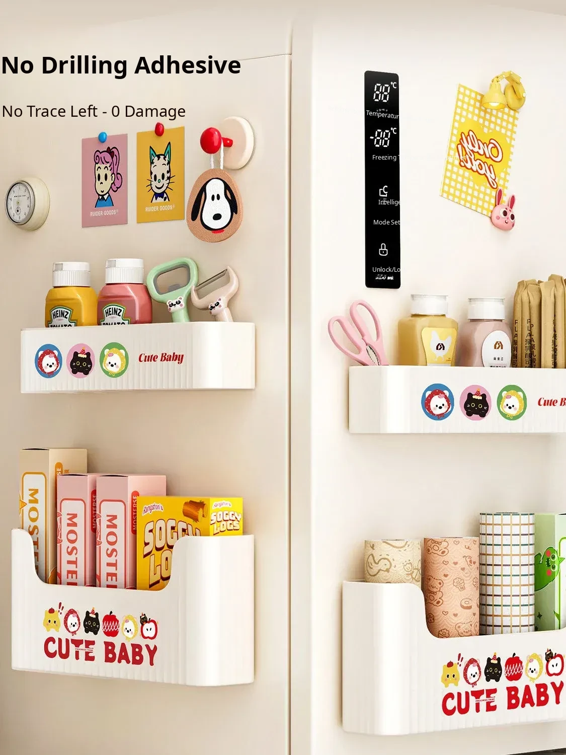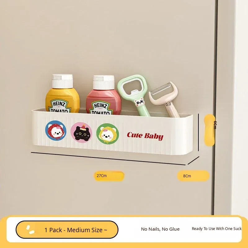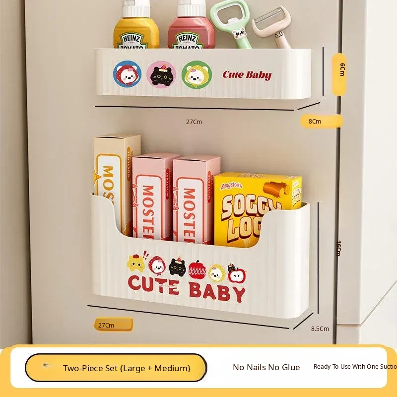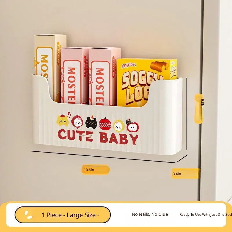 Magnetic Refrigerator Storage Box - Side Kitchen Organizer for Cling Film and Bags, No Drill Hanging Basket for Easy Home Entry Use
