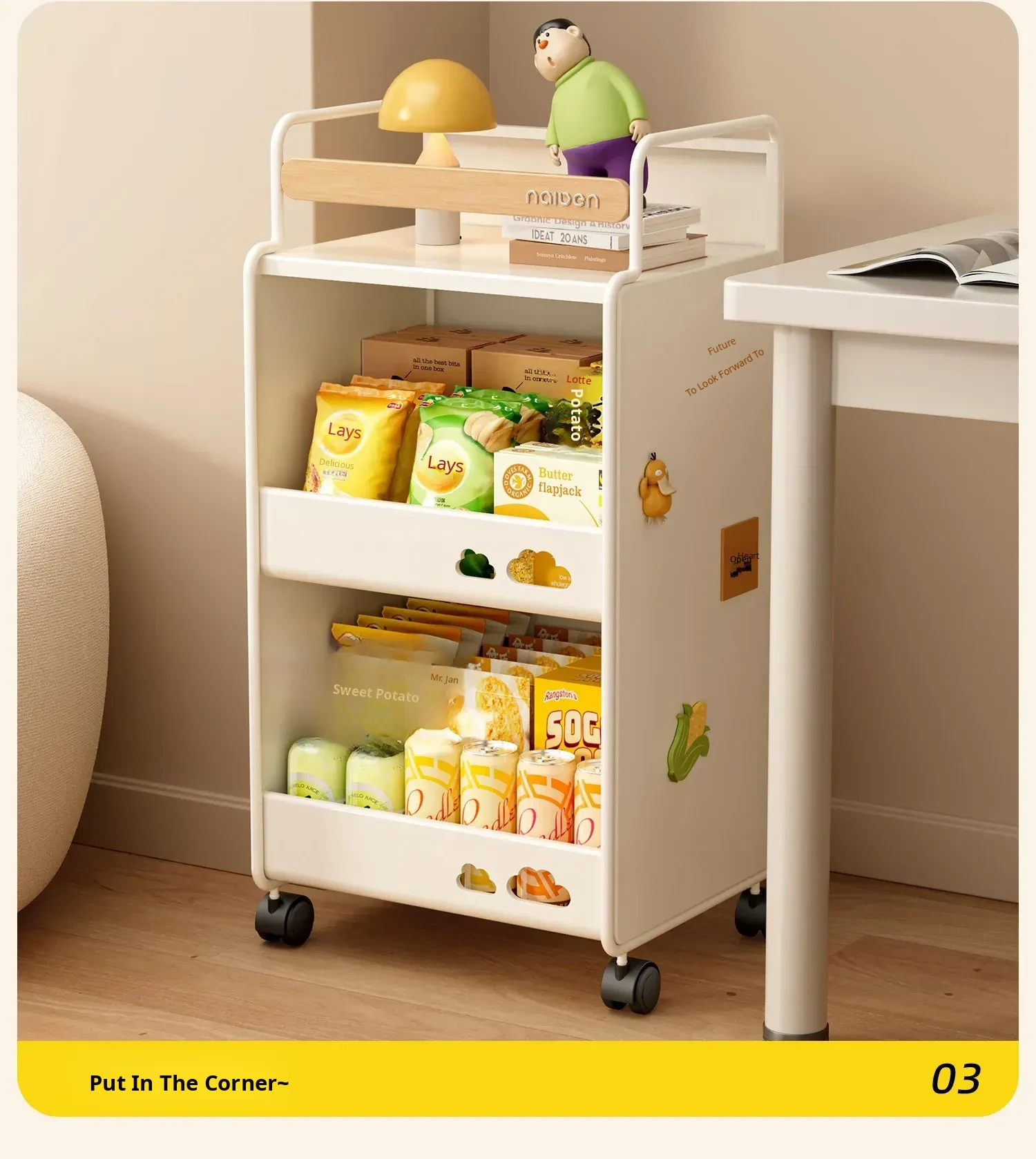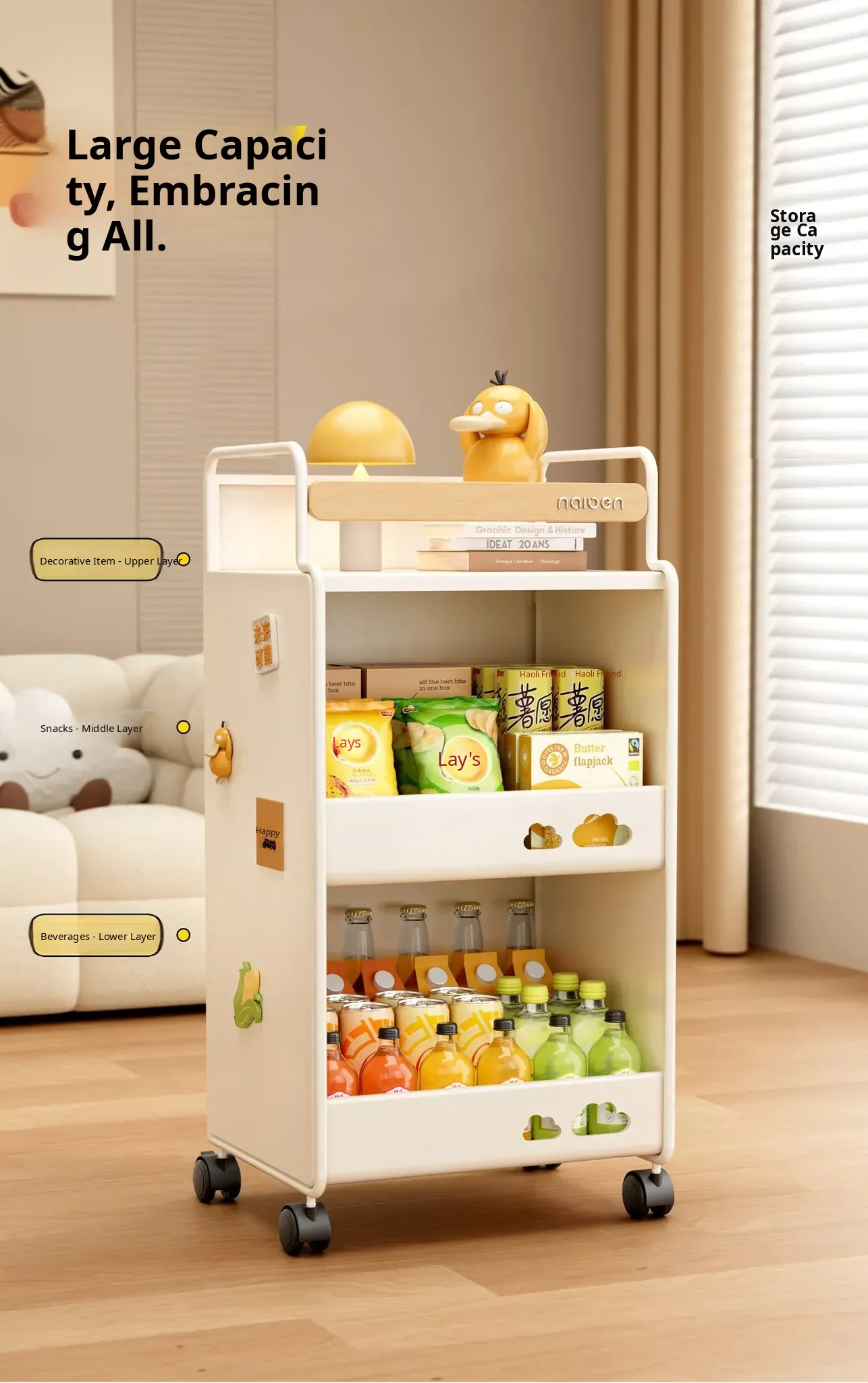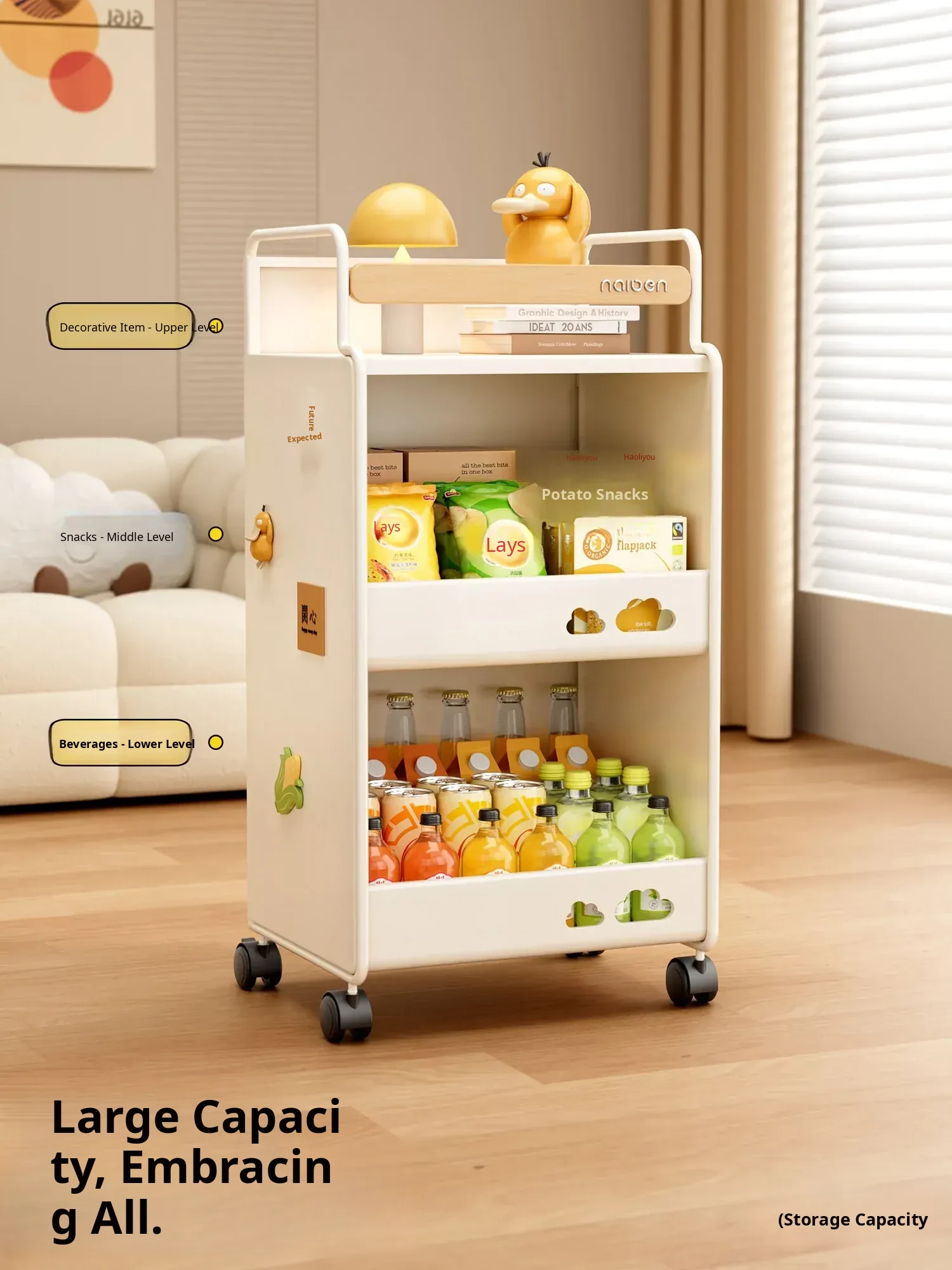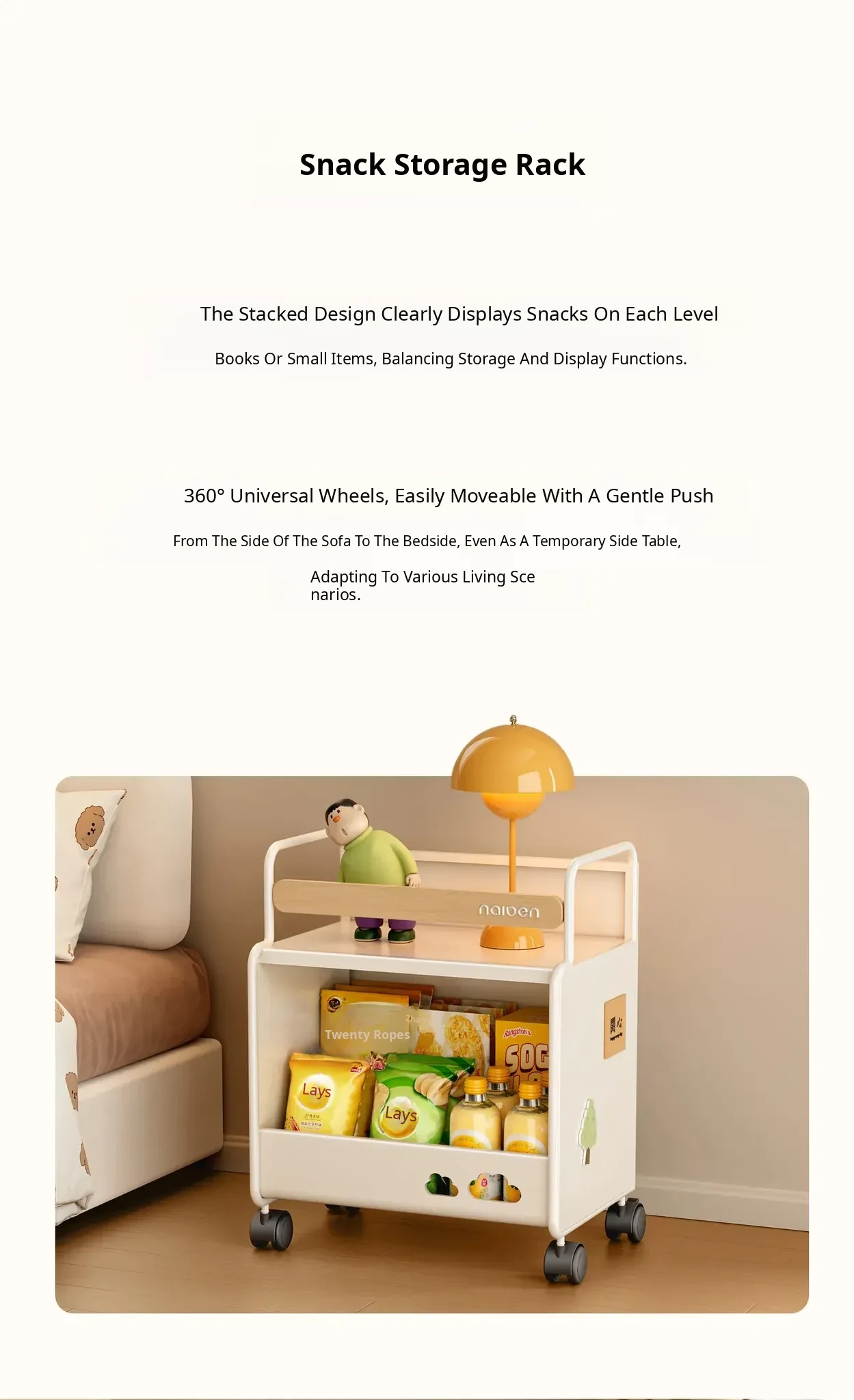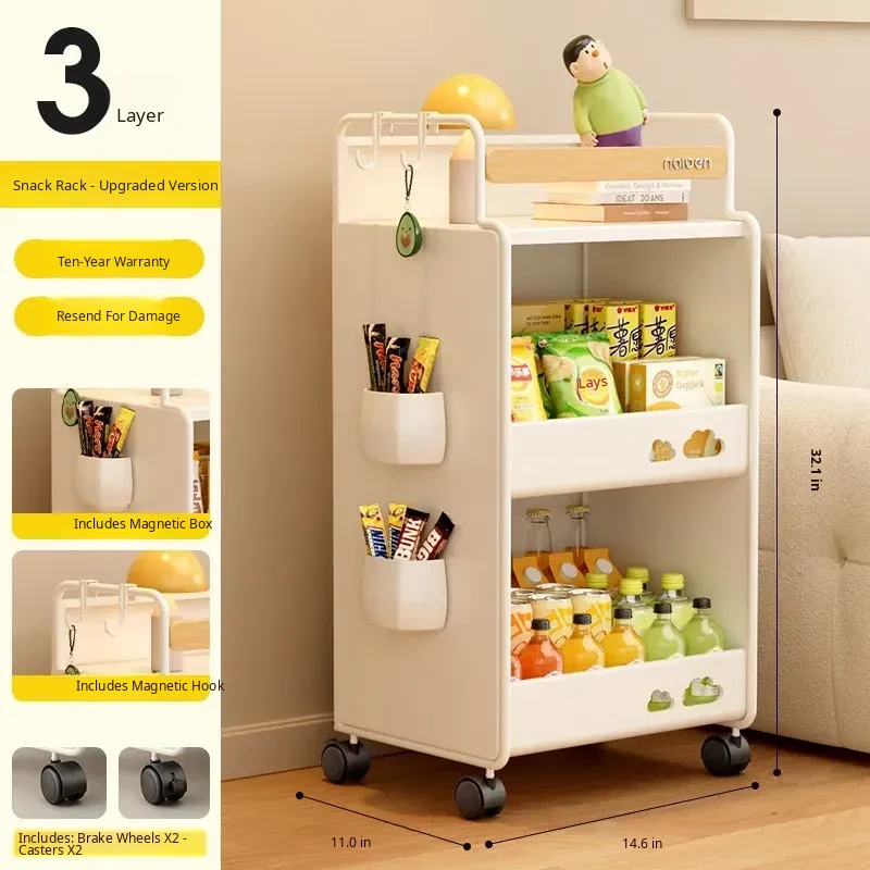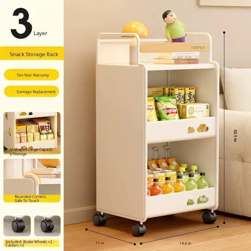 Multi-Layer Rolling Snack Cart - Versatile Storage Rack for Bedroom, Living Room, Kitchen & Nursery - Perfect for Organizing Your Space!