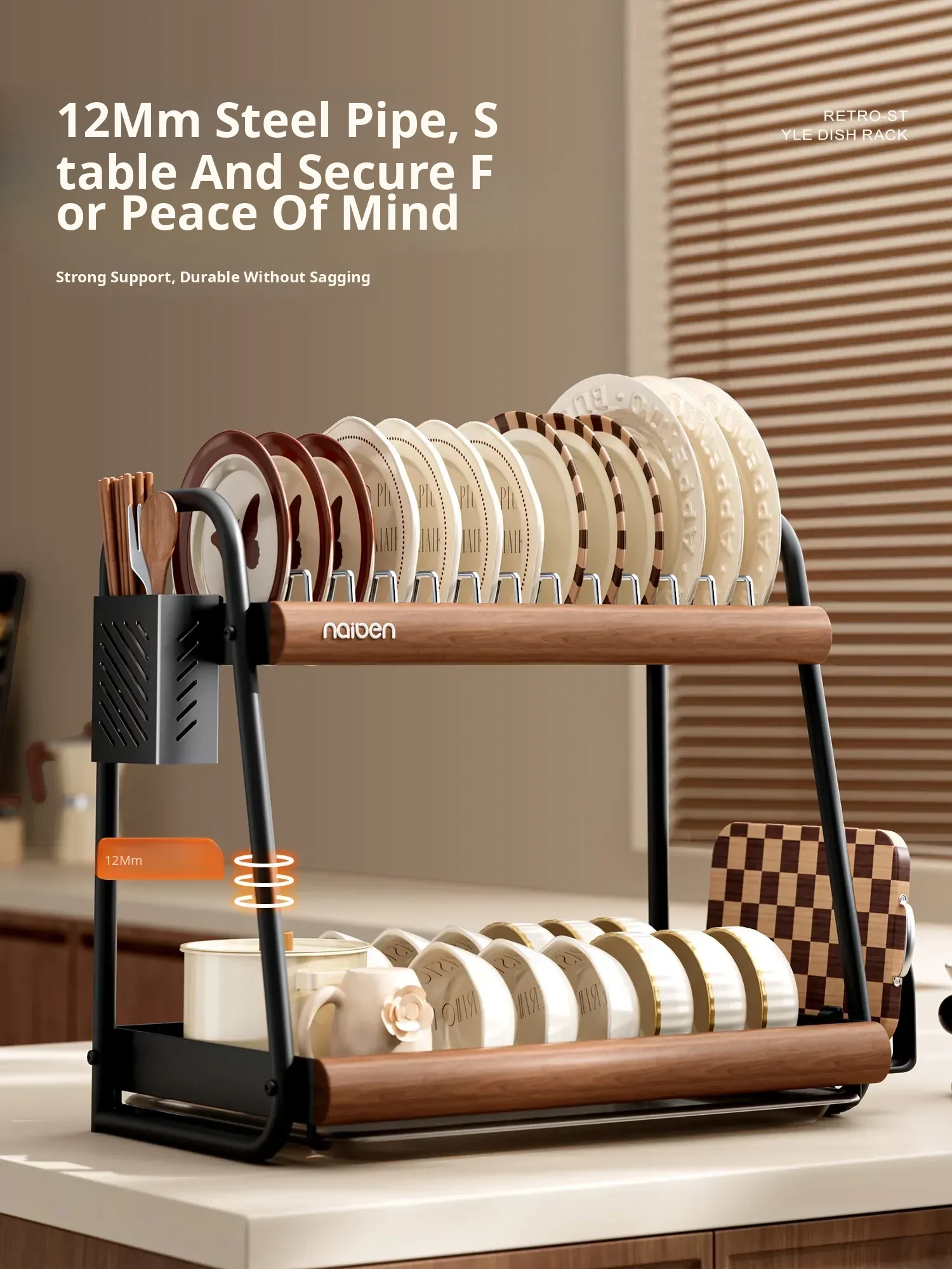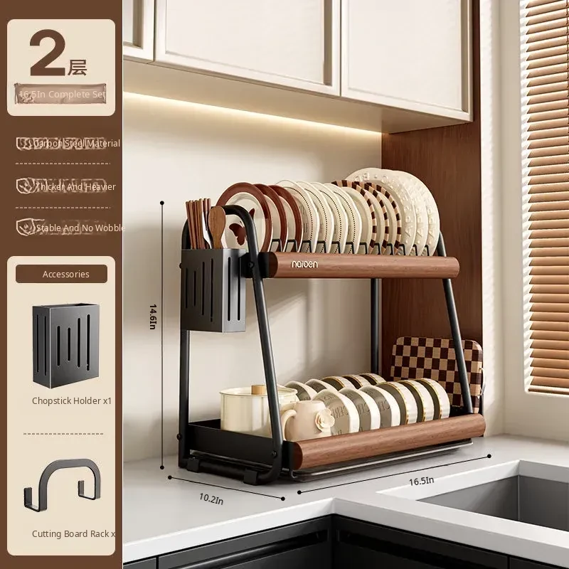 Selected Carbon Steel [Black Walnut Color/Double Layer] (Chopstick Cage + Cutting Board Holder)