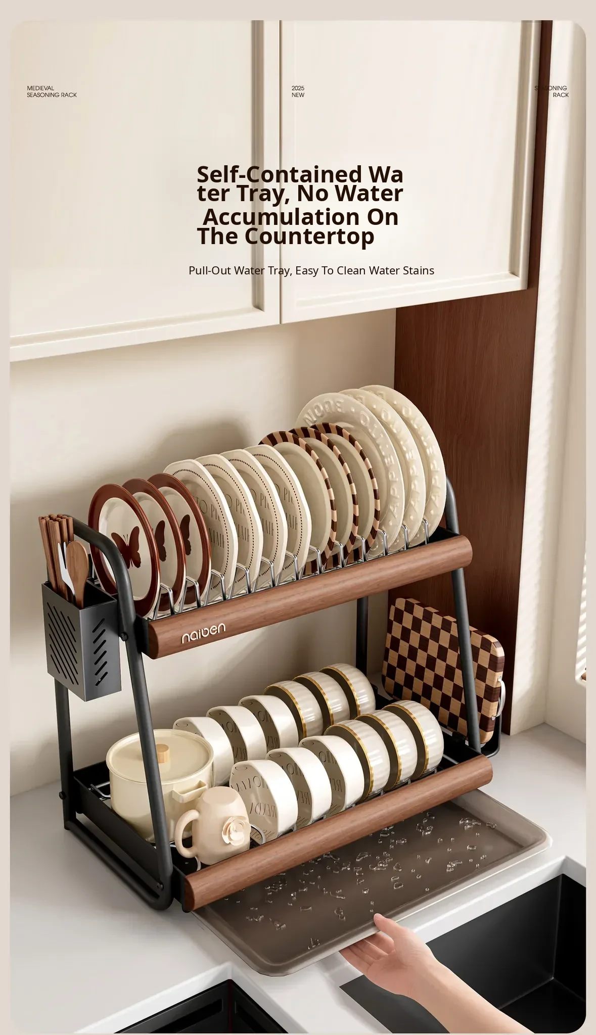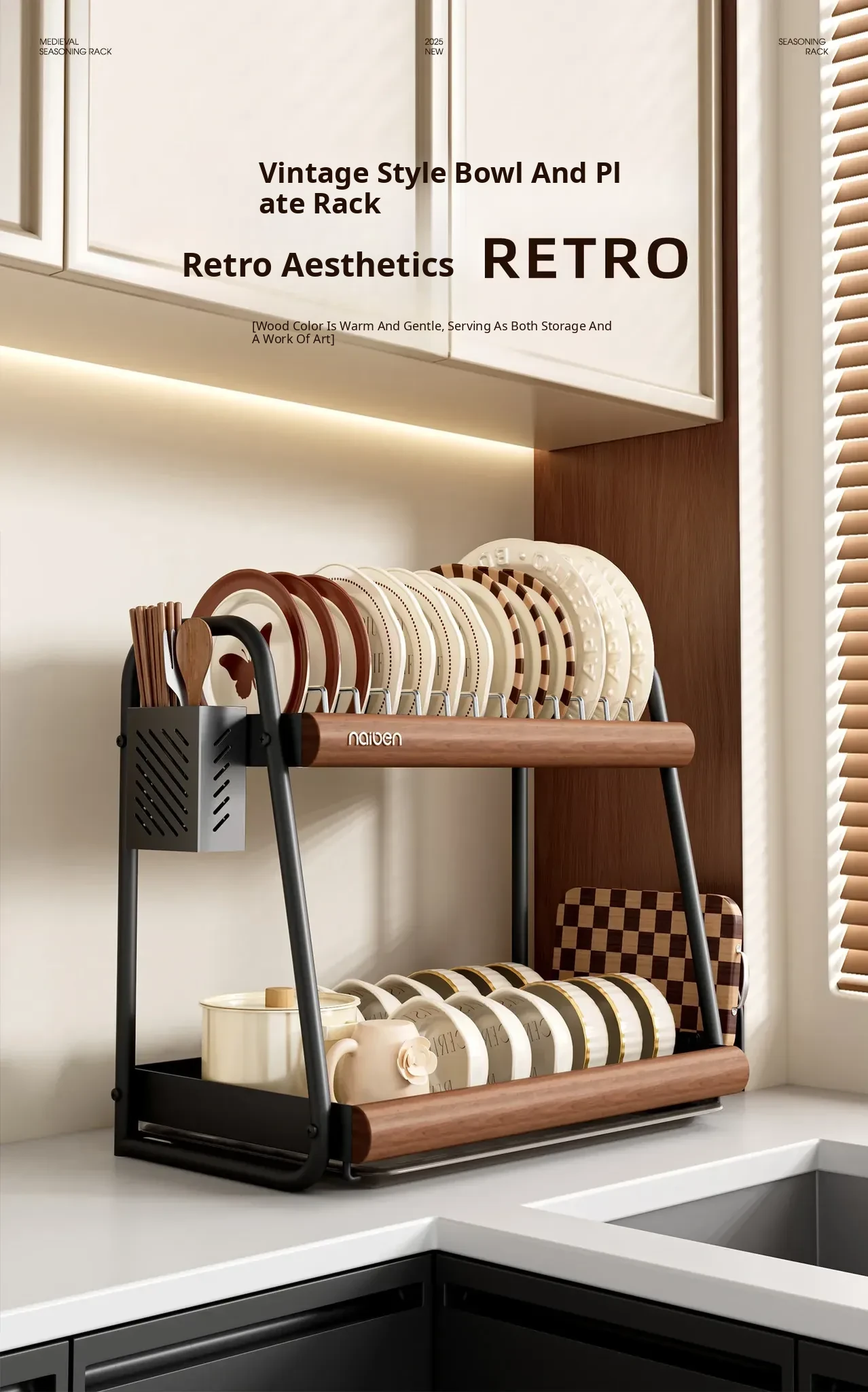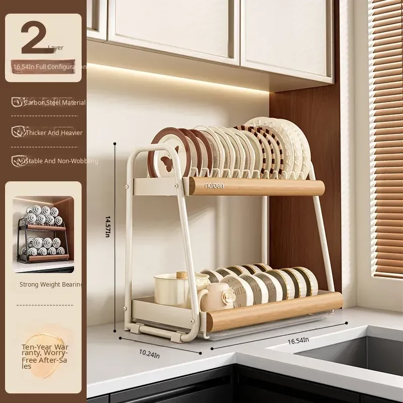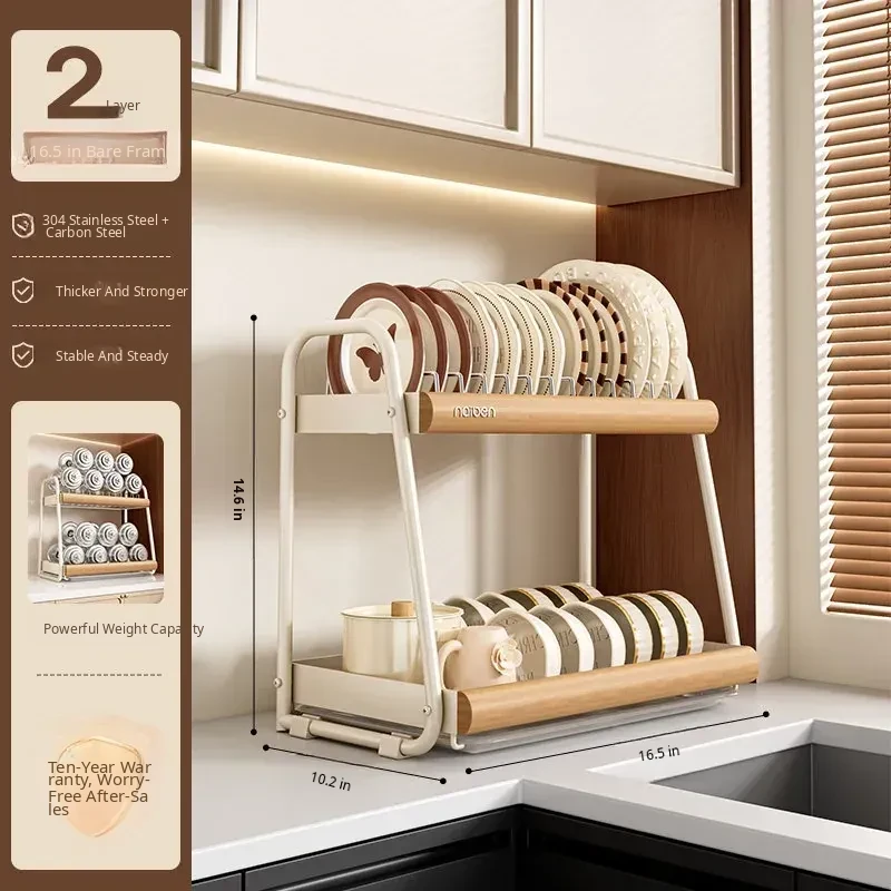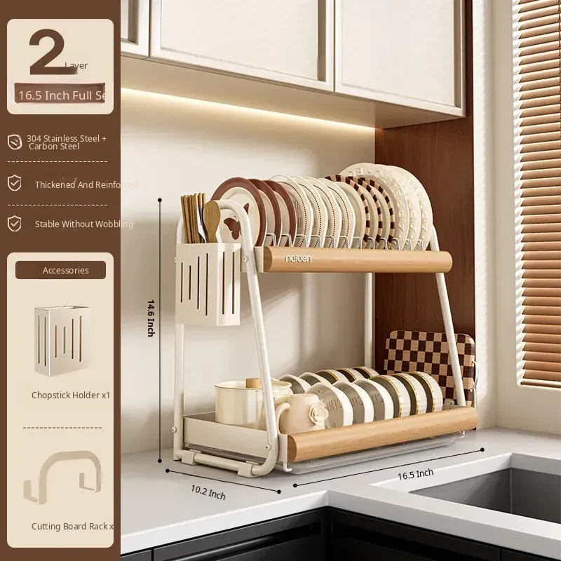 304 Stainless Steel [Natural Wood Color/Double Layer] (Chopstick Cage + Cutting Board Rack)