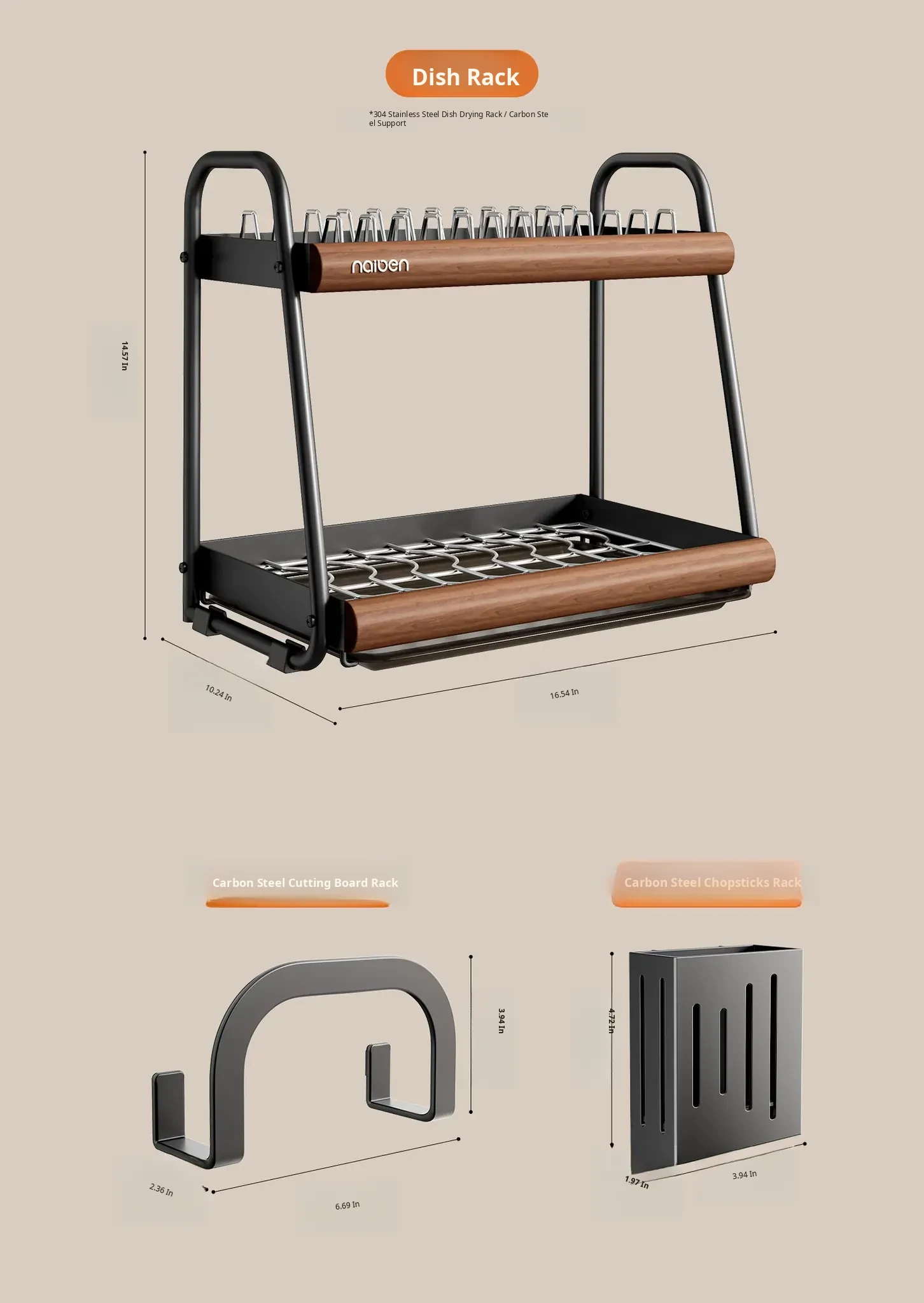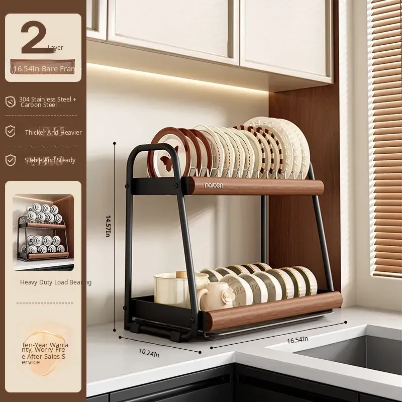304 Stainless Steel [Black Walnut Finish/Double Layer] (Chopstick Cage + Cutting Board Rack)