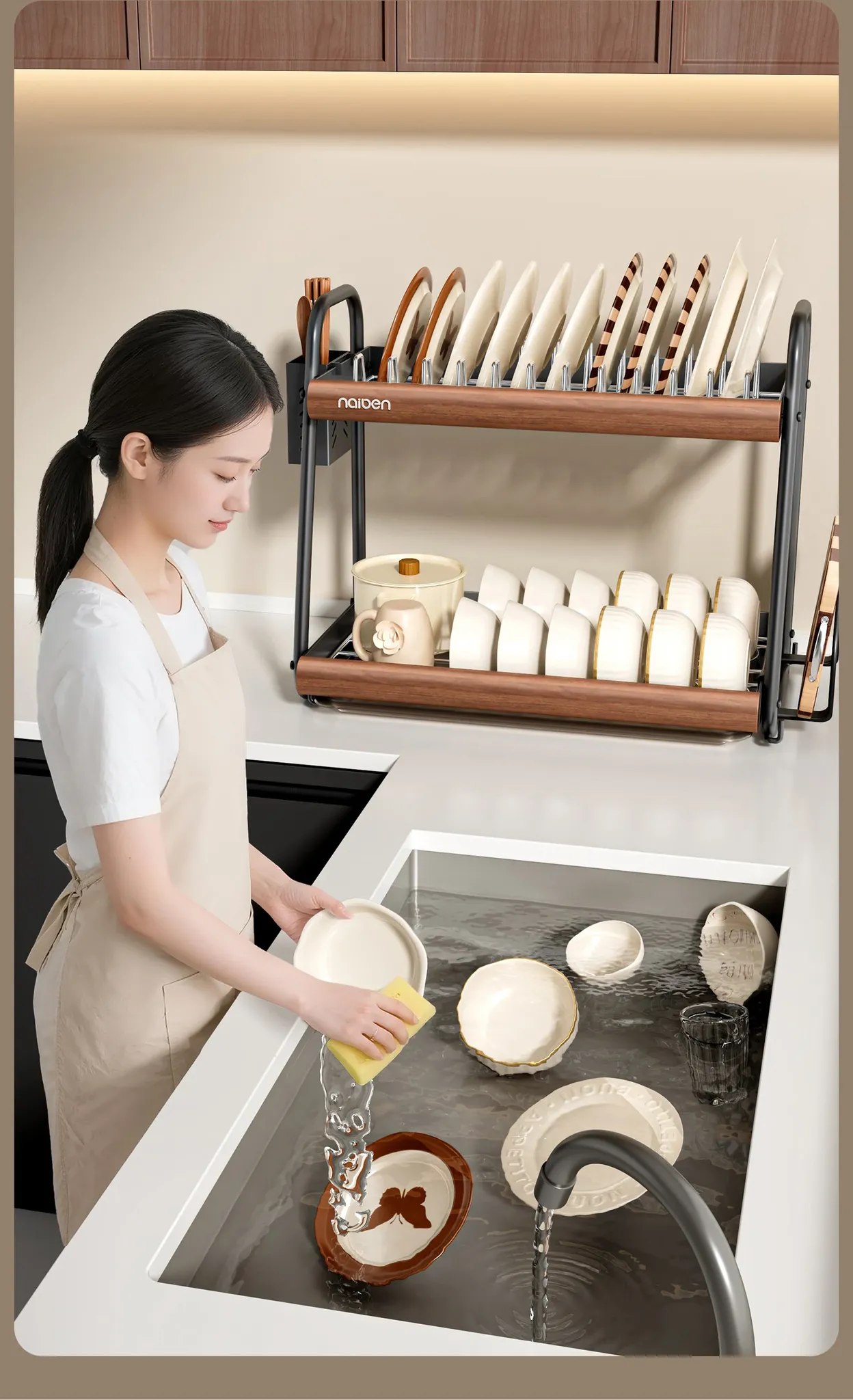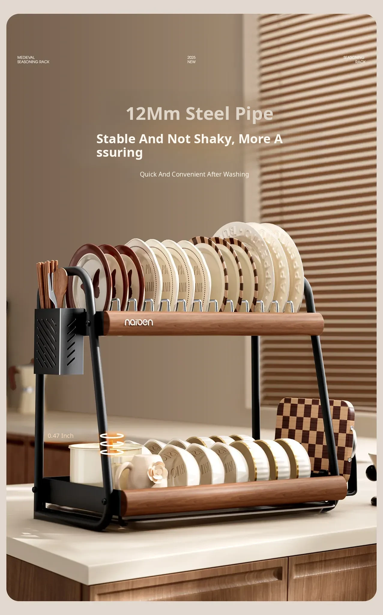 Naben 304 Stainless Steel Kitchen Dish Rack - Space-Saving Drainage Rack for Bowls and Plates, Utensil Organizer and Storage Shelf for a Neat and Tidy Kitchen