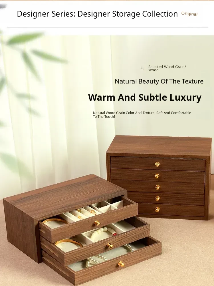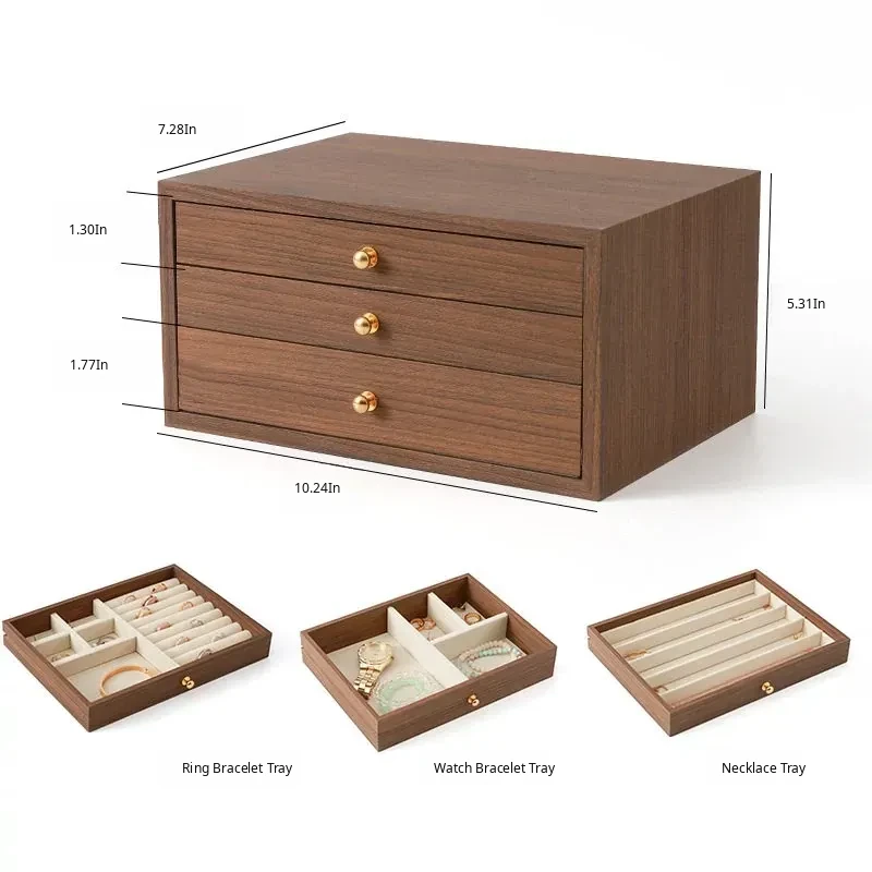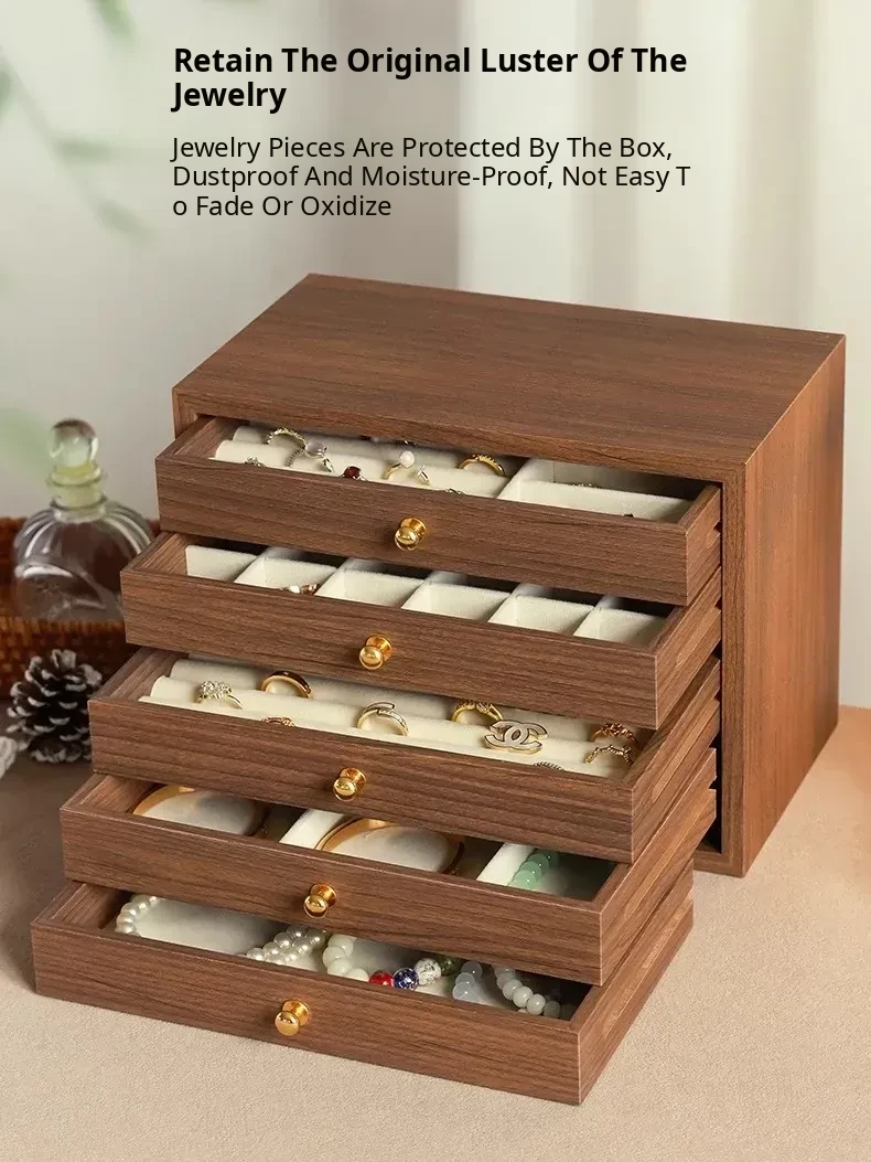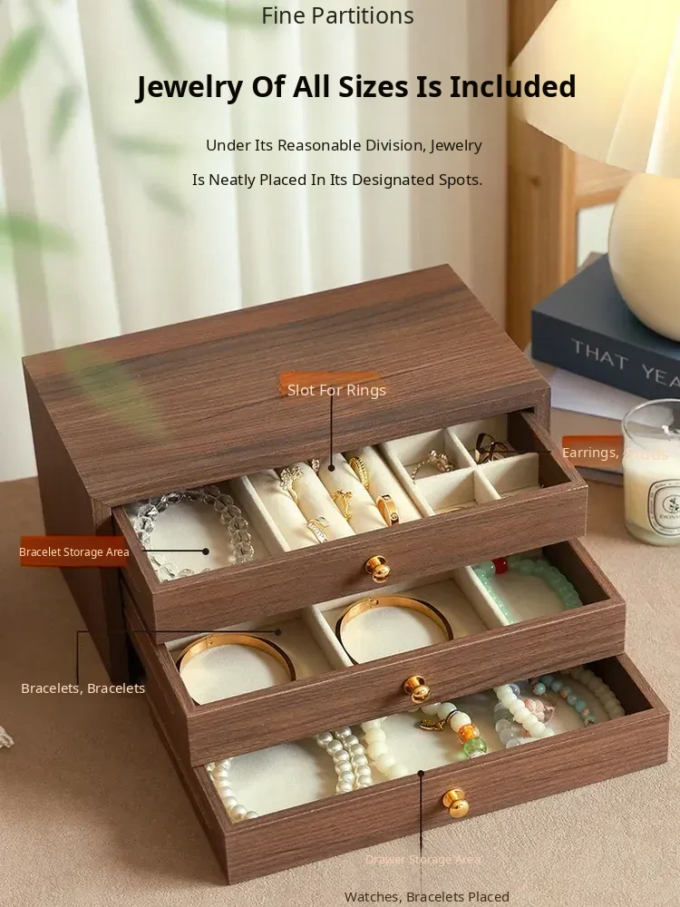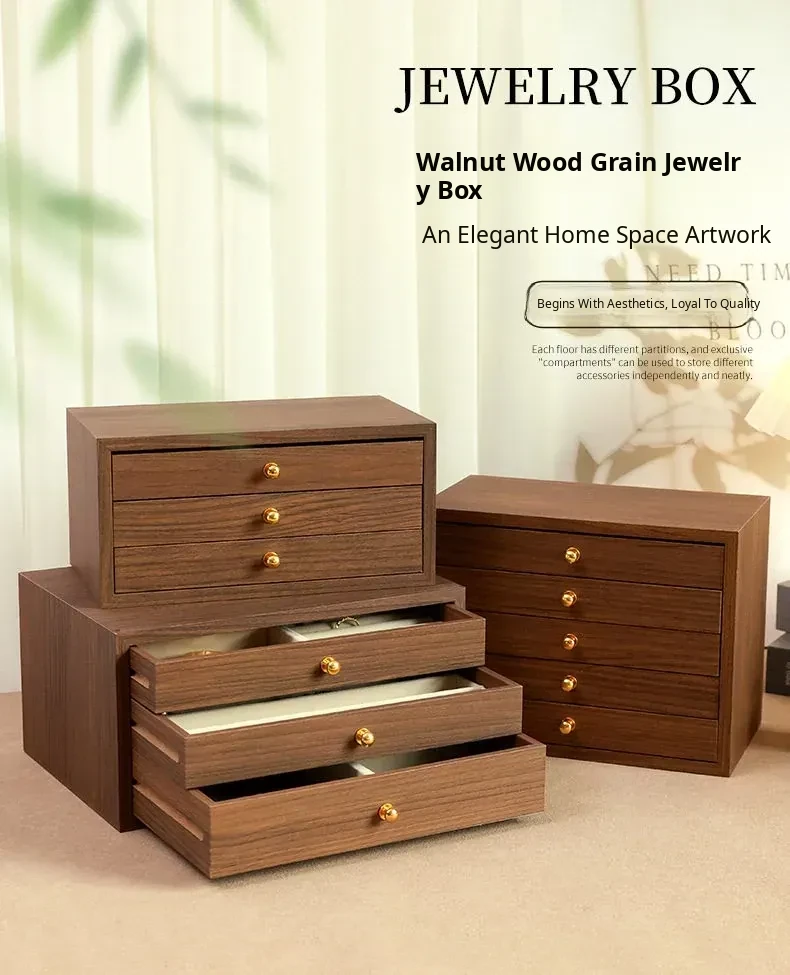 New Walnut Wood Grain Jewelry Box - Elegant and Exquisite Multi-Layer Storage for Necklaces, Earrings, and Accessories - Perfect for Organizing Your Precious Treasures!