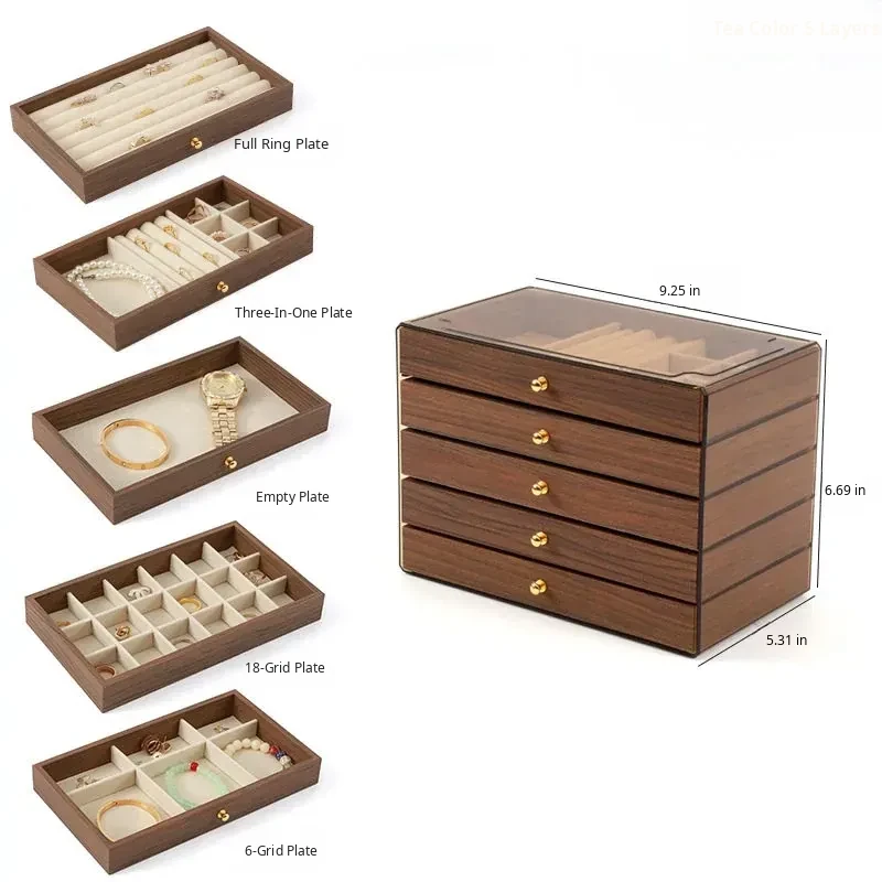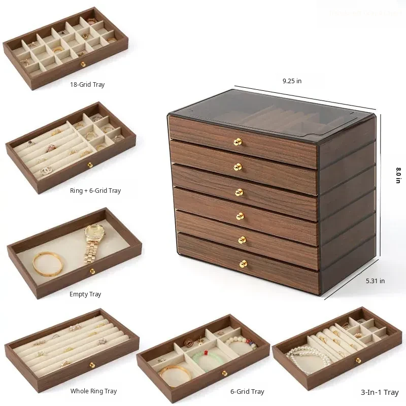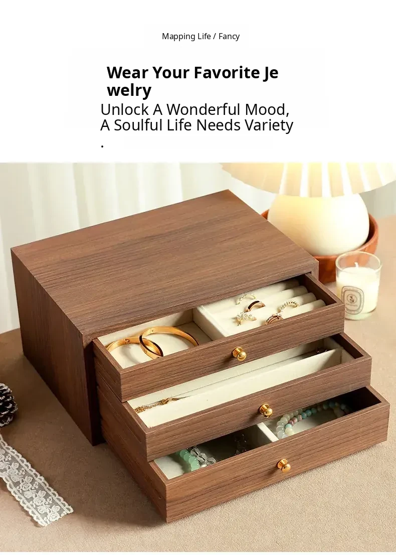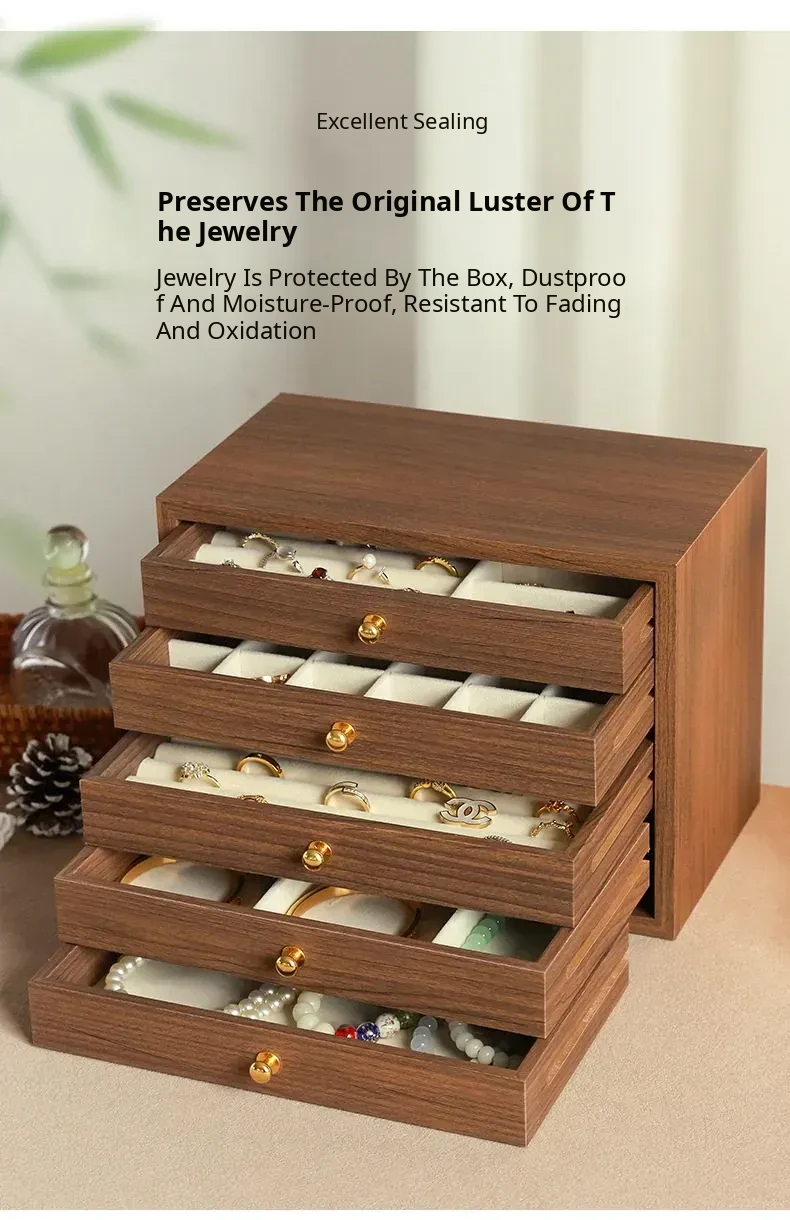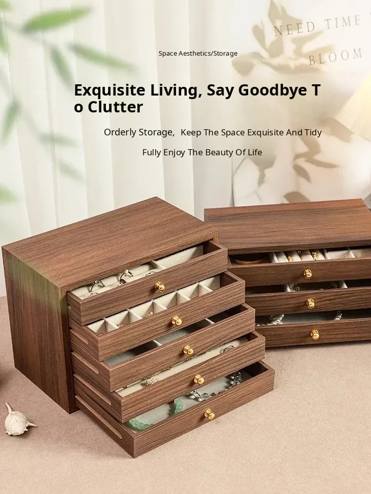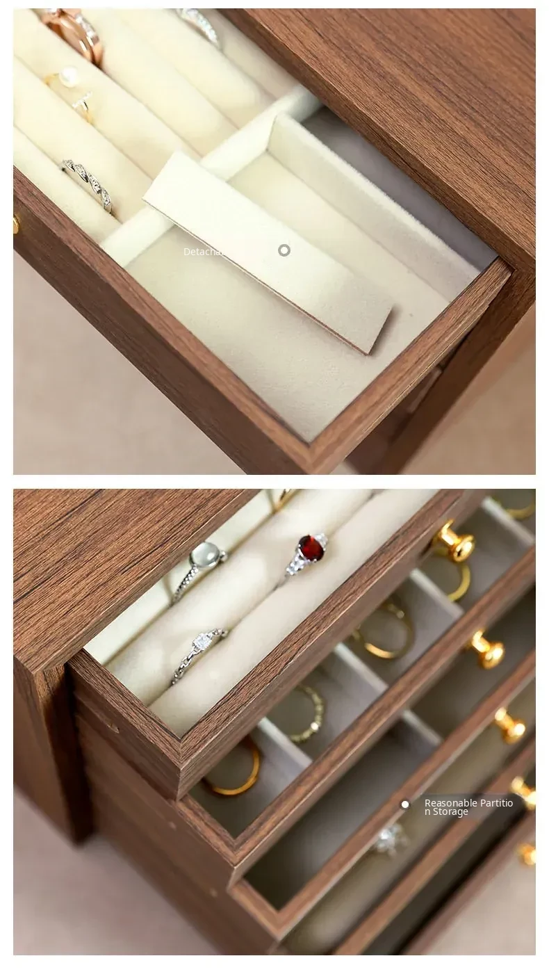 New Walnut Wood Grain Jewelry Box - Elegant and Exquisite Multi-Layer Storage for Necklaces, Earrings, and Accessories - Perfect for Organizing Your Precious Treasures!