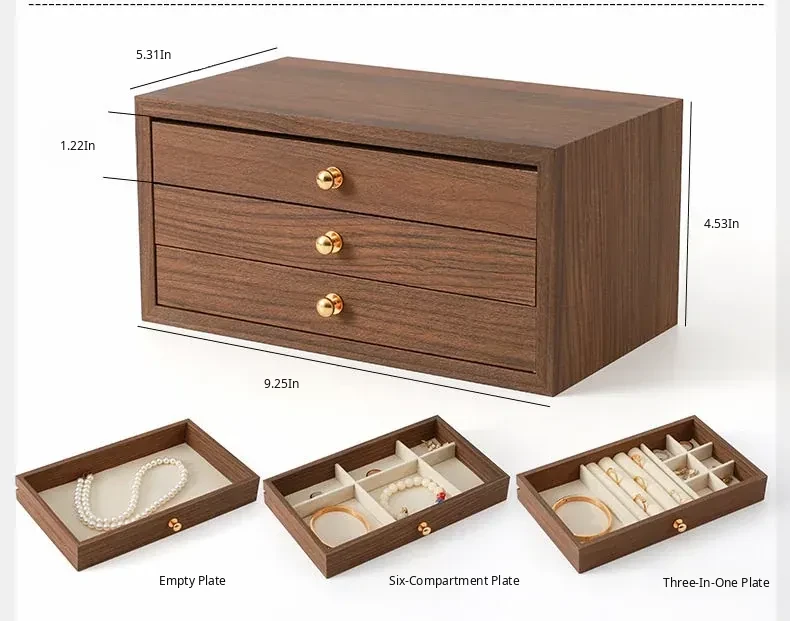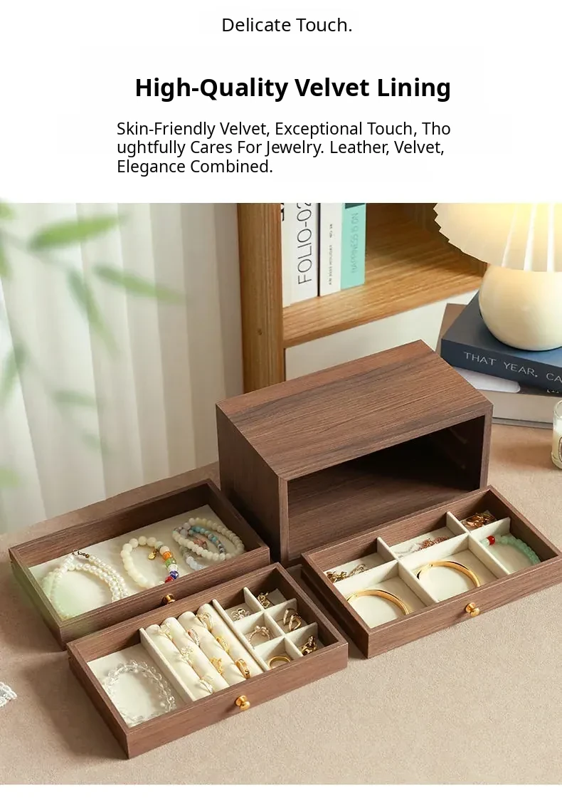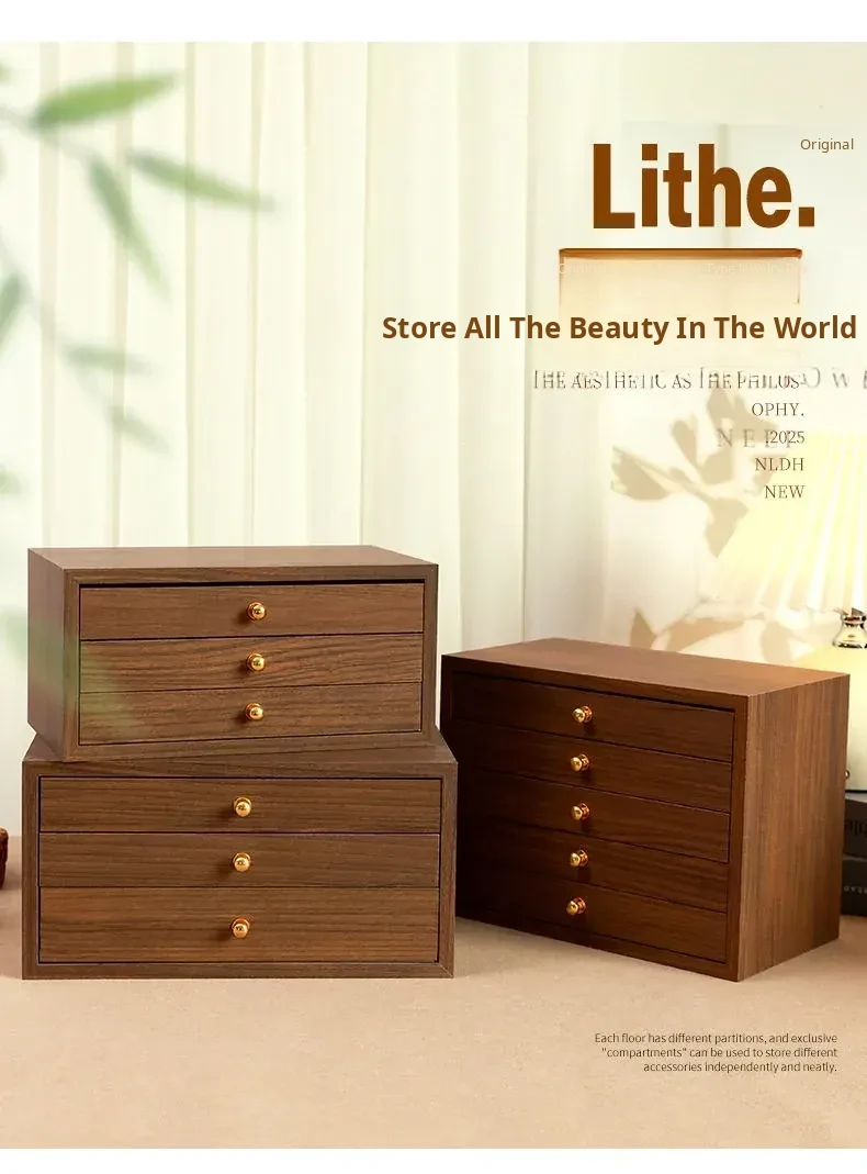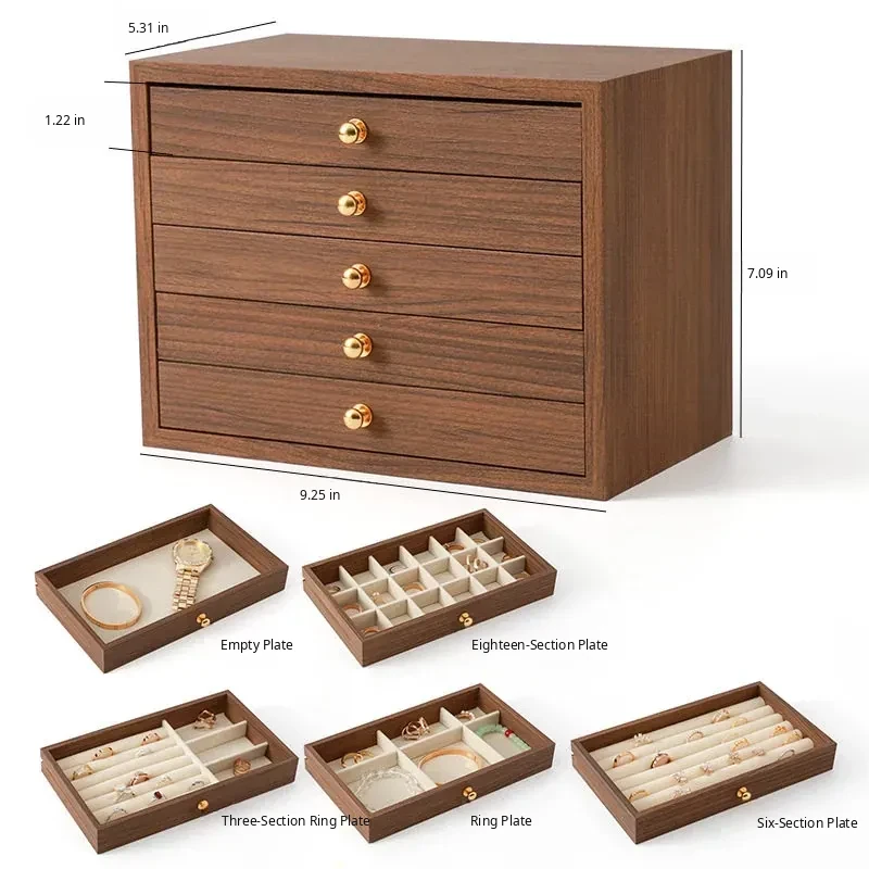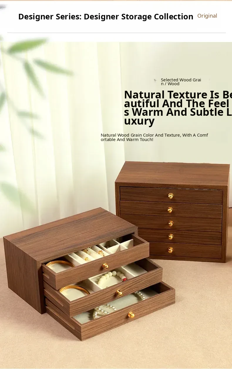 New Walnut Wood Grain Jewelry Box - Elegant and Exquisite Multi-Layer Storage for Necklaces, Earrings, and Accessories - Perfect for Organizing Your Precious Treasures!