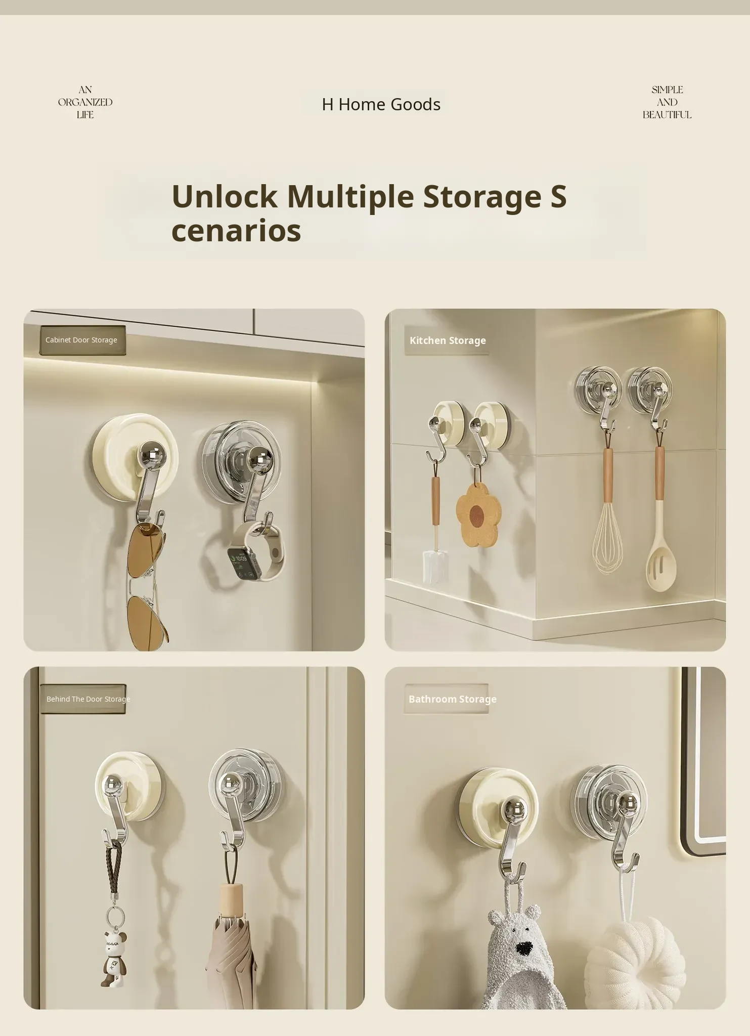 Powerful No-Drill Suction Hooks - Heavy-Duty Vacuum Adhesive Hooks for Kitchen, Bathroom, and Behind Doors - No Marks, Perfect for Towels and More!