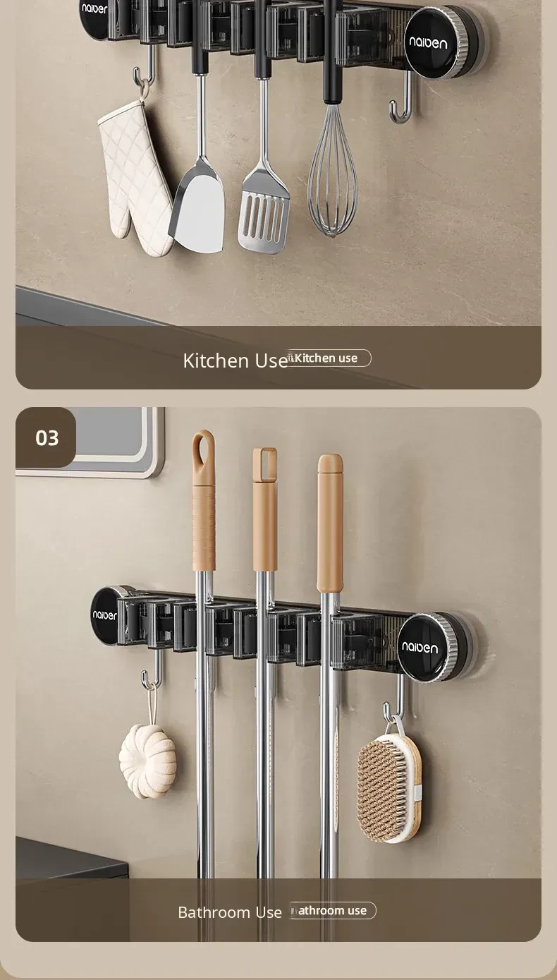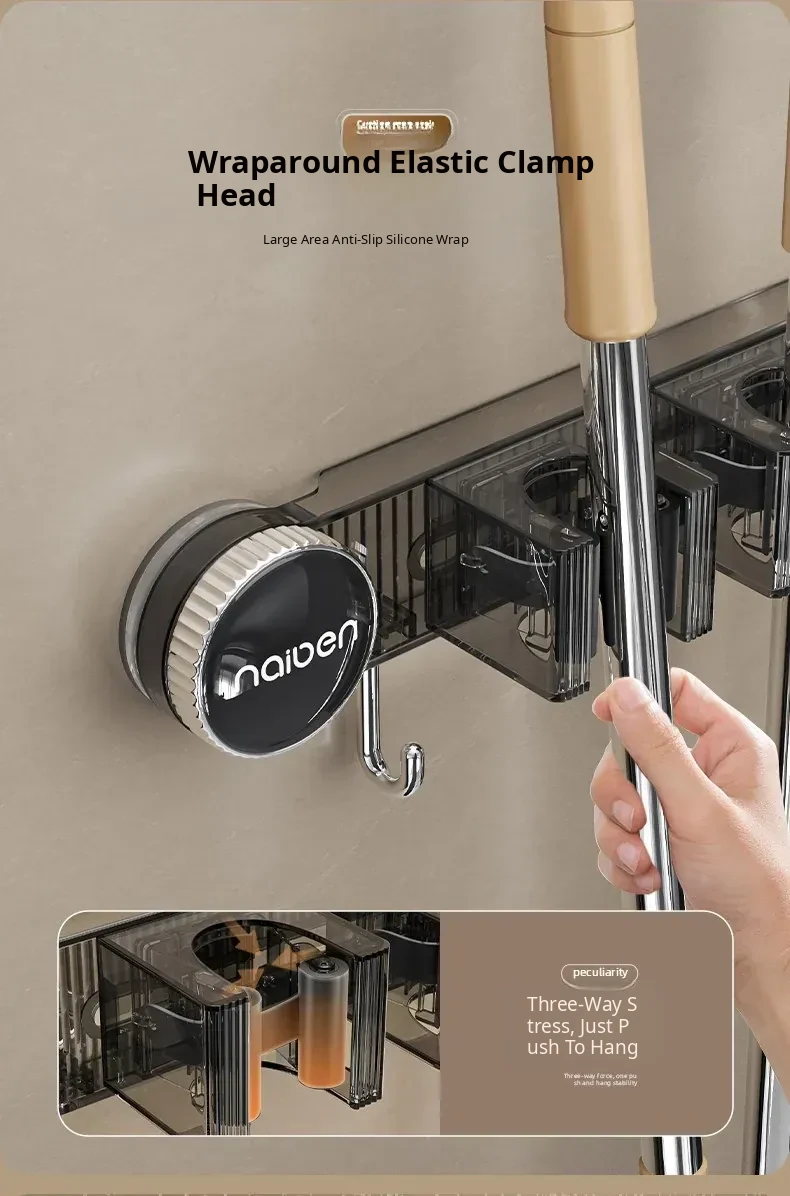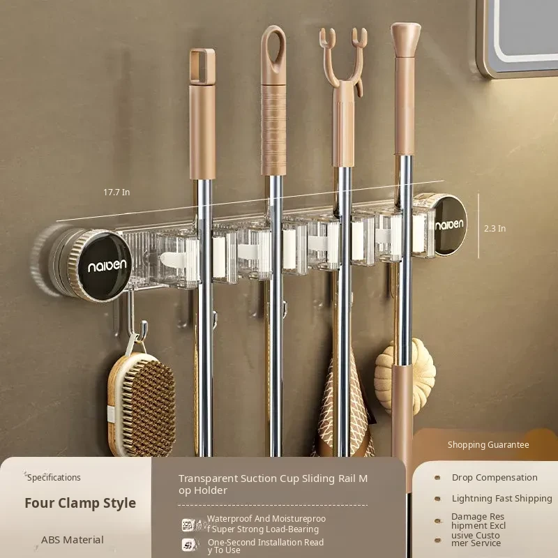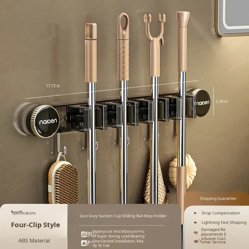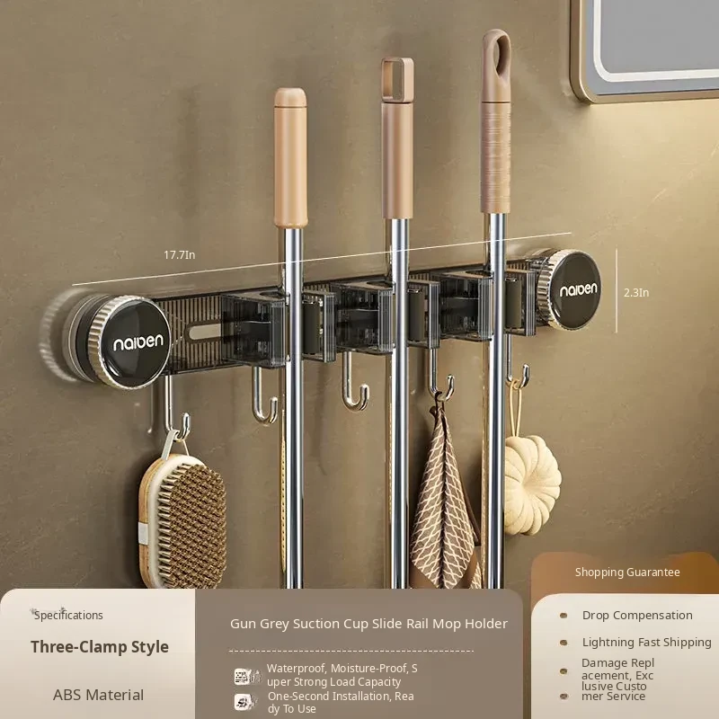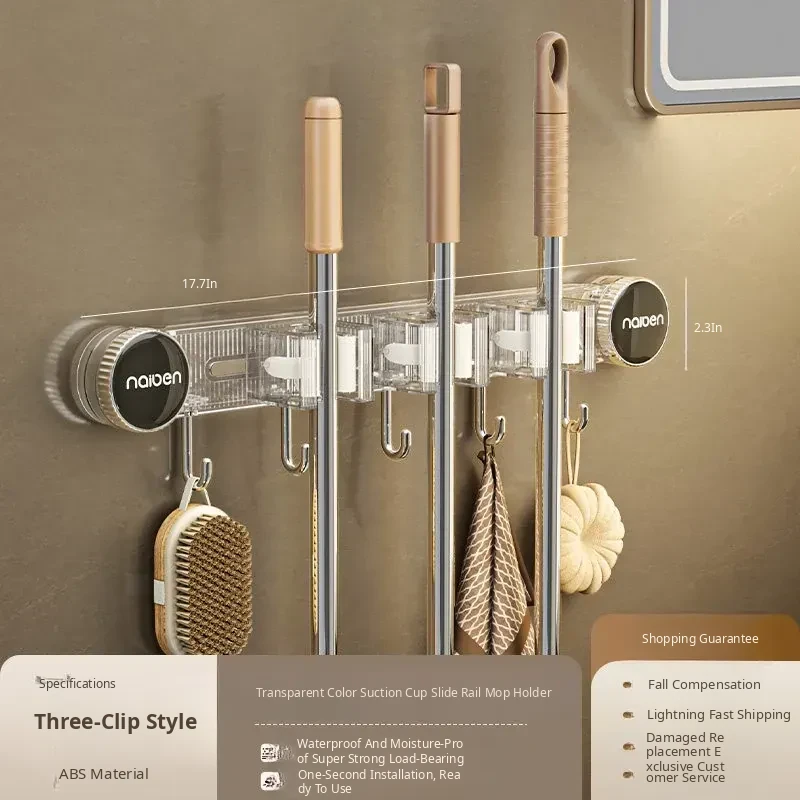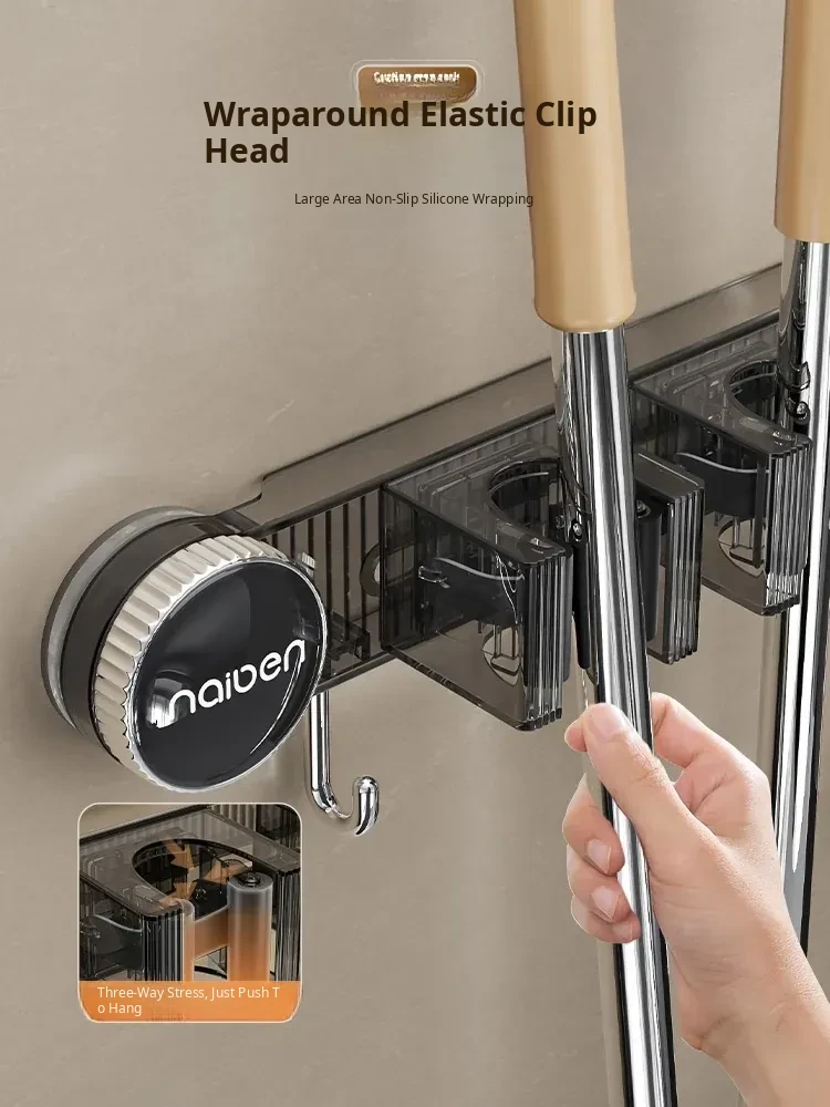 Powerful Suction Mop Wall-Mount Hook - No Drilling Required! Perfect for Organizing Your Bathroom and Toilet with This Innovative Storage Solution. Keep Your Space Tidy and Efficient!