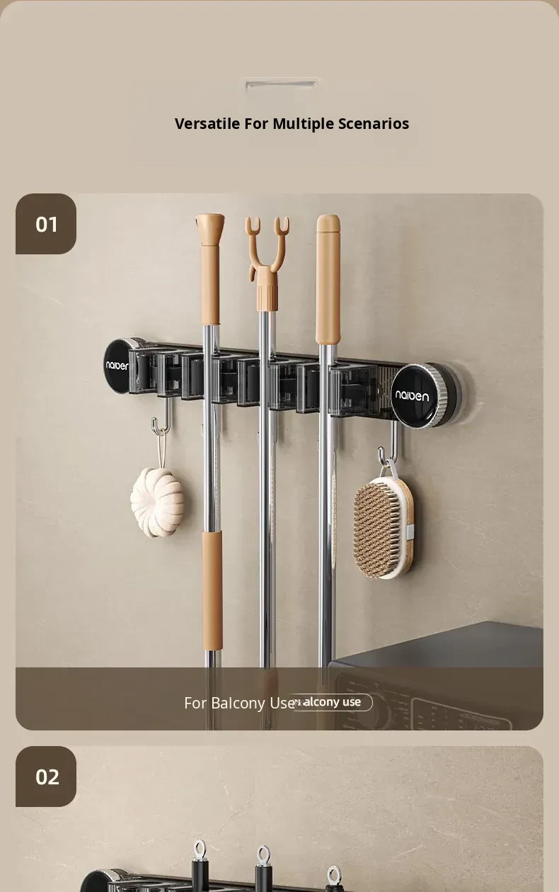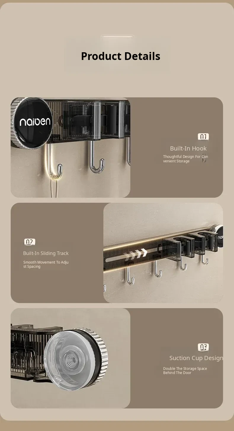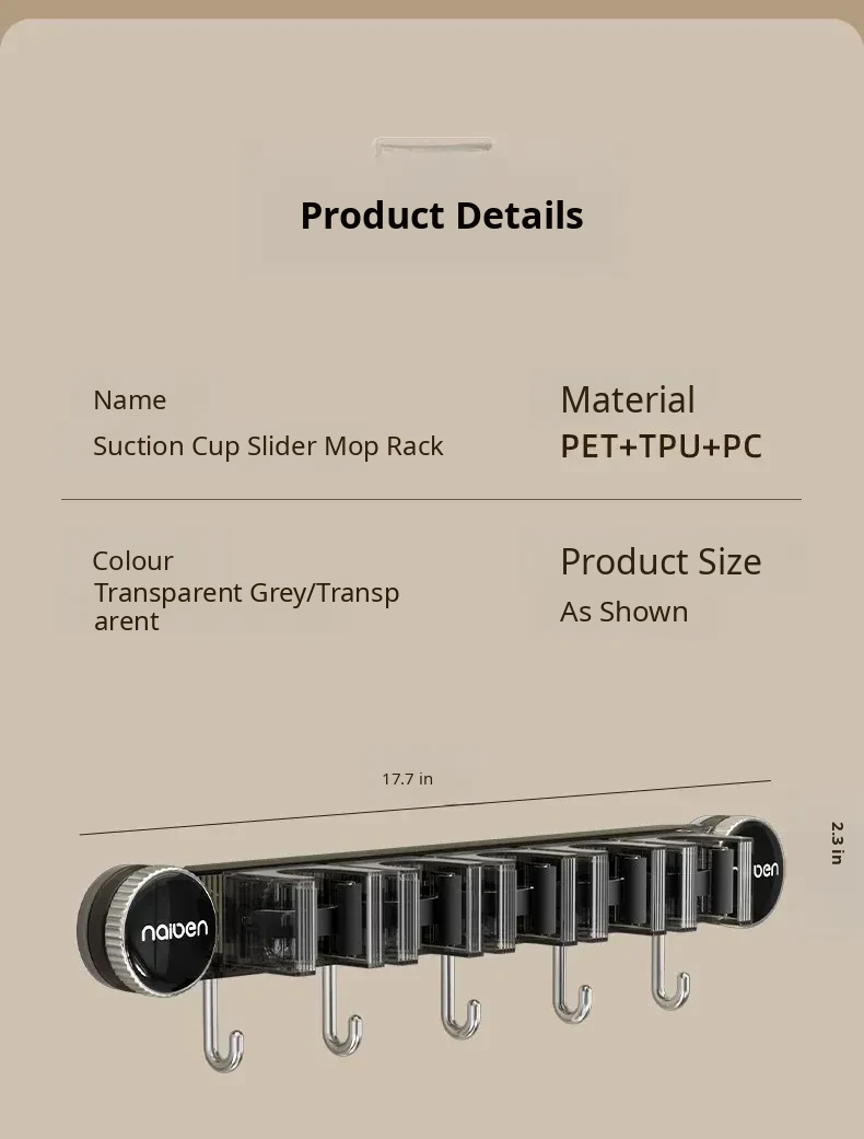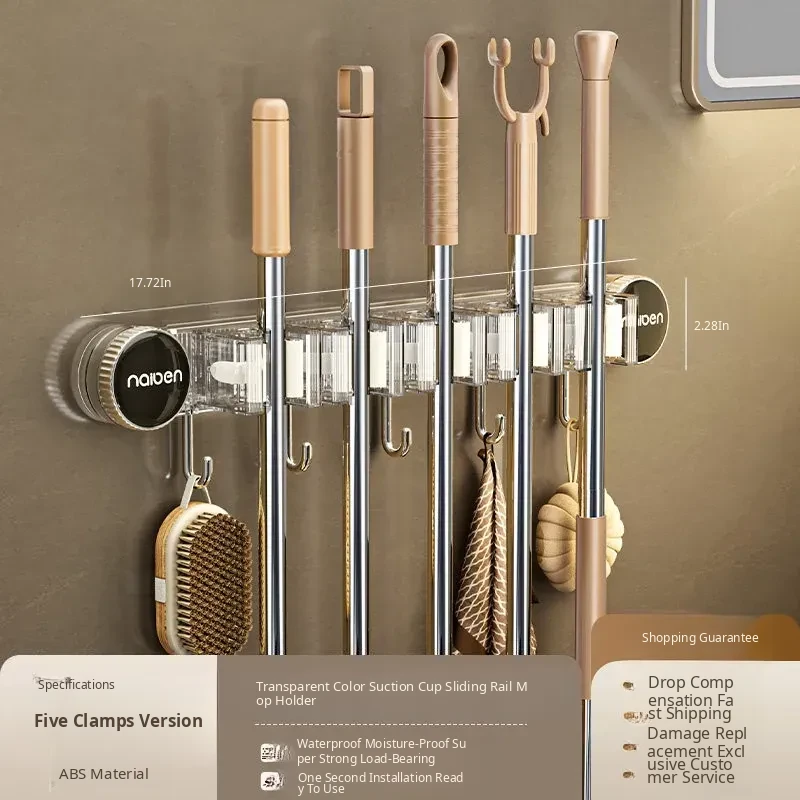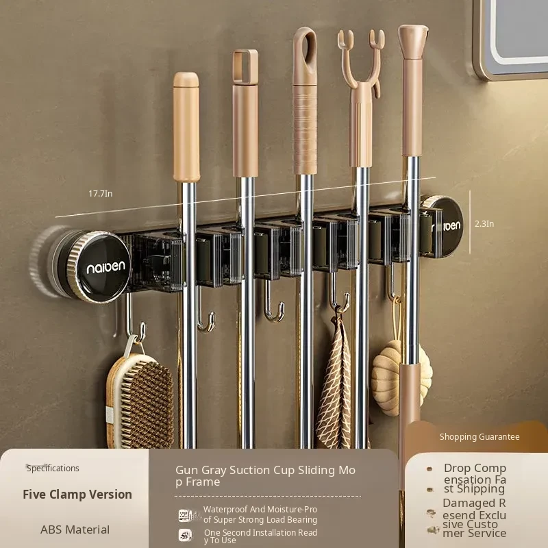 Powerful Suction Mop Wall-Mount Hook - No Drilling Required! Perfect for Organizing Your Bathroom and Toilet with This Innovative Storage Solution. Keep Your Space Tidy and Efficient!