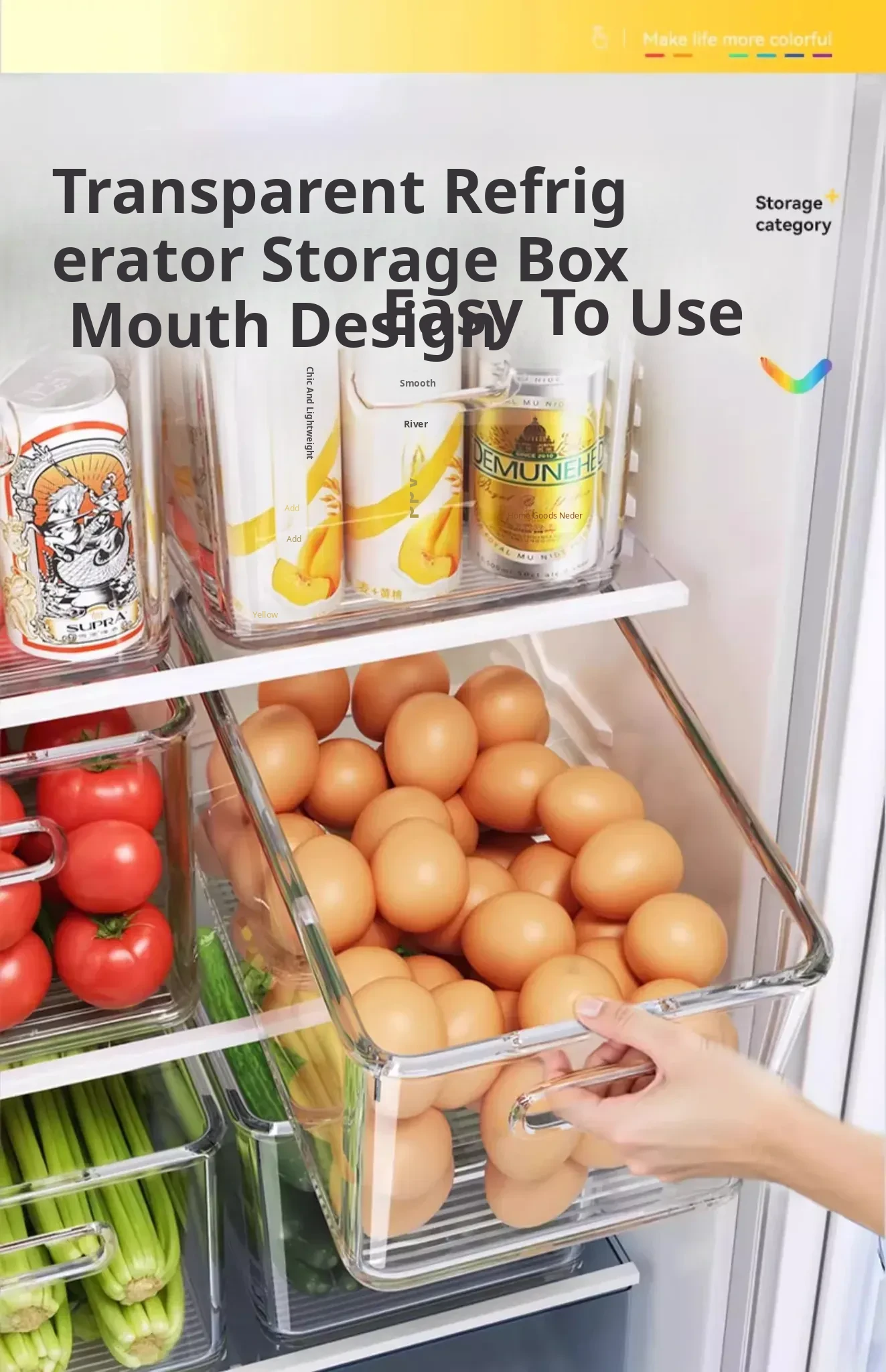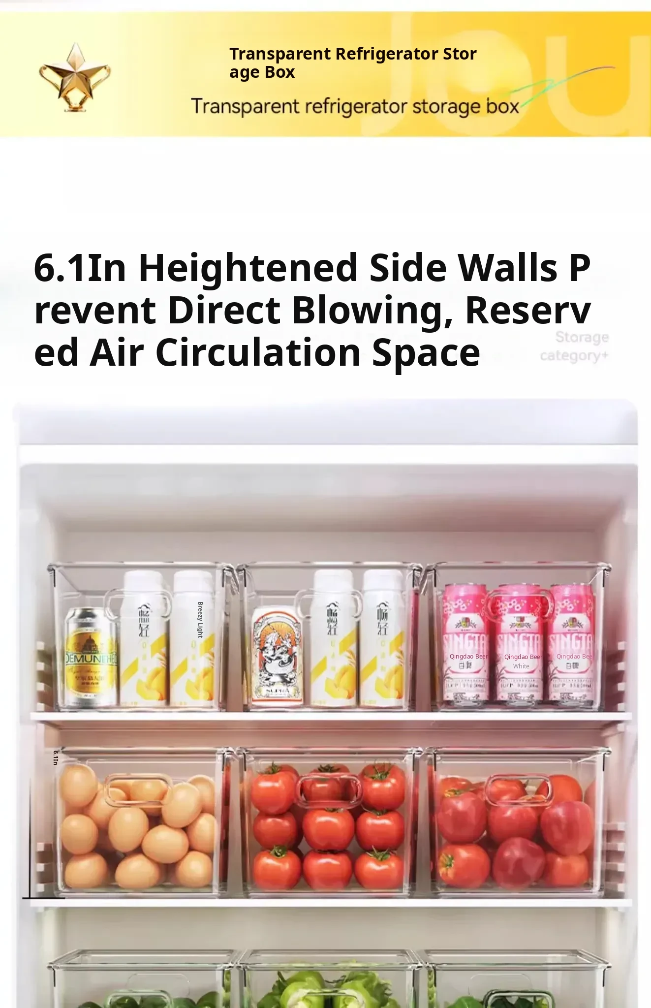 Premium Refrigerator Storage Box - Food-Grade Kitchen Organizer for Vegetables, Eggs, and Frozen Goods - Ideal Drawer Storage Solution