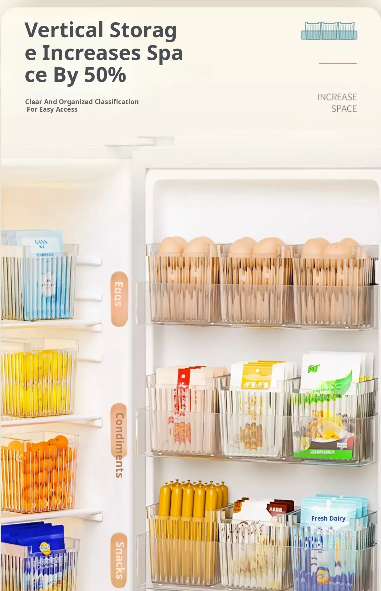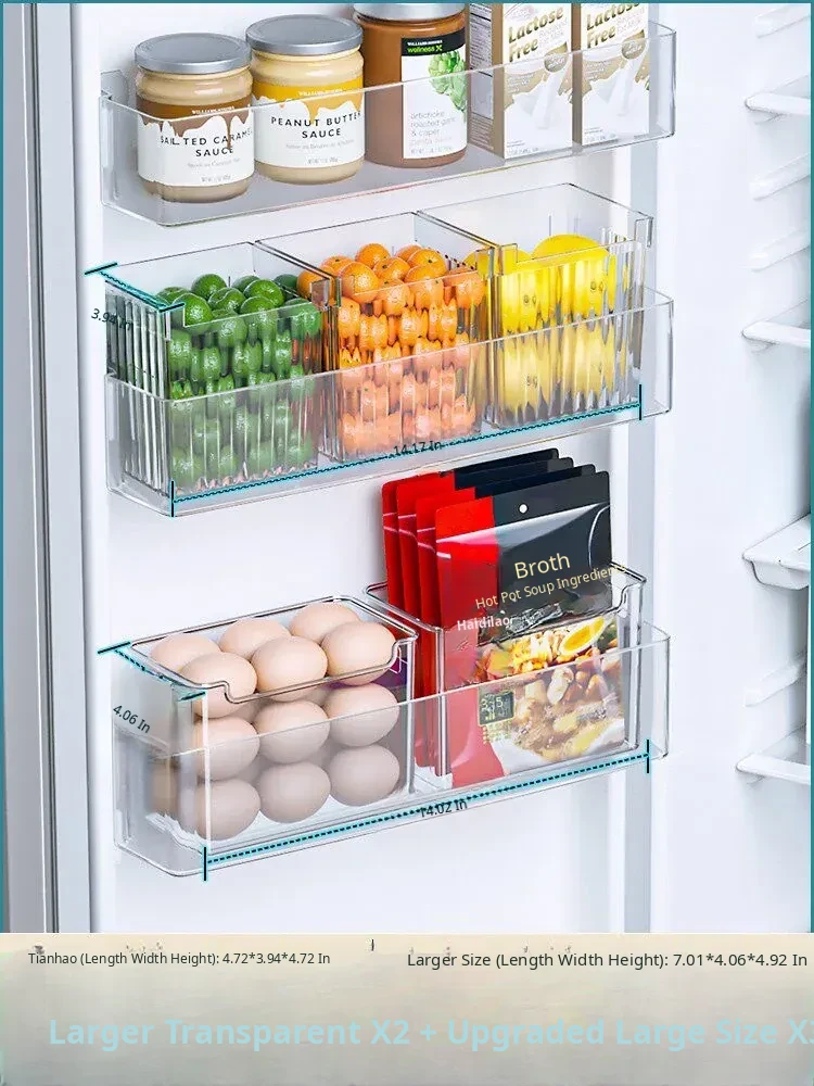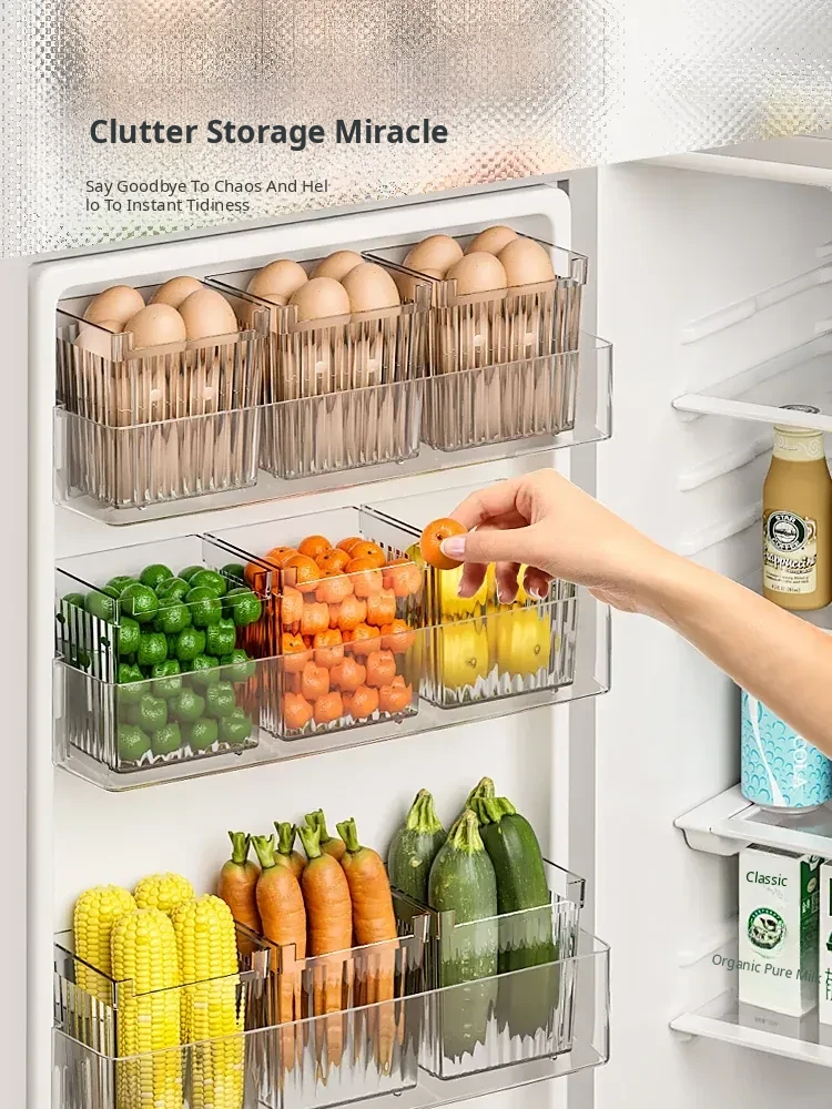 Refrigerator Side Door Storage Box - Kitchen Organizer for Food, Green Onions, Ginger, Garlic, and Eggs - Plastic Interior Shelf Saver