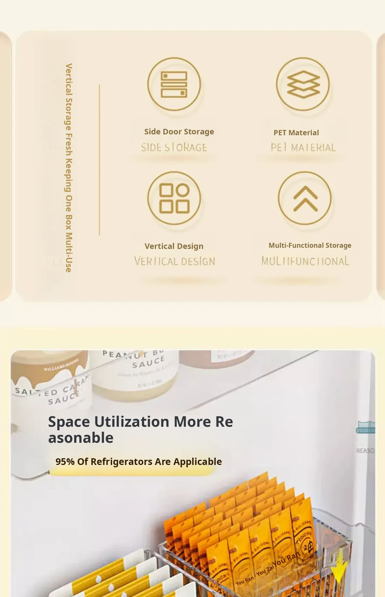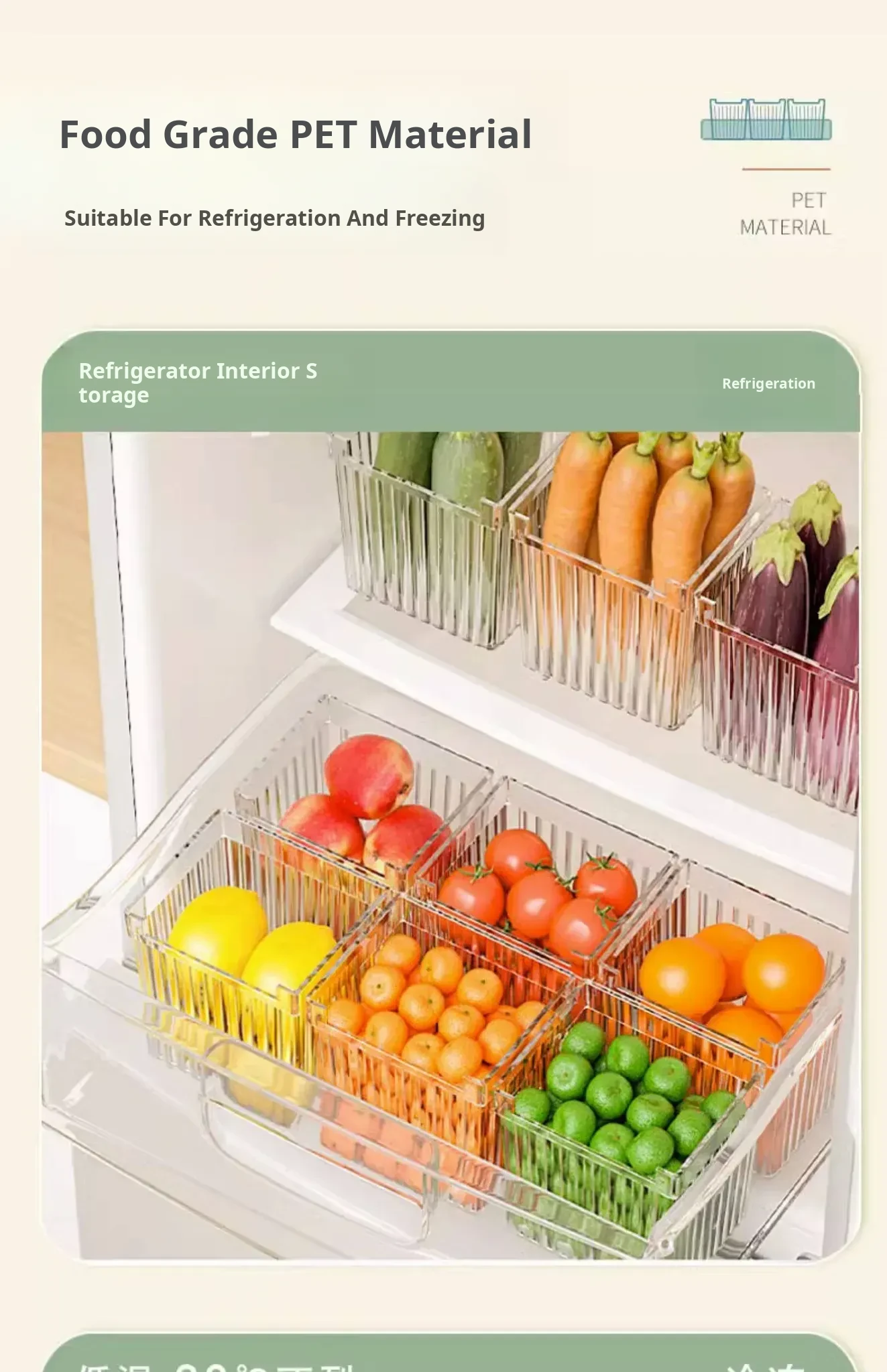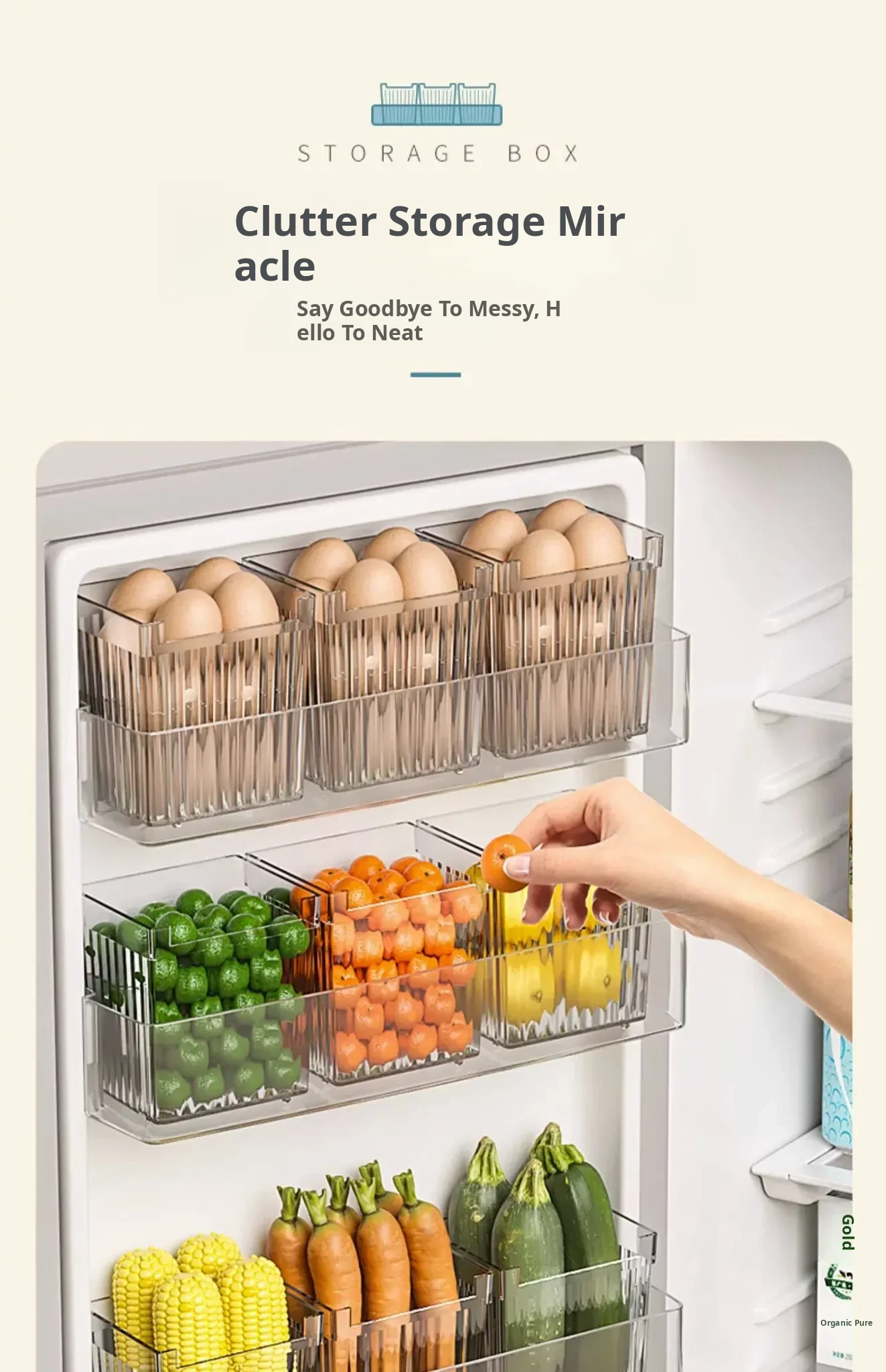 Refrigerator Side Door Storage Box - Kitchen Organizer for Food, Green Onions, Ginger, Garlic, and Eggs - Plastic Interior Shelf Saver