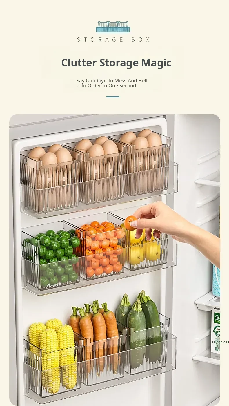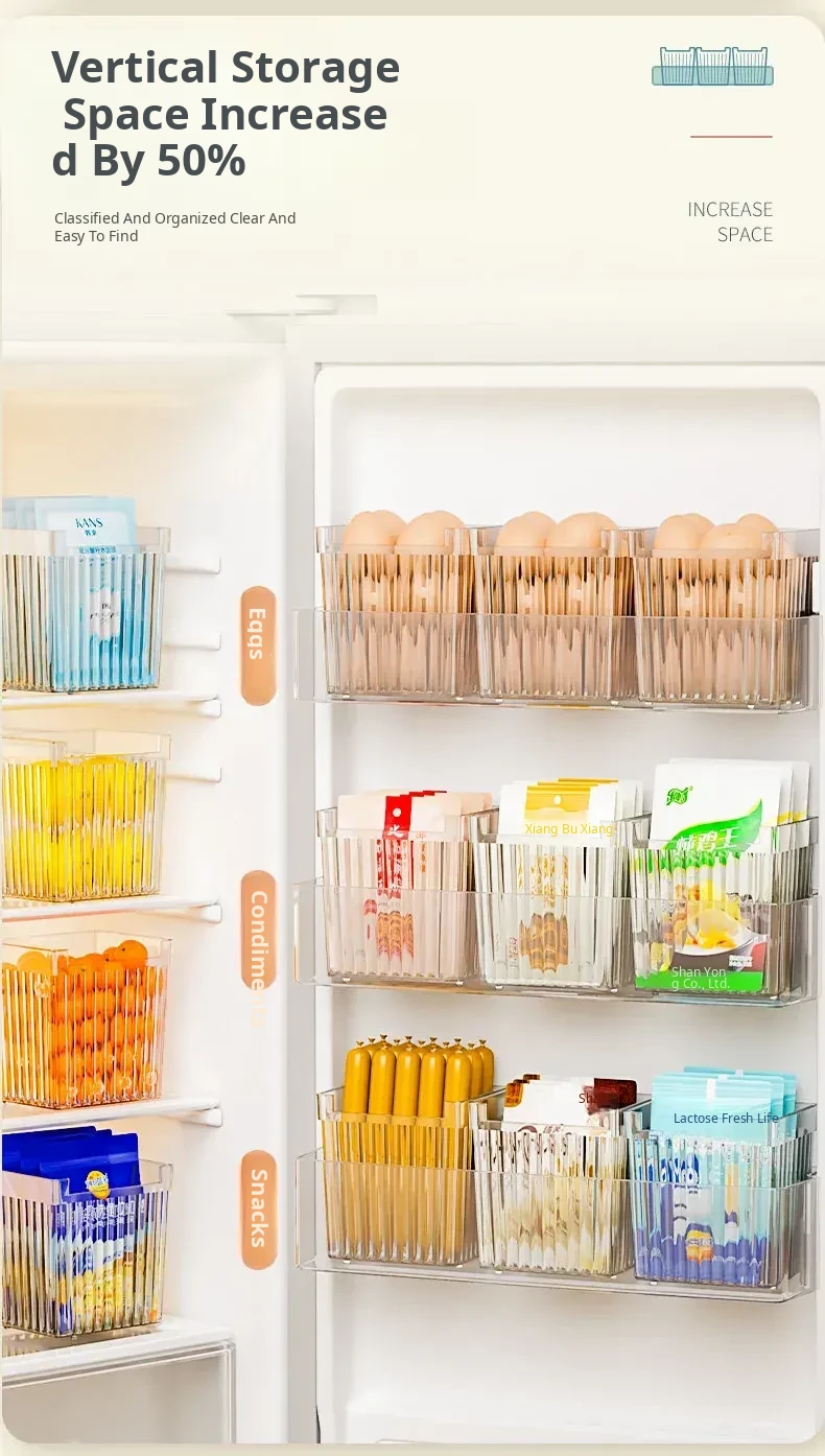 Refrigerator Side Door Storage Box - Kitchen Organizer for Fresh Herbs, Ginger, Garlic, Eggs & More - Plastic Inner Shelf for Maximum Freshness and Space Efficiency