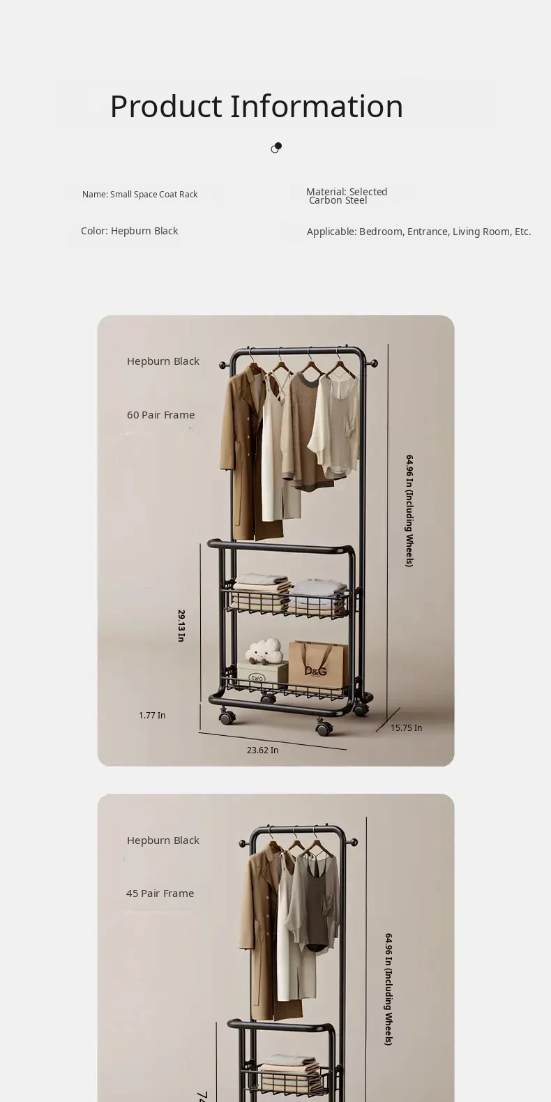 Hepburn Black-80Cm ❤ New Double-Layer Storage Basket/Removable