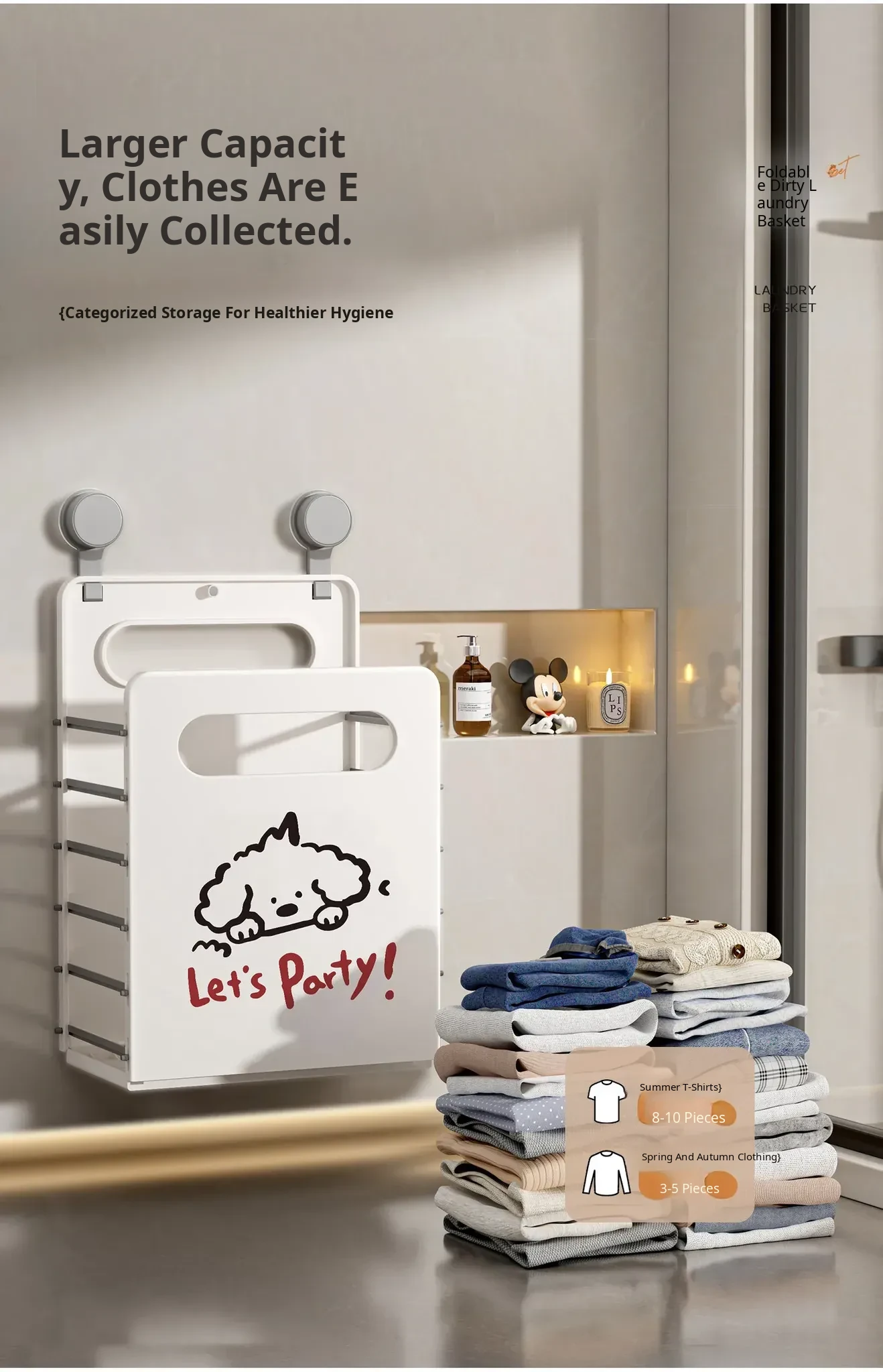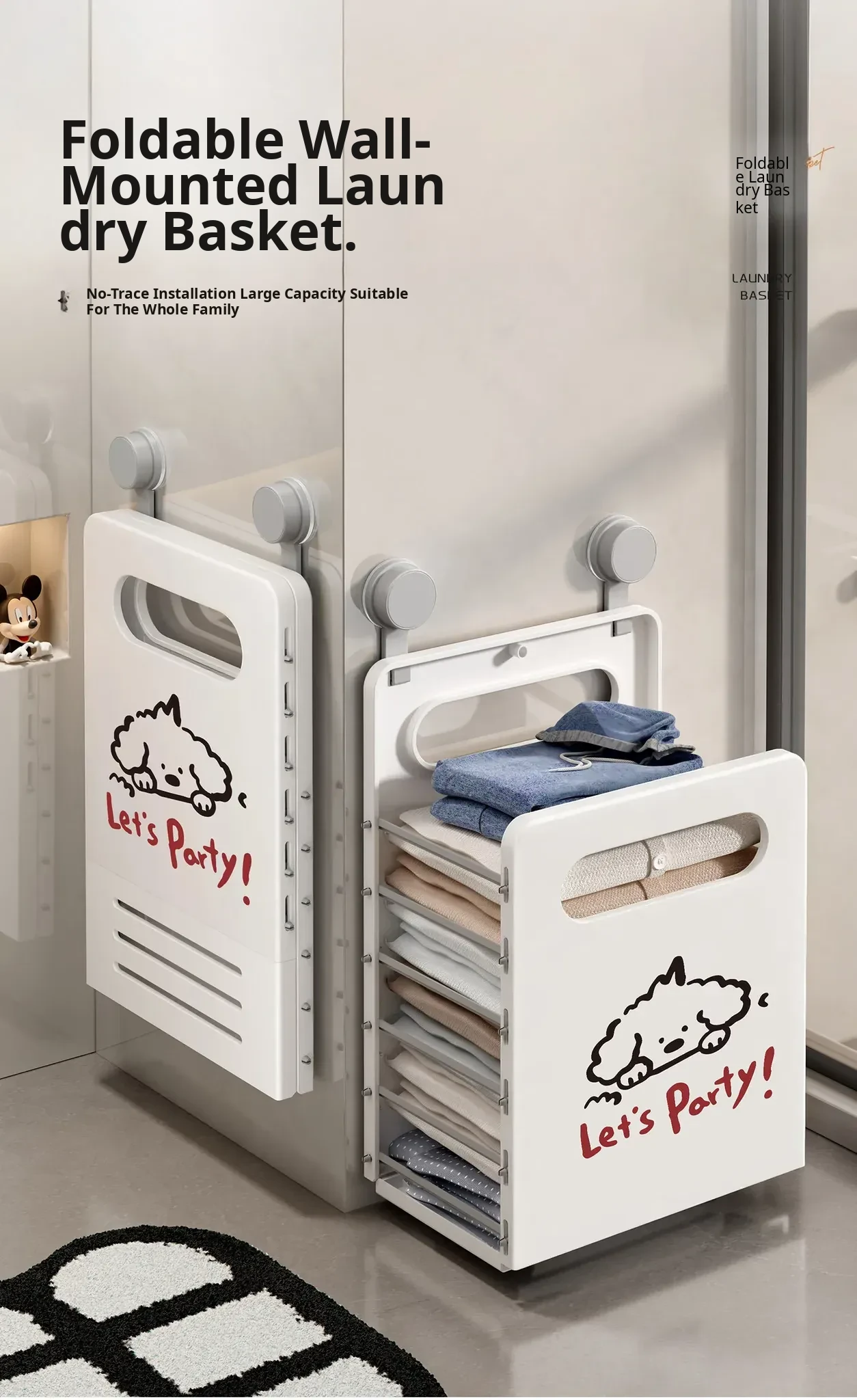 Stylish Wall-Mounted Laundry Basket - Large Capacity, Foldable, Space-Saving Design for Home Organization of Dirty Clothes