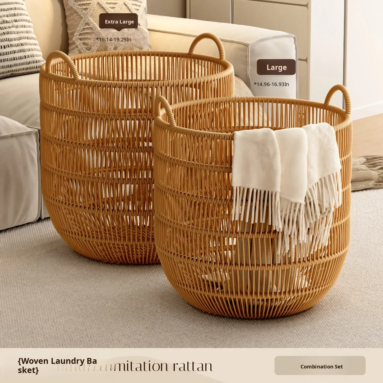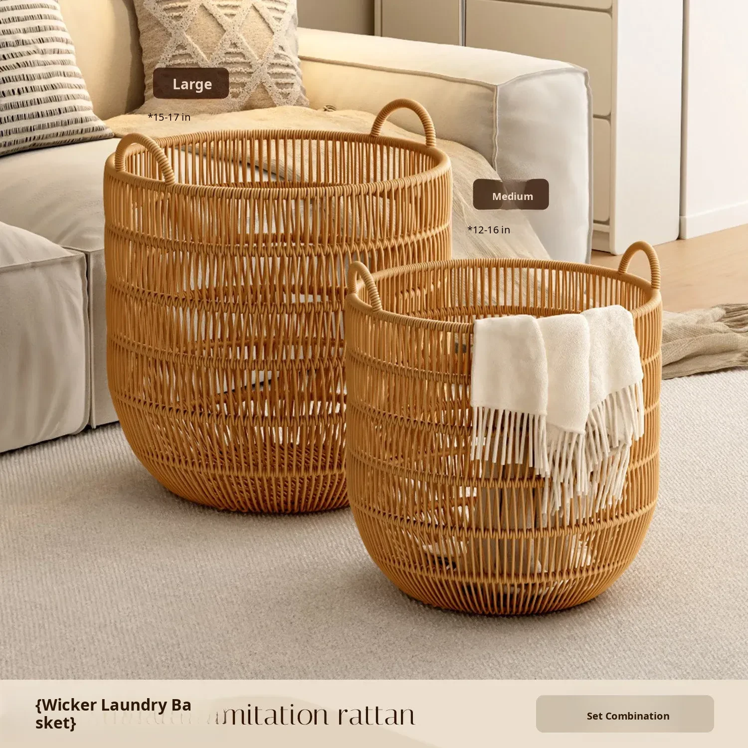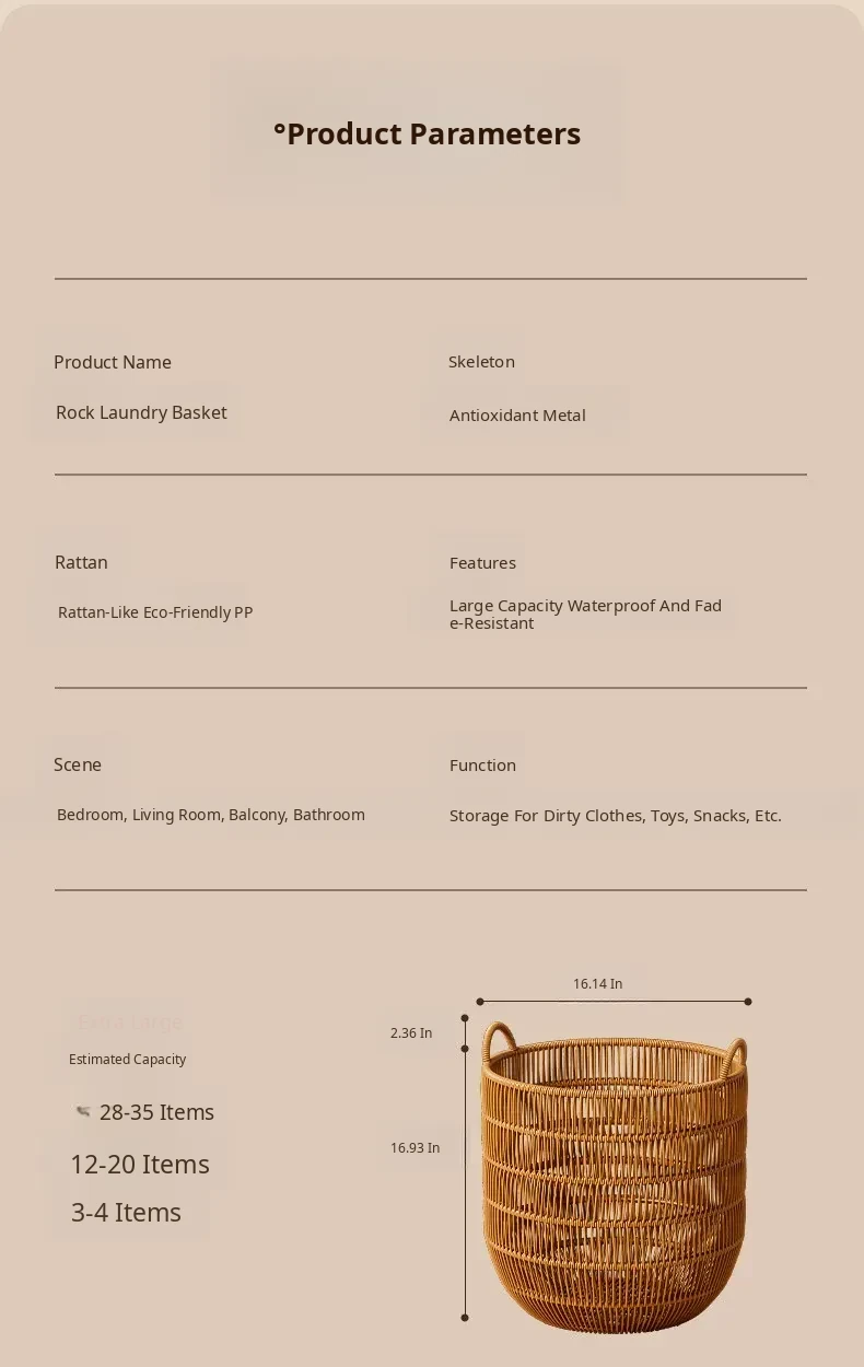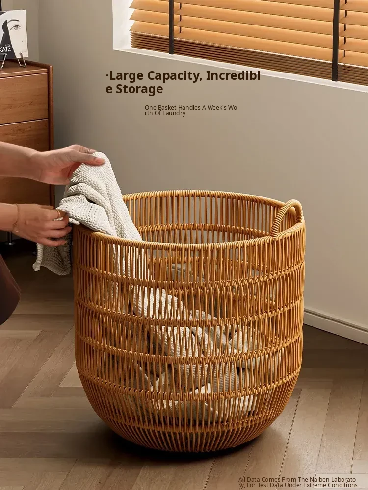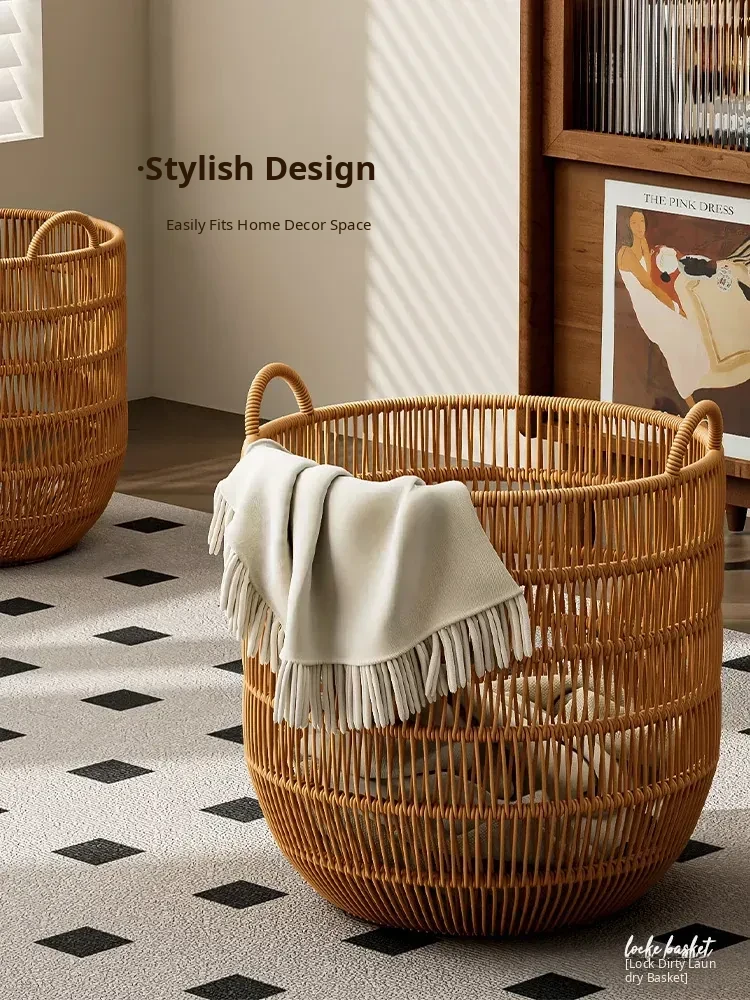 Stylish Waterproof Wicker-Style Laundry Basket - Elegant Clothes Hamper for Bedroom and Bathroom Storage - Perfect for Organizing Dirty Laundry!