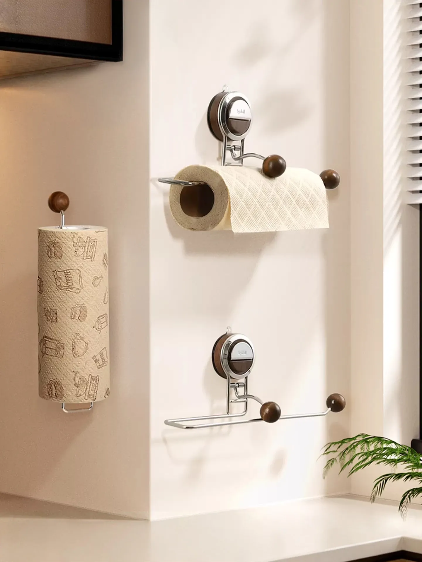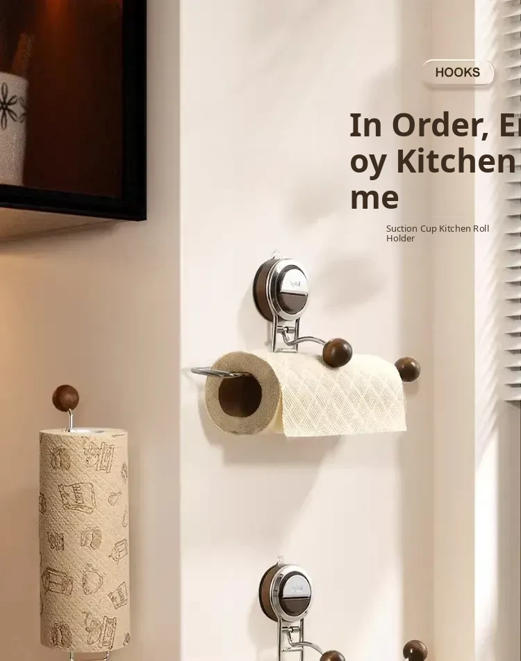 Suction Cup Kitchen Paper Towel Holder - Versatile Cabinet Organizer for Cling Film, Cloths, and Rolls - Ideal for Lazy Cooking Enthusiasts!