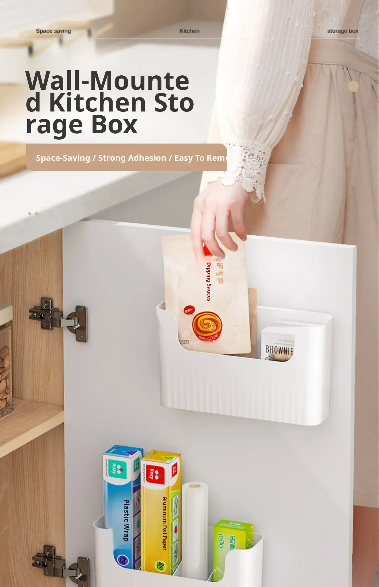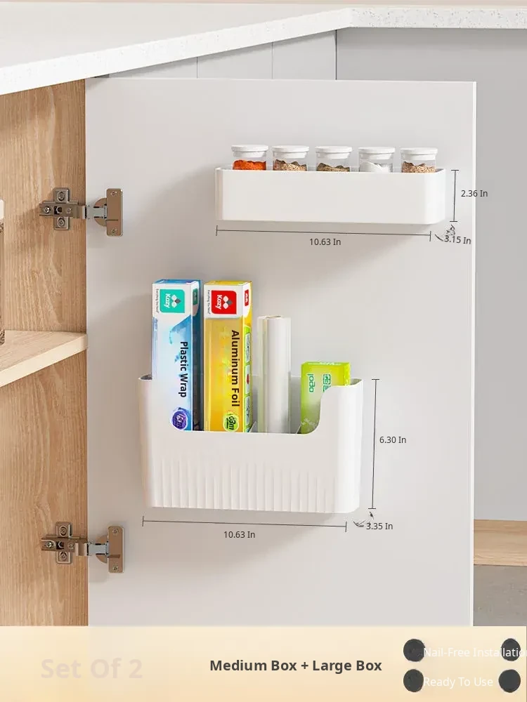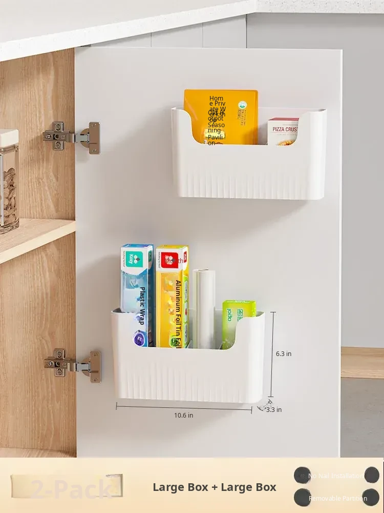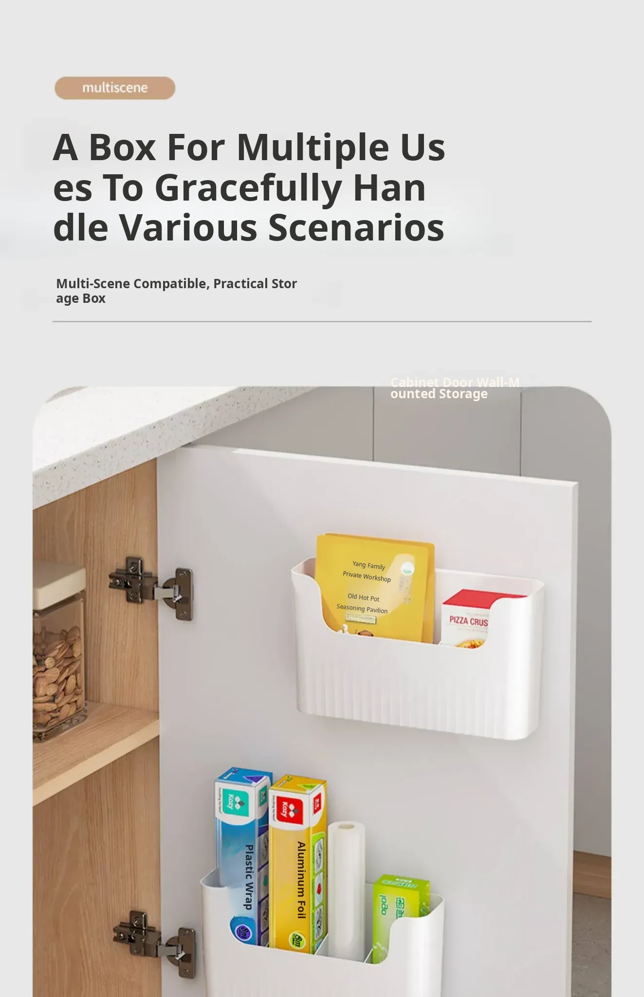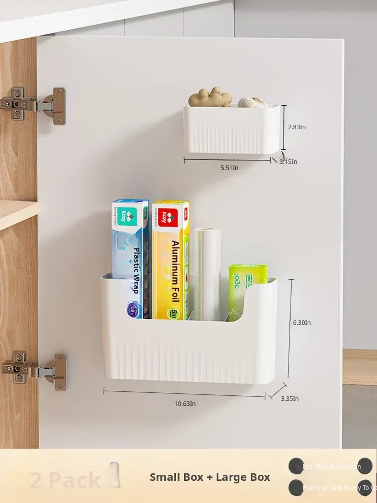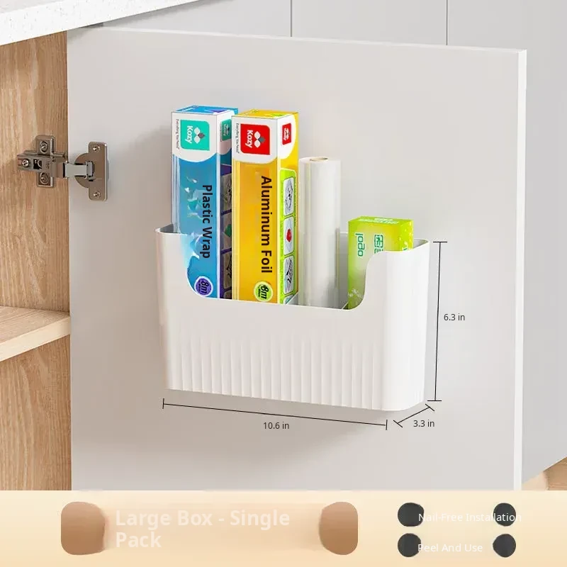 Wall-Mounted Kitchen Organizer – No Drill Adhesive Storage Box for Cabinet Doors, Perfect for Cling Film and Food Wraps – Space-Saving Solution for Tidy Kitchen Essentials
